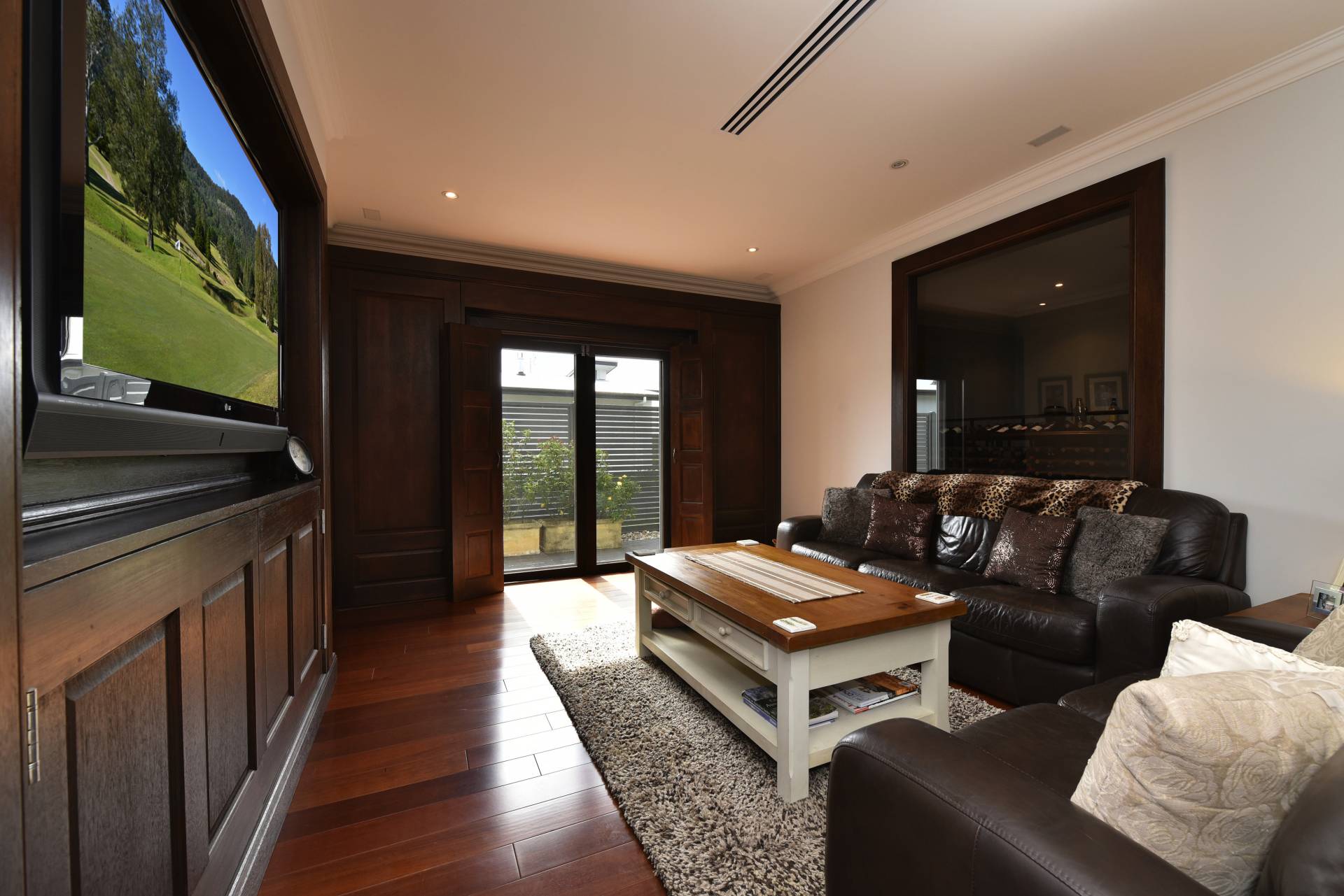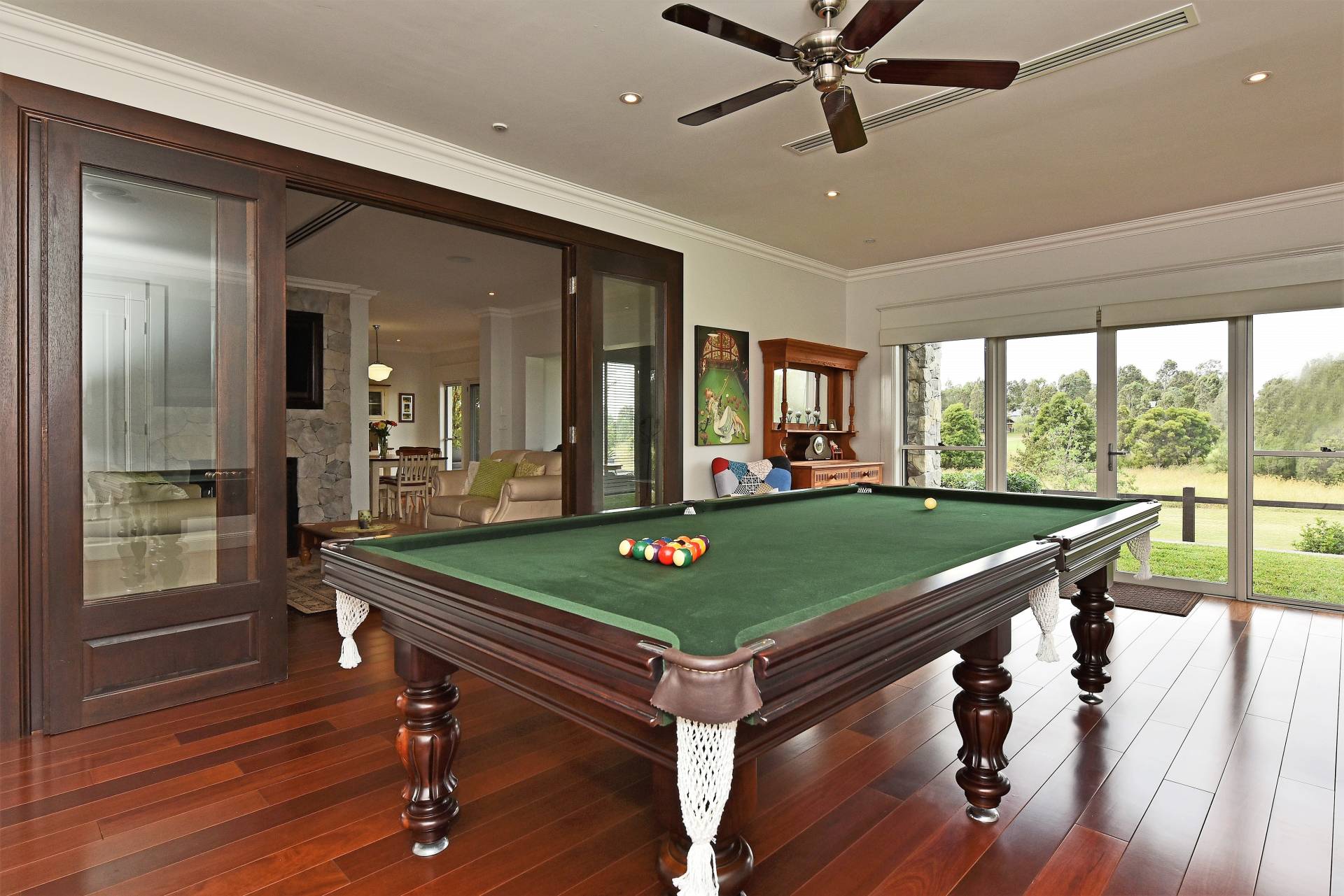 Positioned in a prestigious Pokolbin location, the opulent lifestyle of this ‘Regal Elegant’ home is one to be desired. The features of this home are nothing but impressive, attention to detail is second to none throughout. A grand hallway is highlighted with stunning timber floors and provides a stately access to many areas of the home. Offering three bedrooms and a study, three bathrooms plus a powder room, home theater/loungeroom, family room, sun room, dining room, unbelievable kitchen with additional butler’s pantry, expansive temperature controlled wine cellar with viewing window and awesome billiard room that looks out onto the magnificent golf course views. The property adjoins a reserve and looks out onto the 14th fairway, giving you the feeling of space and tranquility.