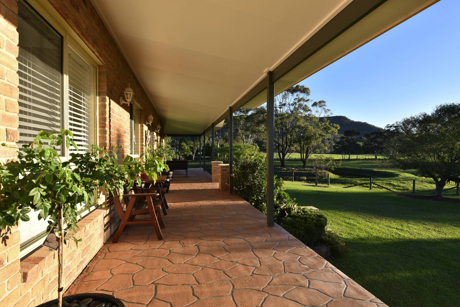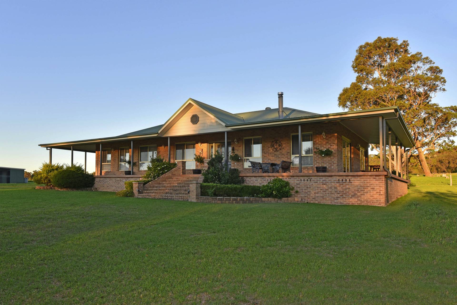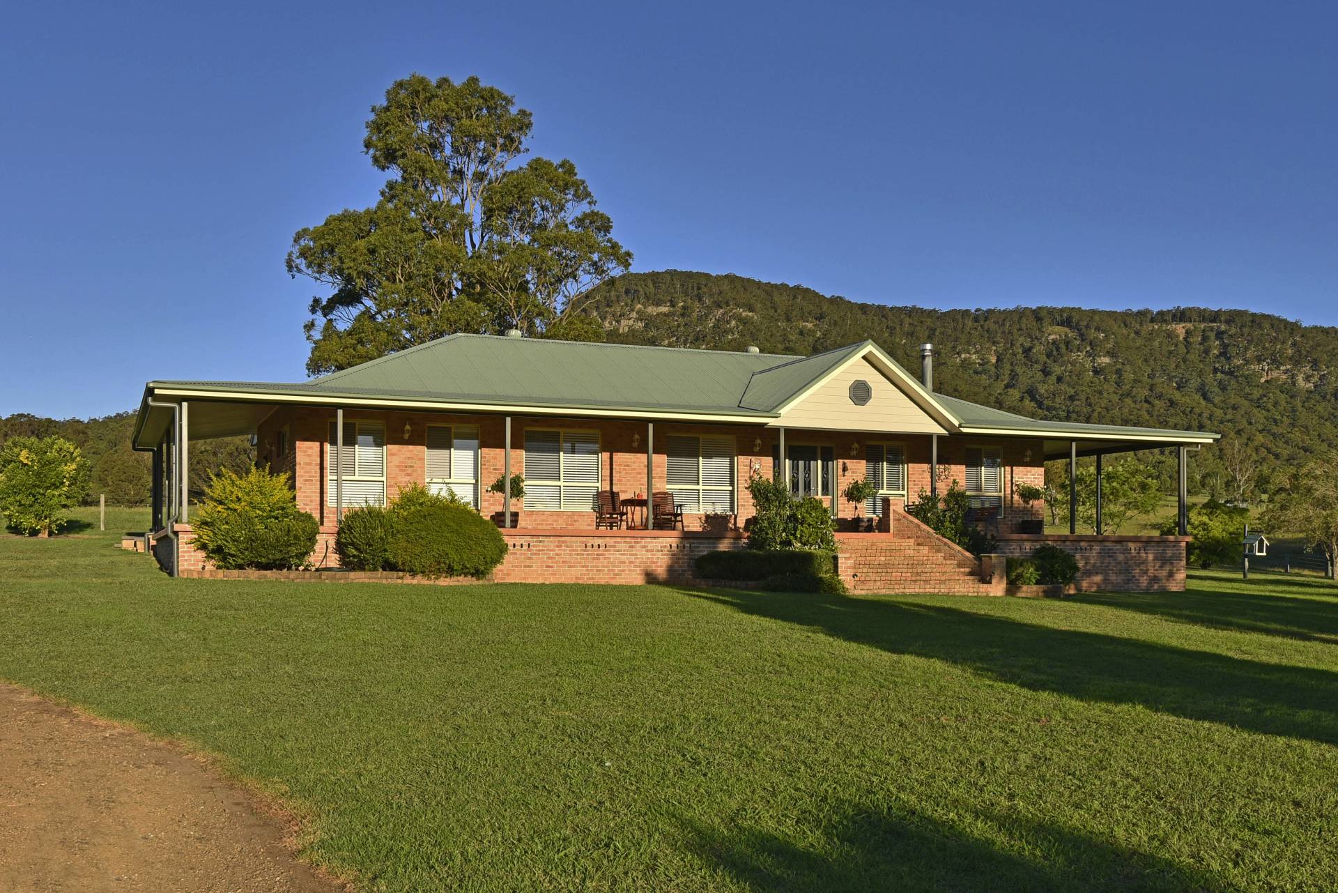The large master bedroom comes complete with an ensuite and walk in robe. The secondary bedrooms are well sized and a charming main bathroom with corner bath and separate shower also takes full advantage of the magnificent outdoor views. An inviting foyer greets you as you enter off the wide sweeping verandahs. Stately front steps give you that feeling of grandeur and make a focal point of the home. An outdoor BBQ area gives you reprieve on the eastern side of the house and makes a great place to have a beer or two and glass of local ‘Hunter Valley’ wine.