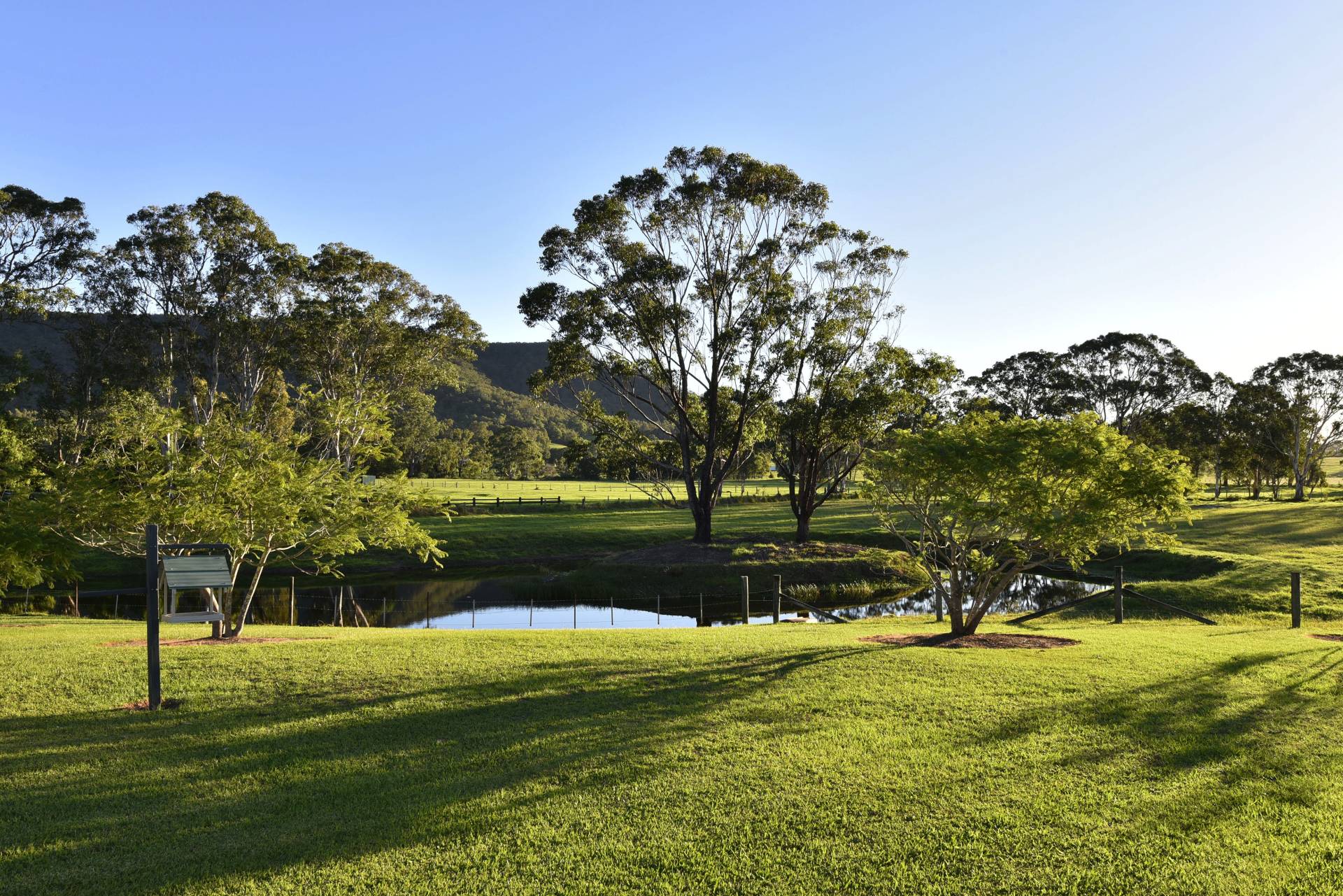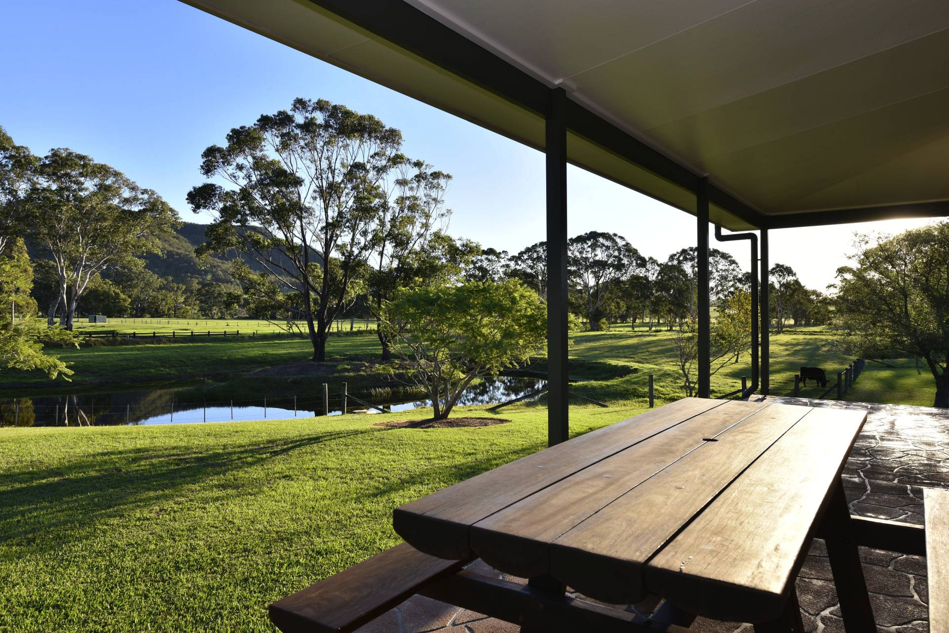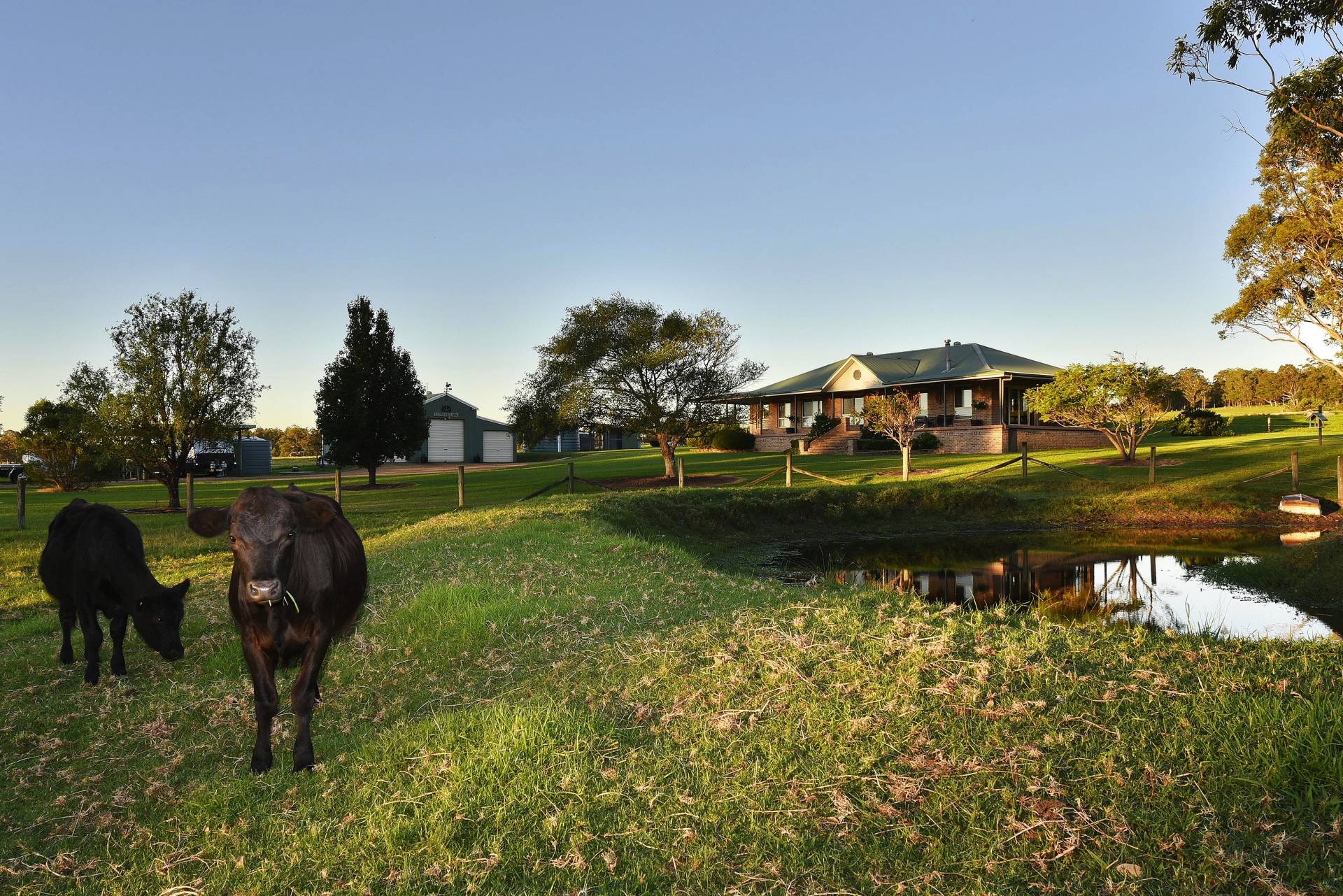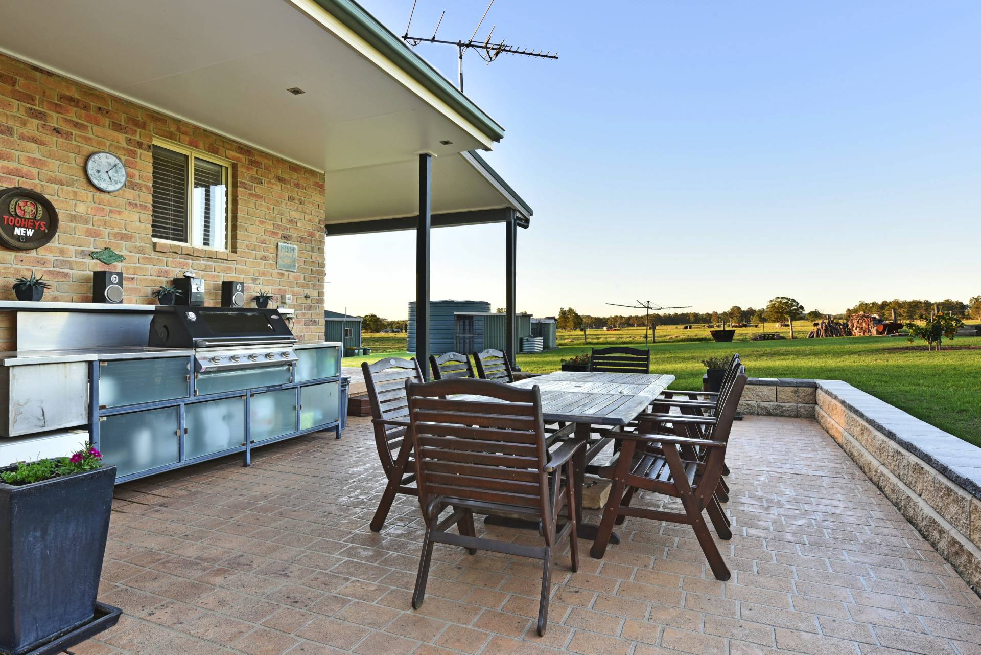 The large master bedroom comes complete with an ensuite and walk in robe. The secondary bedrooms are well sized and a charming main bathroom with corner bath and separate shower also takes full advantage of the magnificent outdoor views. An inviting foyer greets you as you enter off the wide sweeping verandahs. Stately front steps give you that feeling of grandeur and make a focal point of the home. An outdoor BBQ area gives you reprieve on the eastern side of the house and makes a great place to have a beer or two and glass of local ‘Hunter Valley’ wine.