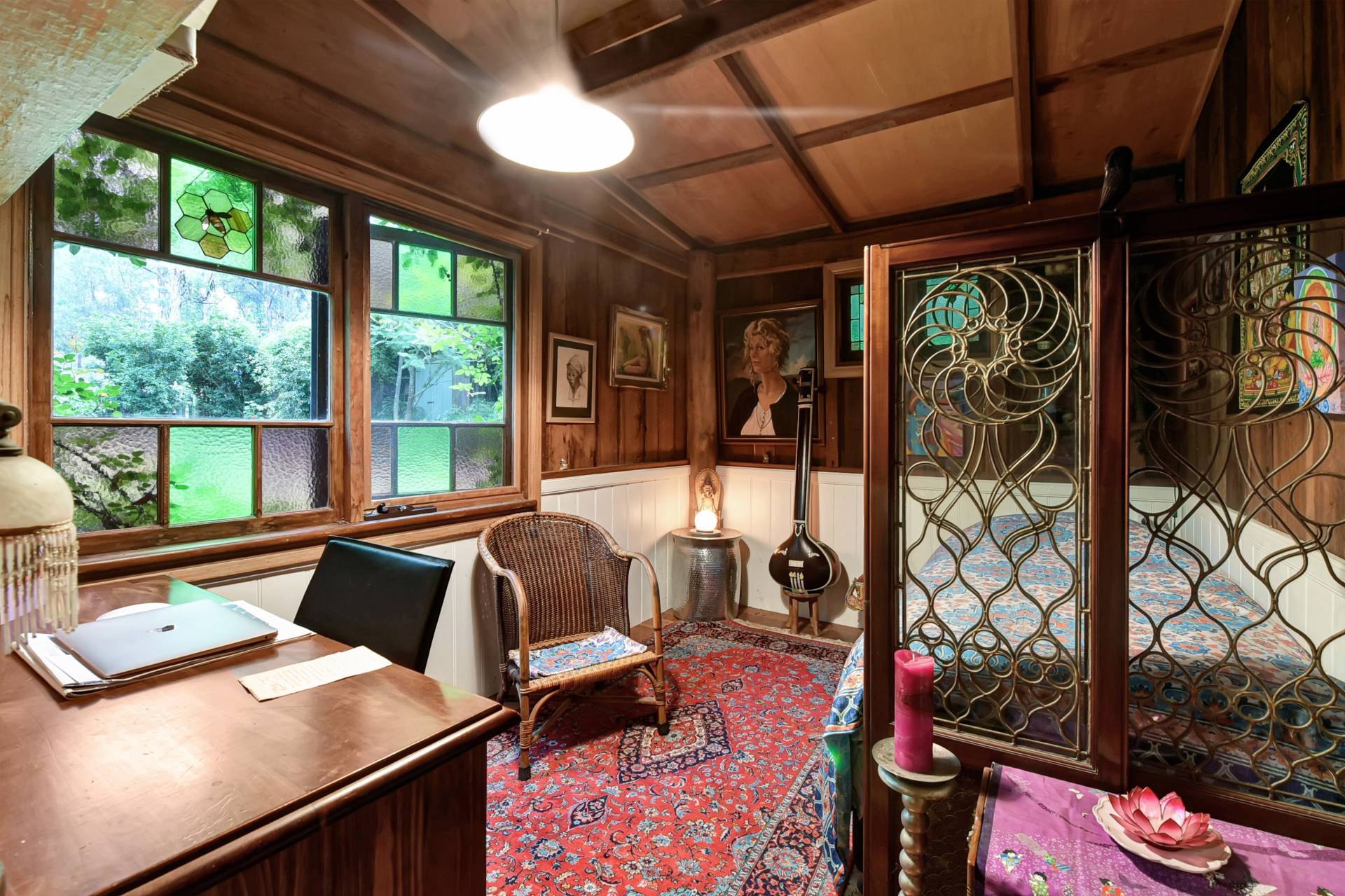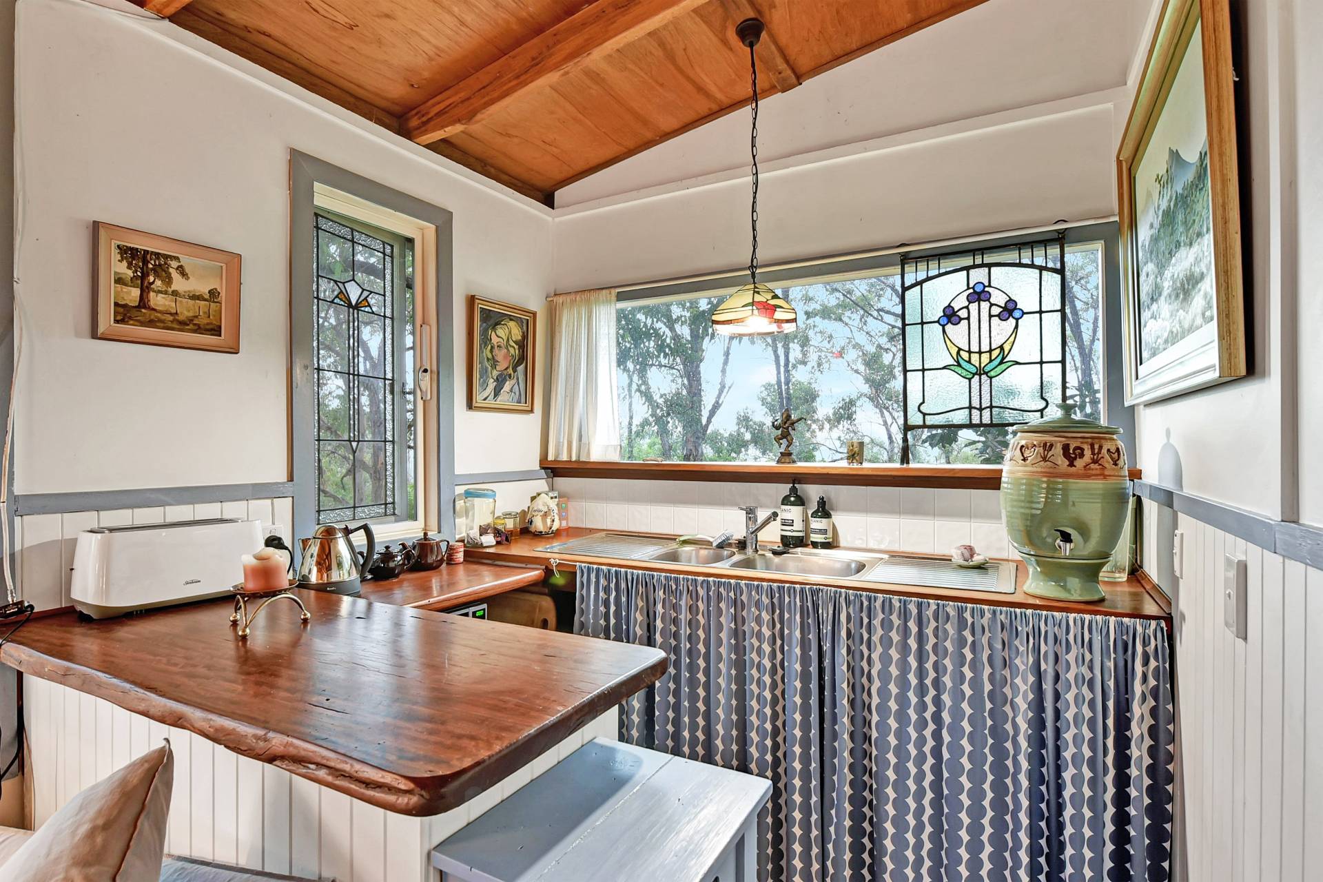 The timber slab home has a country charm that will have you falling in love from the moment you arrive. Entering through a winding garden path onto the undercover timber verandah you will appreciate the views filtered through the Australiana bush land surrounds. Inside you are welcomed by the same charm that is on the outside of the home. A large living & dining area adjoins the timber country kitchen with split system air conditioning, a slow combustion fireplace and gorgeous stained-glass windows throughout. A private lower level comprises the large master bedroom with a modern ensuite, two built-in-robes, air-conditioning, a ceiling fan and access to a timber deck to enjoy those amazing views. A second bedroom and study are situated on the other side of the home as well as an internal laundry and bathroom.