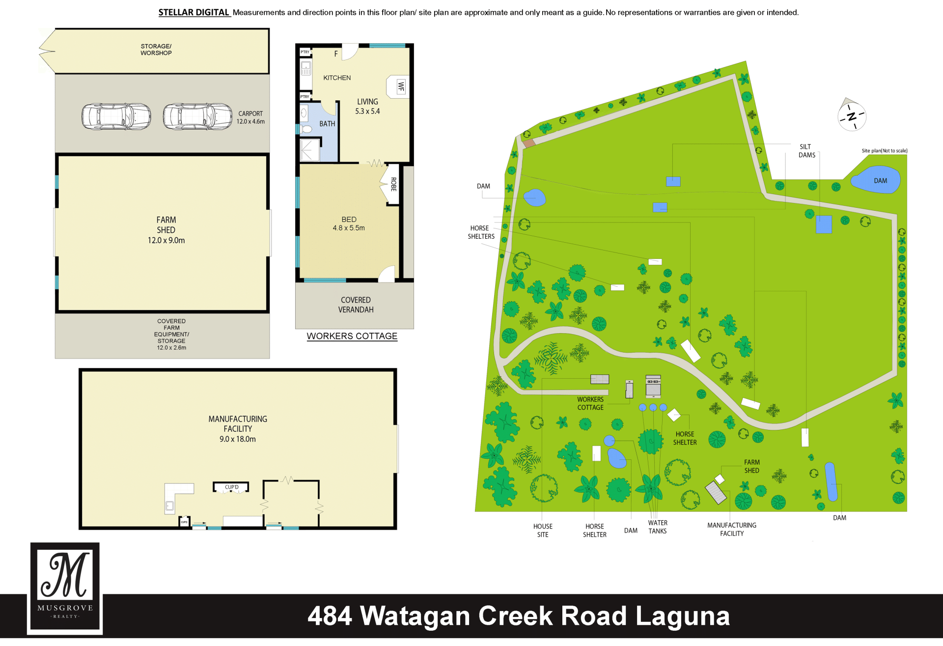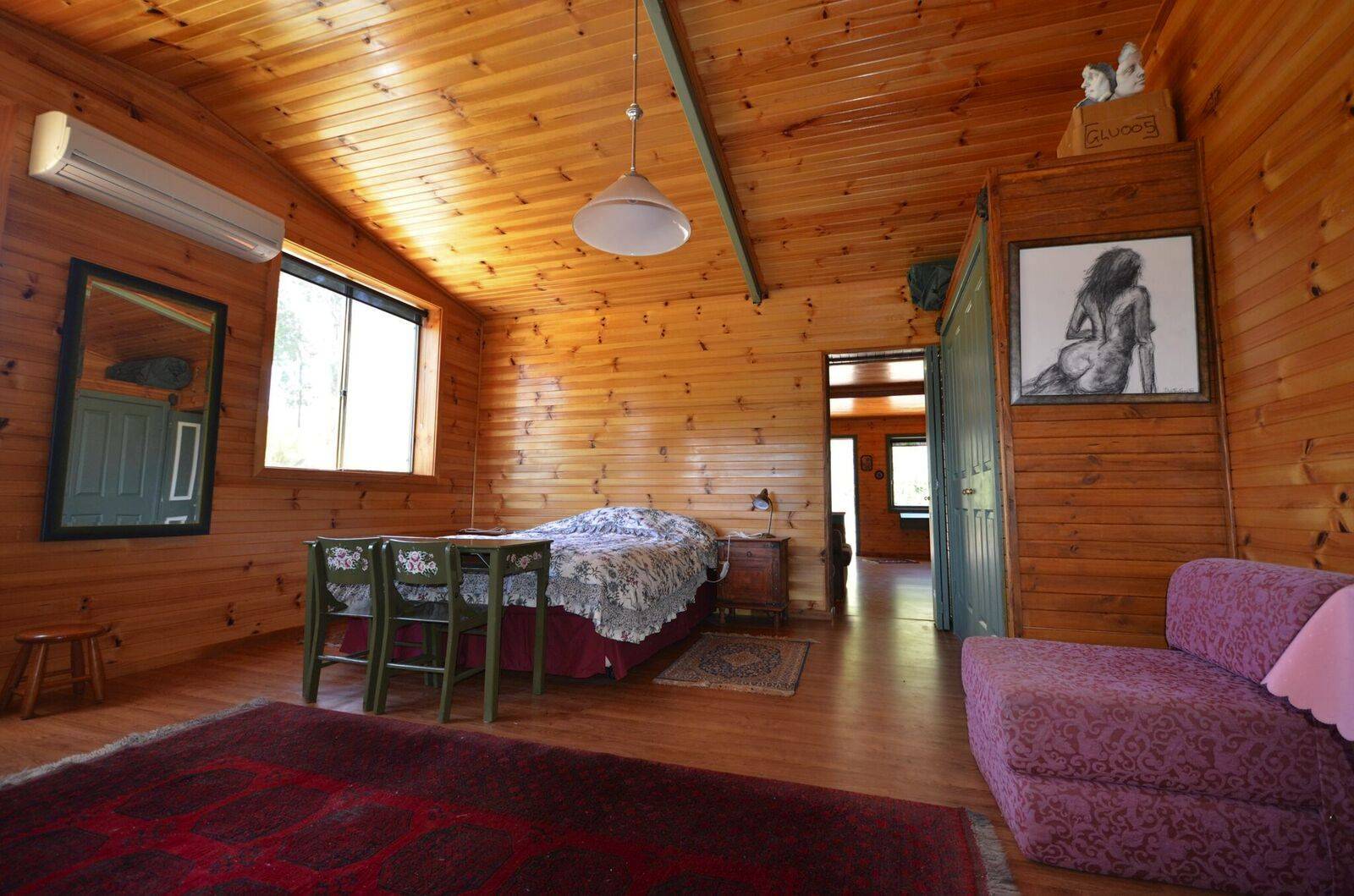 A 1-acre flat house site has DA approval for an architect designed 3-bedroom home with a pool. A 1-bedroom cabin/workers cottage provides accommodation in the meantime. The house site and cottage are both set on an elevated position facing north.