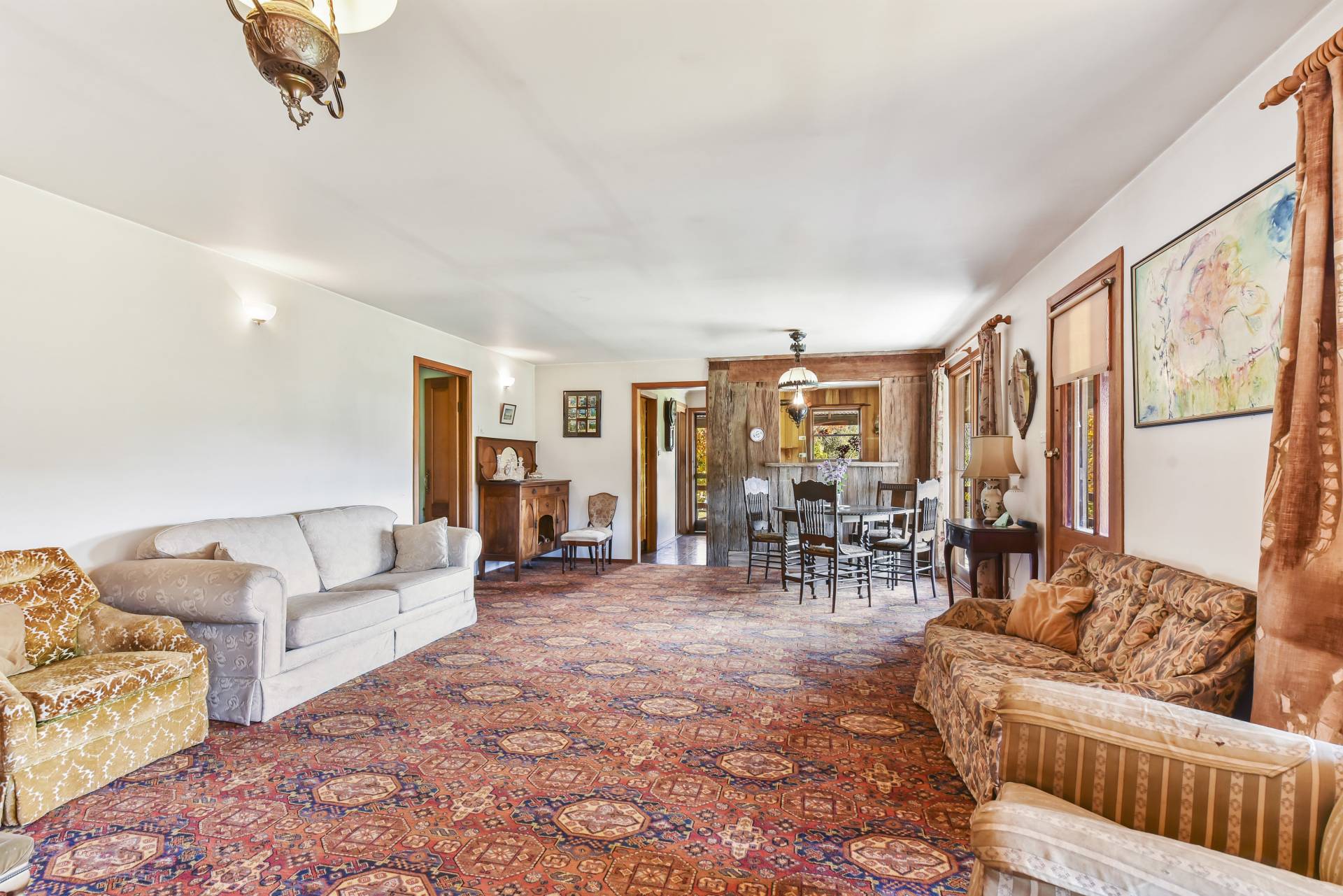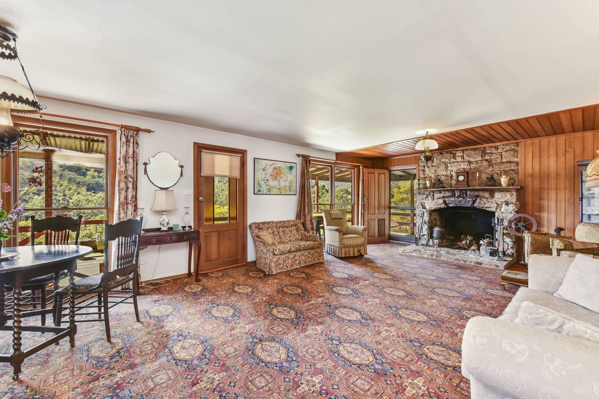 * Spacious open plan loungeroom/dining with large feature stone open fire place