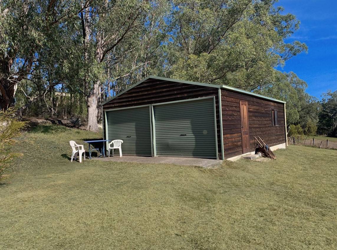 A well sized timber clad double garage/workshop will accommodate your cars and workshop needs, with power connected and concrete slab flooring.