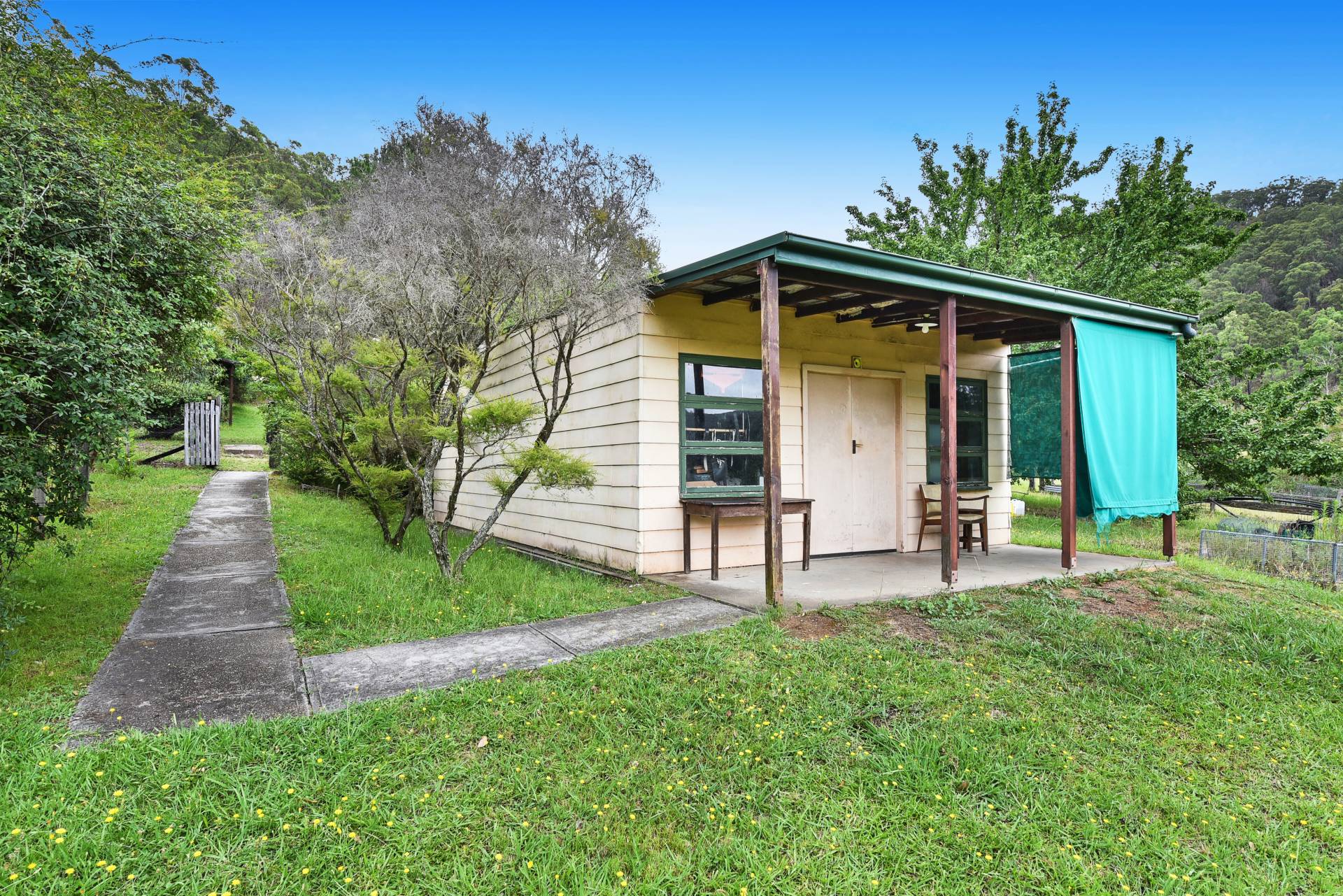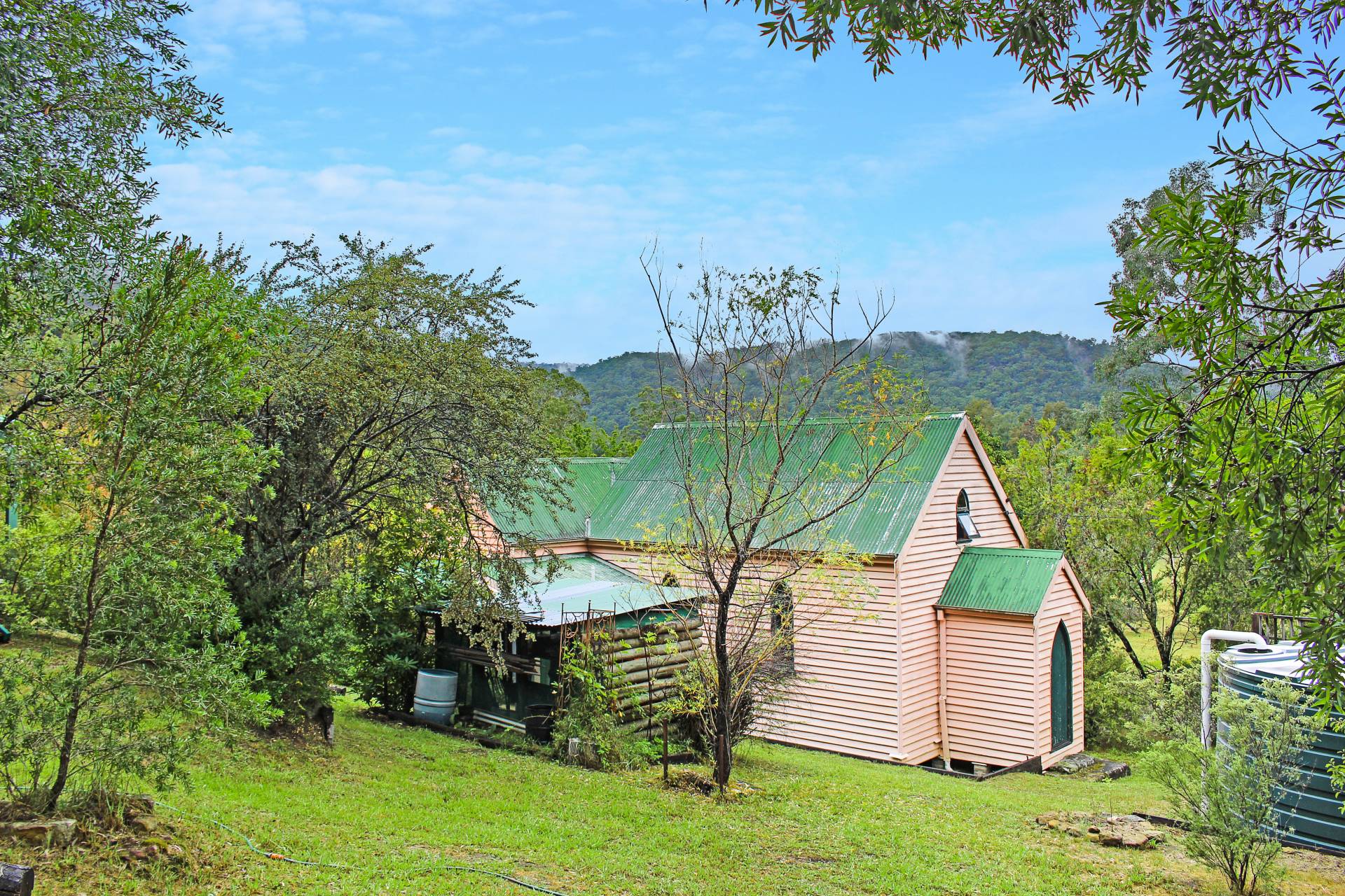 Two additional buildings near by the former church provide extra accommodation & amenities. A 1-bedroom studio with a spacious modern bathroom and living area sits on an elevated position with large wrap around under-cover verandahs looking over the 1883 church building as well as the gorgeous paddocks and bush land surrounding the property. The other additional building is currently used as a 4th bedroom/sleep out or could be a great office space with an attached large lock-up shed/workshop. A double carport also provides shelter for 2 vehicles.