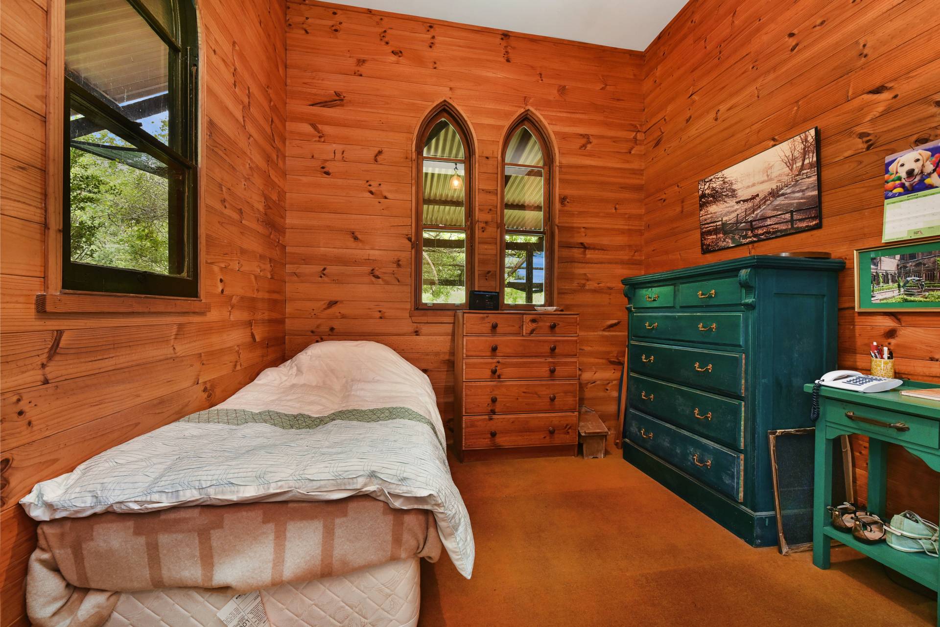 • Light filled 2nd bedroom with beautiful church style windows