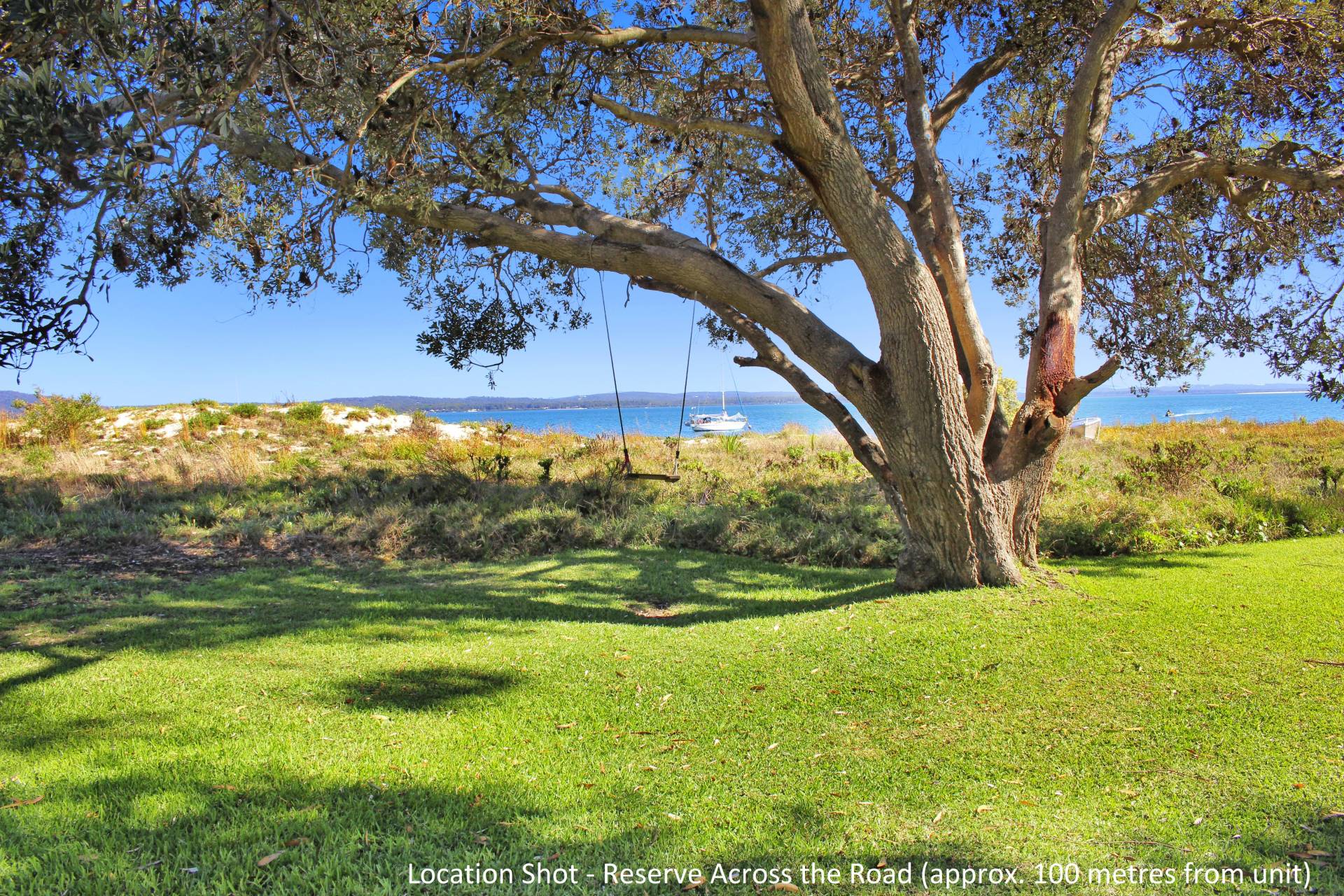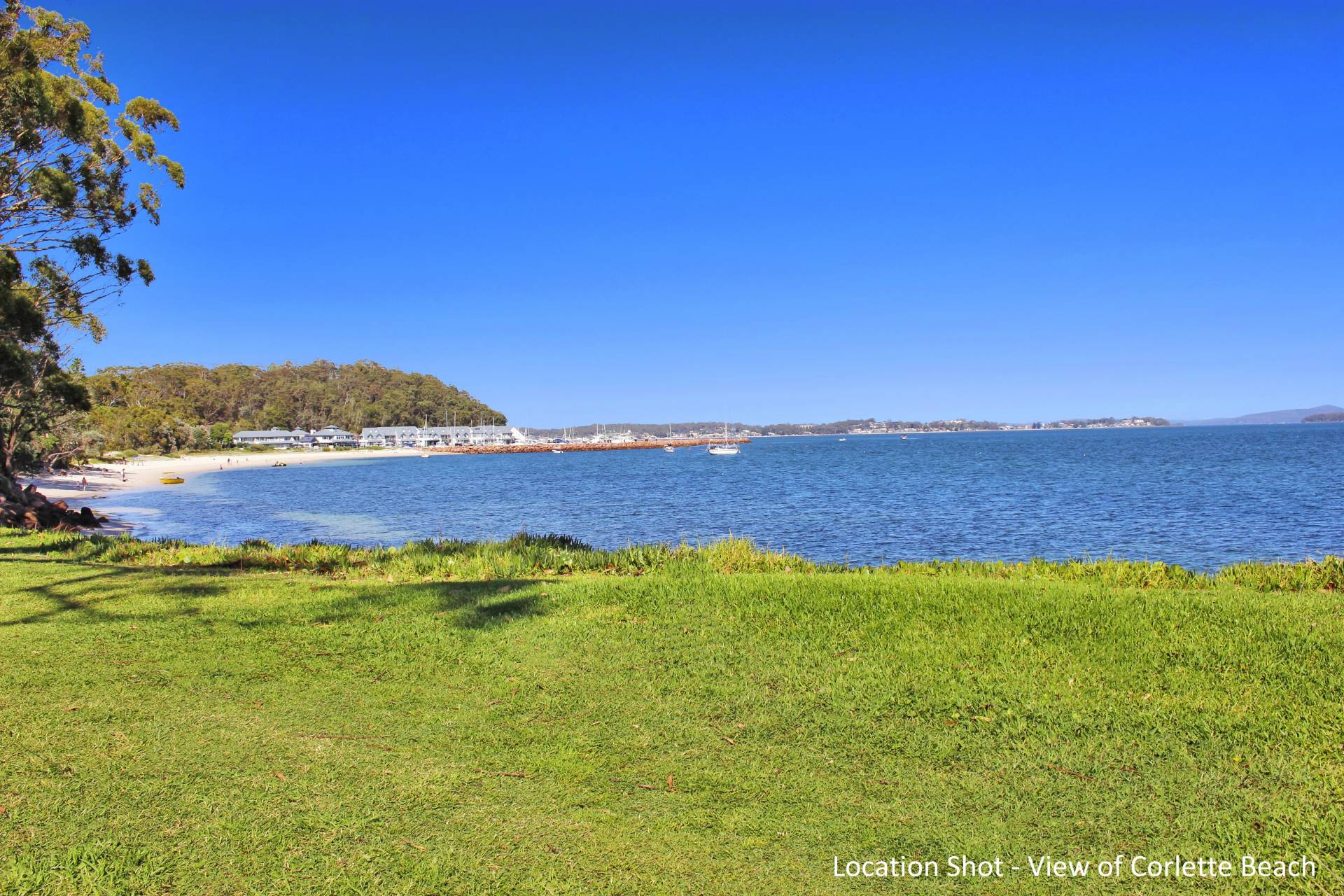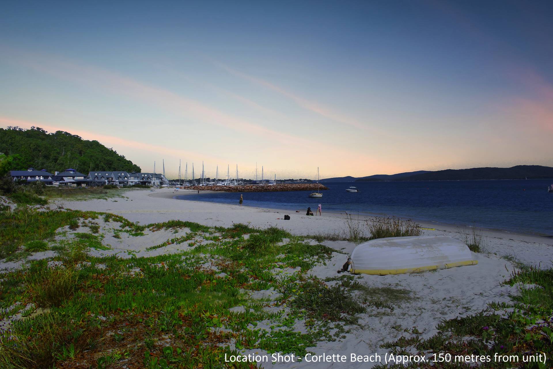 Within metres from the pearly white sands of beautiful Corlette beach, this Mediterranean style two bedroom unit is just a short stroll across the road onto a grassy tree studded reserve which meets the picturesque shores of a tranquil beach setting. Approx. a 3 min walk to the nearby 5 star Anchorage Marina, the location of this near seaside unit is sure to please. Amazing beachside and reserve walks at your door step, just a 5 min drive to Nelsons Bay CBD or Salamander bay shopping centre.