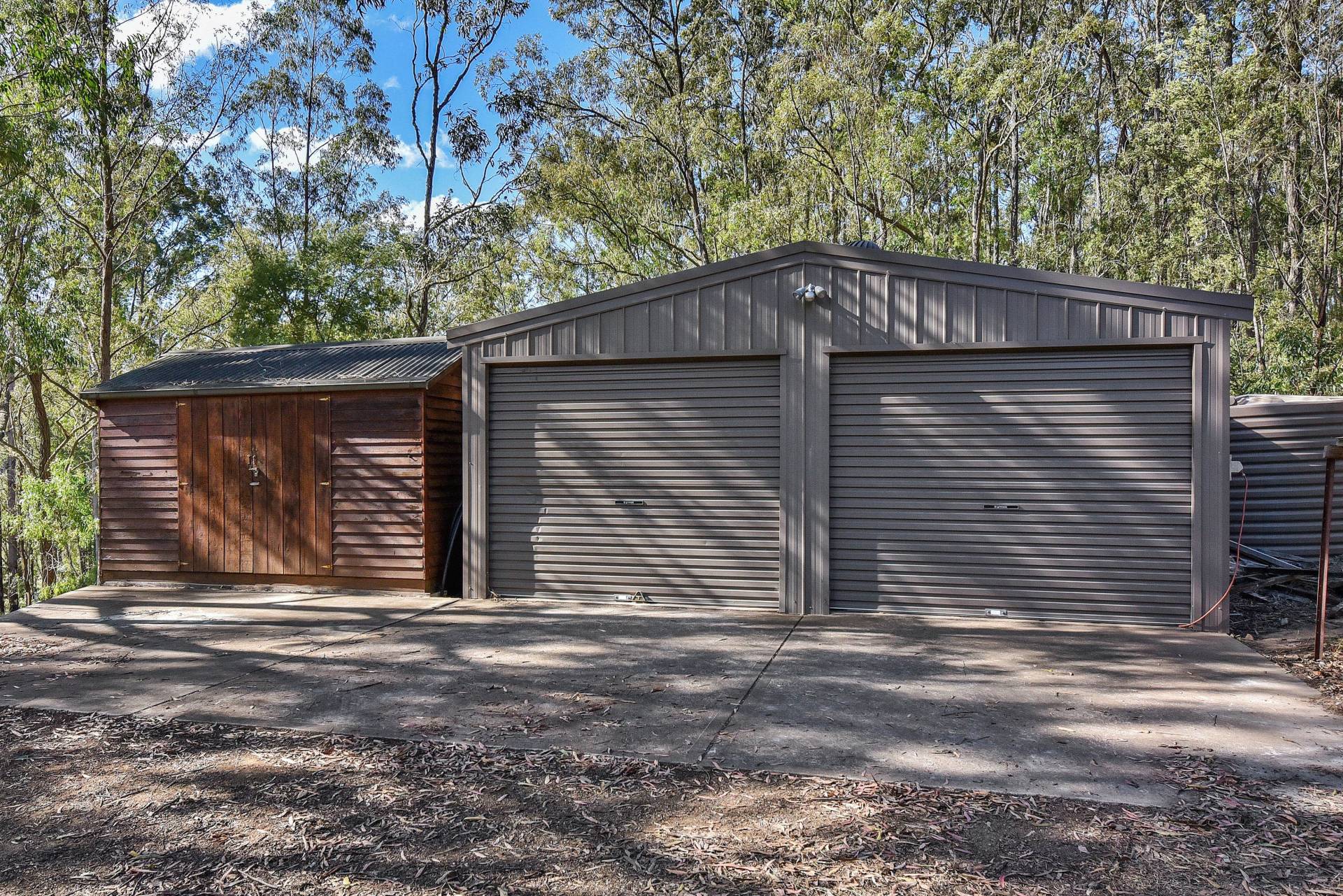 A double garage will accommodate cars and workshop need, with an adjacent timber storage shed.