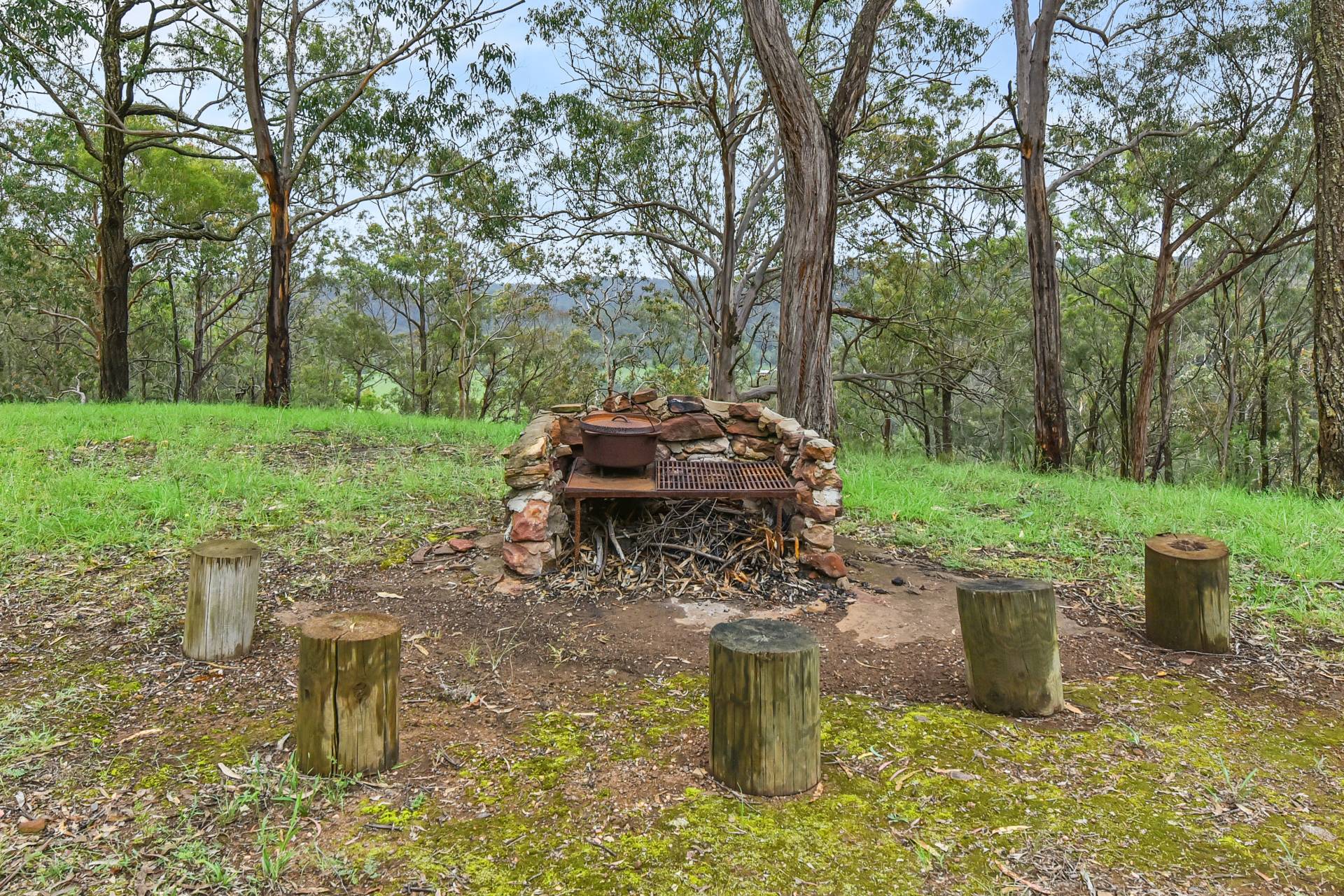 Upon entering 'Blue Gums' making your way along a meandering trail passing arable valley acres, lush rainforest gully, stunning rock escarpments and mountain bush land you arrive at a grassy plateau where you find perched high on the hill, a gorgeous timber constructed cottage with park-like surrounds and valley views filtered through the gum trees. The 38.43-hectare (approx. 95 acre) property offers total privacy, beautiful native flora including a rainforest with blue gum grove, abundant wildlife, grassy plateaus as well as a lush valley floor with a dam and stable.