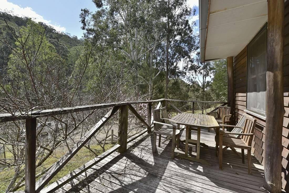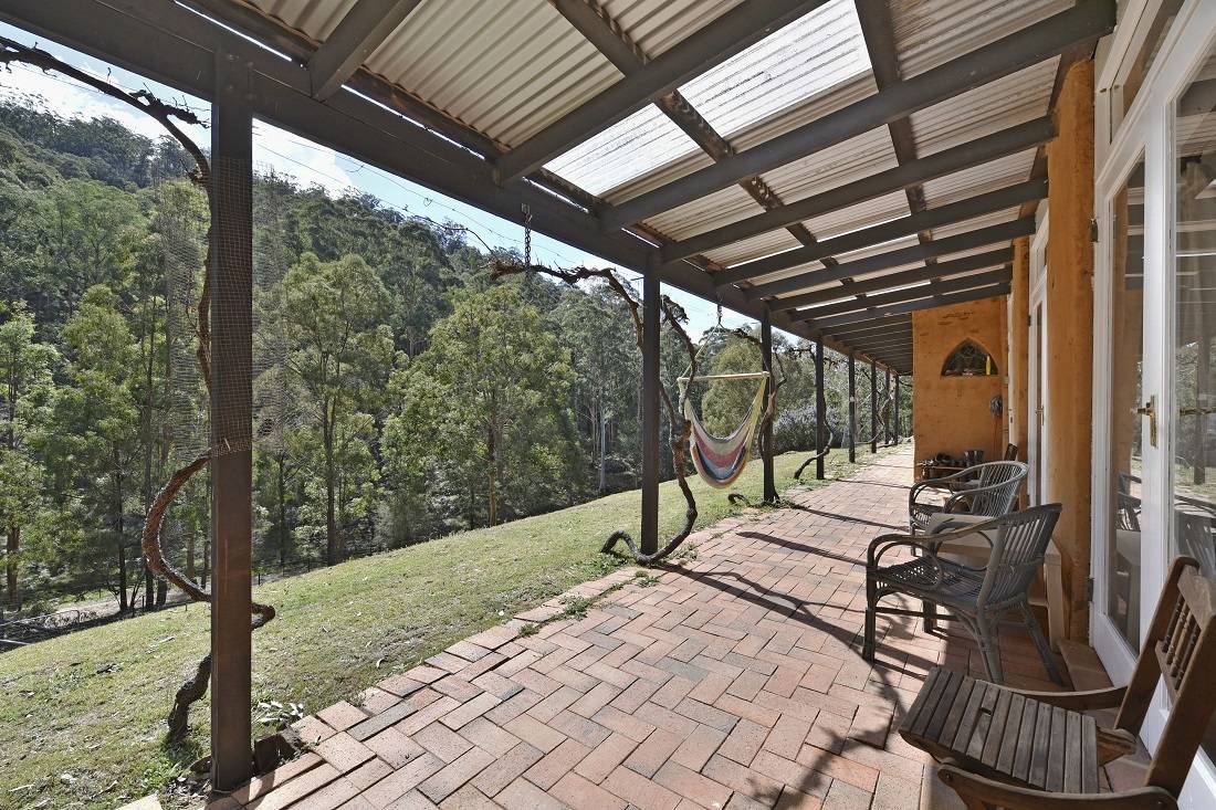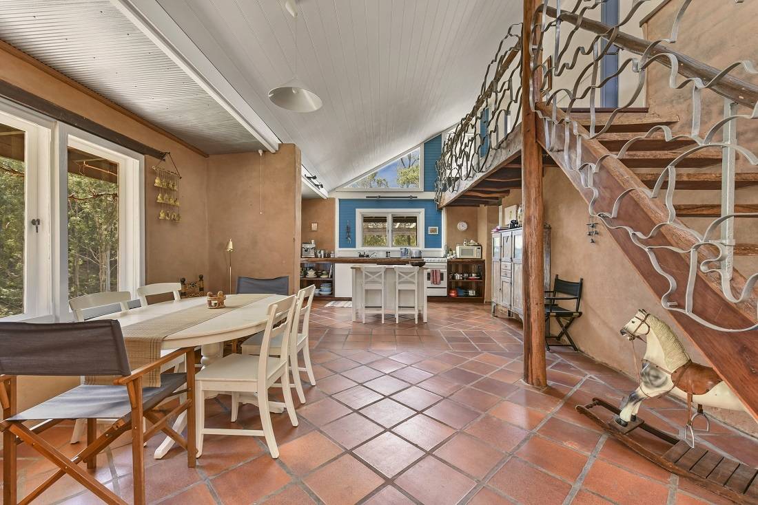 Perched on a private grassy plateau with lovely native gardens, fruit trees and striking rock features, the home comprises large open plan living spaces that open onto an under-cover wrap around verandah. A slow combustion fire place stands as a central focal point of the home and services the living areas. A charming open plan country kitchen is fitted with a free-standing stove and timber island bench adjoining the light filled dining room. Offering 3 upstairs bedrooms, one having access onto a private sunny verandah, a modern country bathroom with separate shower and bath tub, separate toilet and internal laundry.