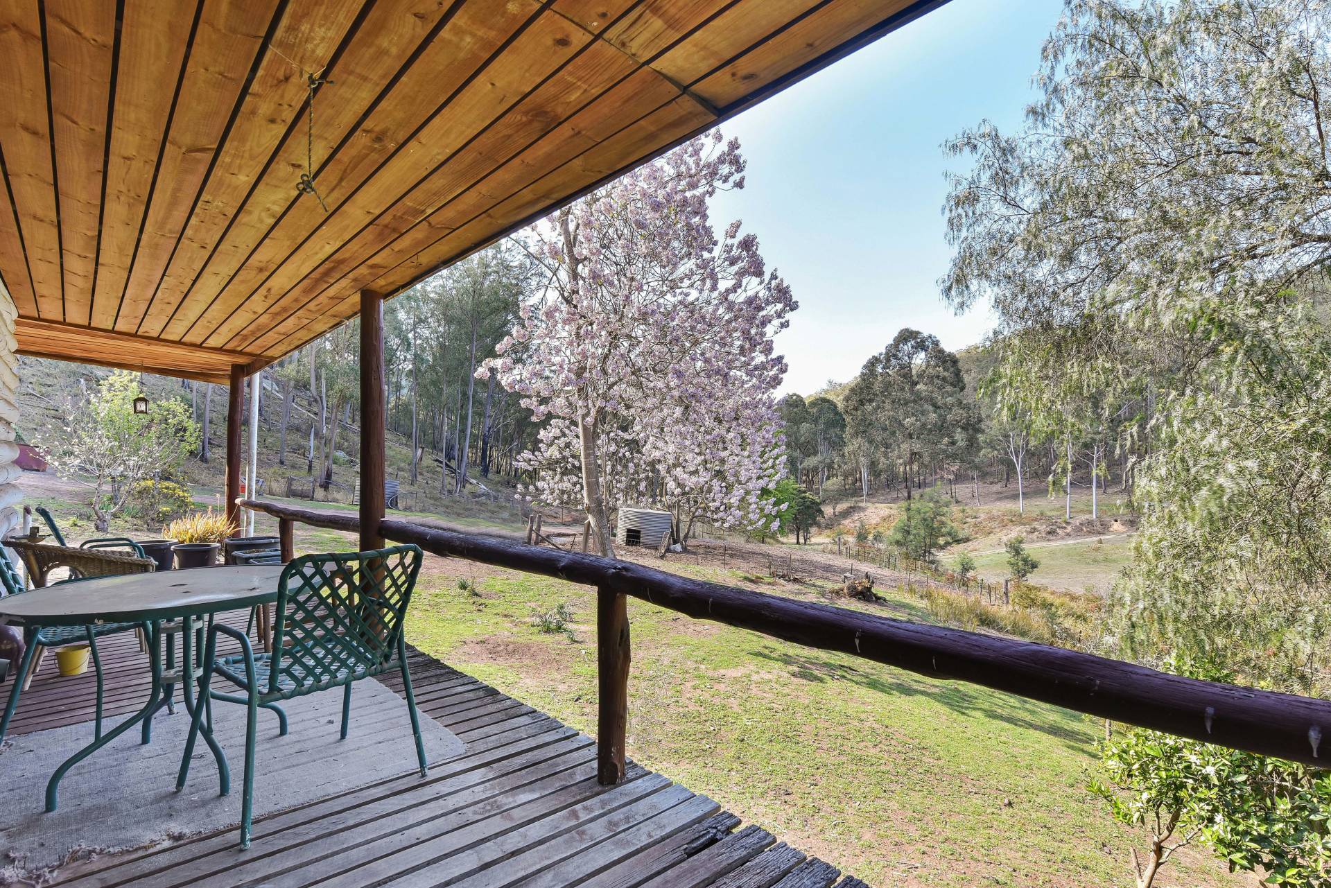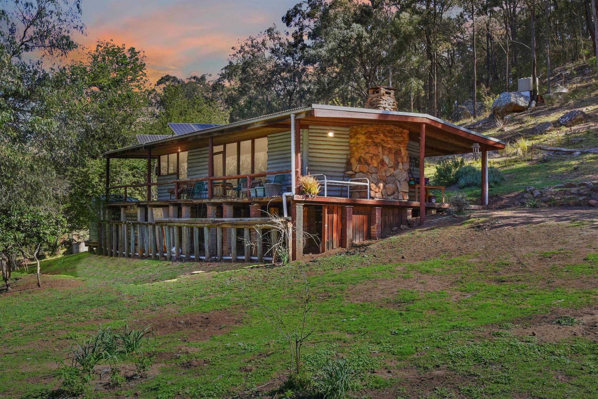 Nestled in a gorgeous valley with a north easterly aspect, this Australiana bushland inspired home sits proud on 40 undulating acres (16.19ha) blending a mix of arable pastured land with stunning natural bushland surrounds. Less than two hours from Sydney CBD (1.5 hours from the Wahroonga Interchange) this tranquil bush retreat will make you feel a million miles away from city life. Featuring a character filled 1-bedroom log cabin style home with wrap around verandahs that take in the beautiful pastured valley views surrounded by established gardens including many fruit trees.