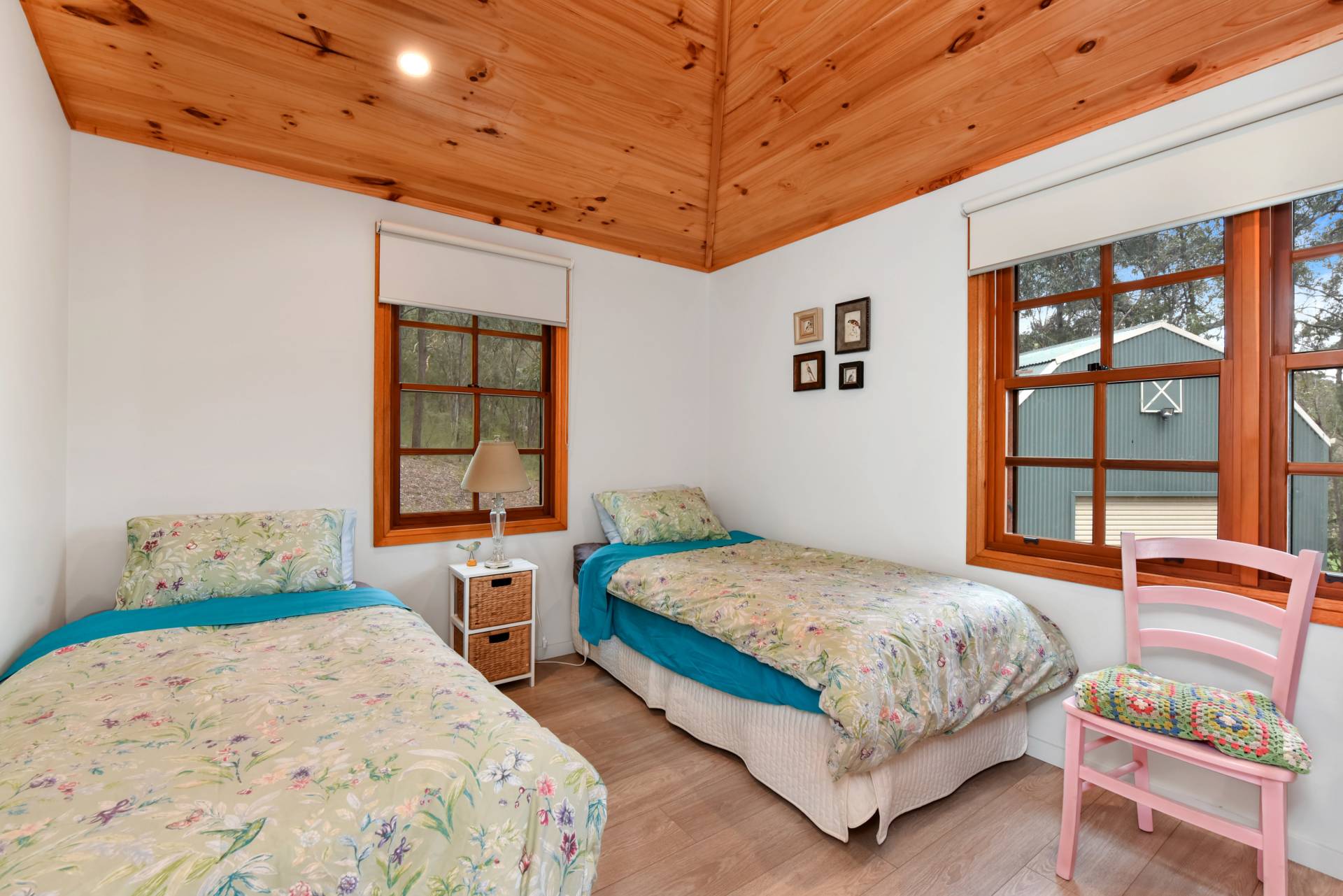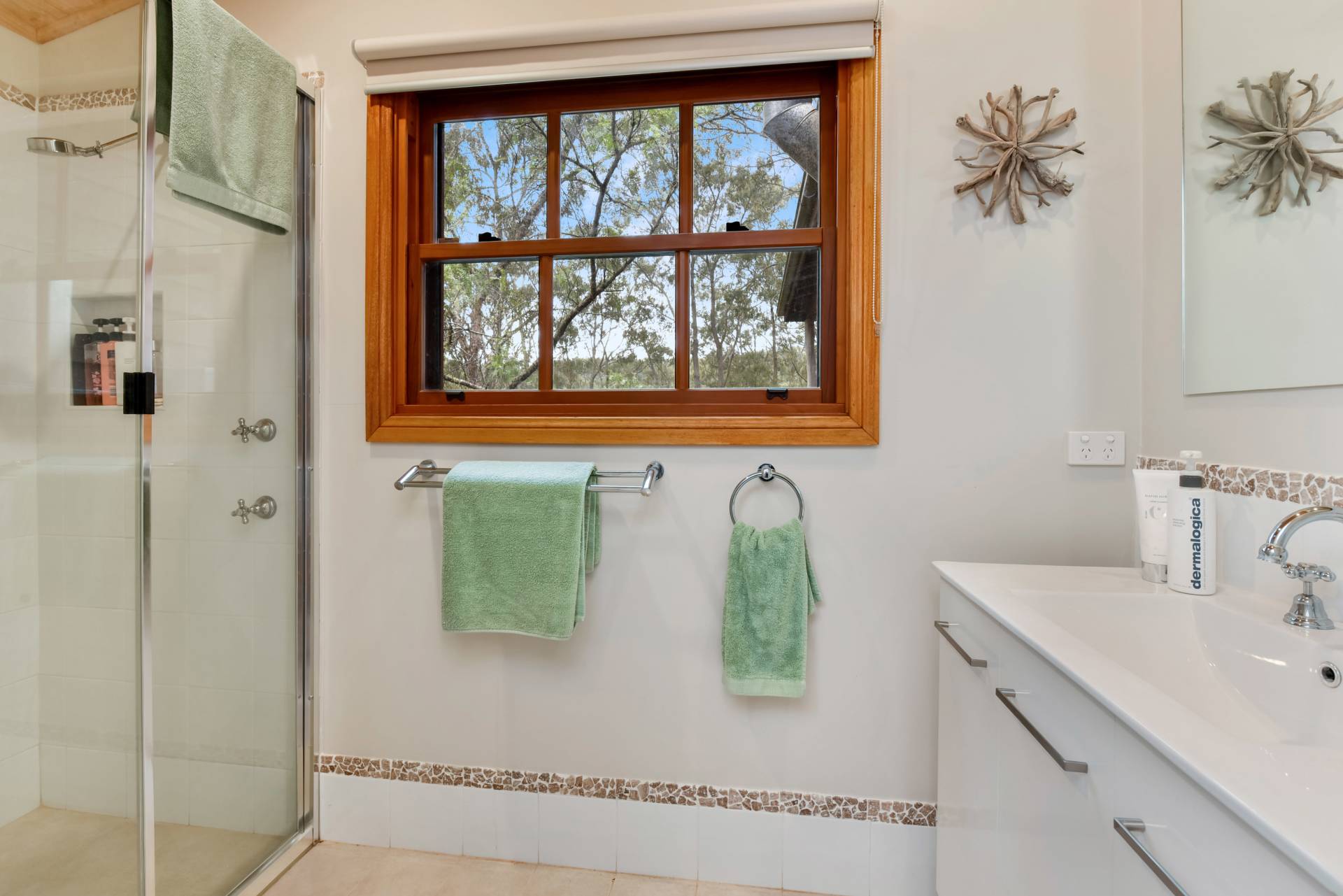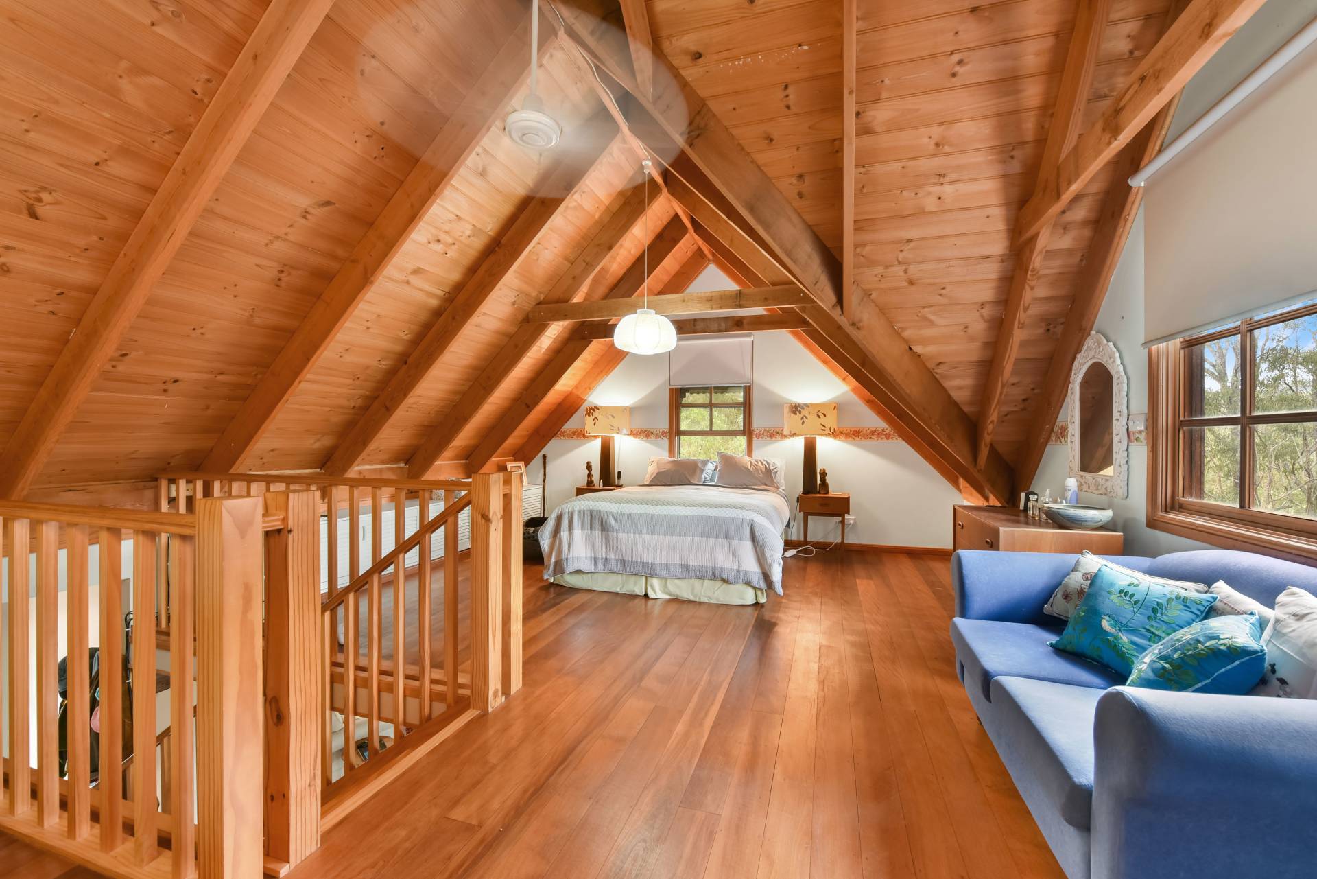 The cedar home has a main loungeroom living area with split system air conditioning adjoining open plan dining and timber country kitchen. The lower level comprises two bedrooms and a modern bathroom as well as a separate internal laundry and second bathroom. Upstairs is the large master bedroom with built-in robes and elevated views of the pastures below. An extensive outdoor wrap around verandah takes full advantage of the picturesque rural surrounds and is a highlight of the home.