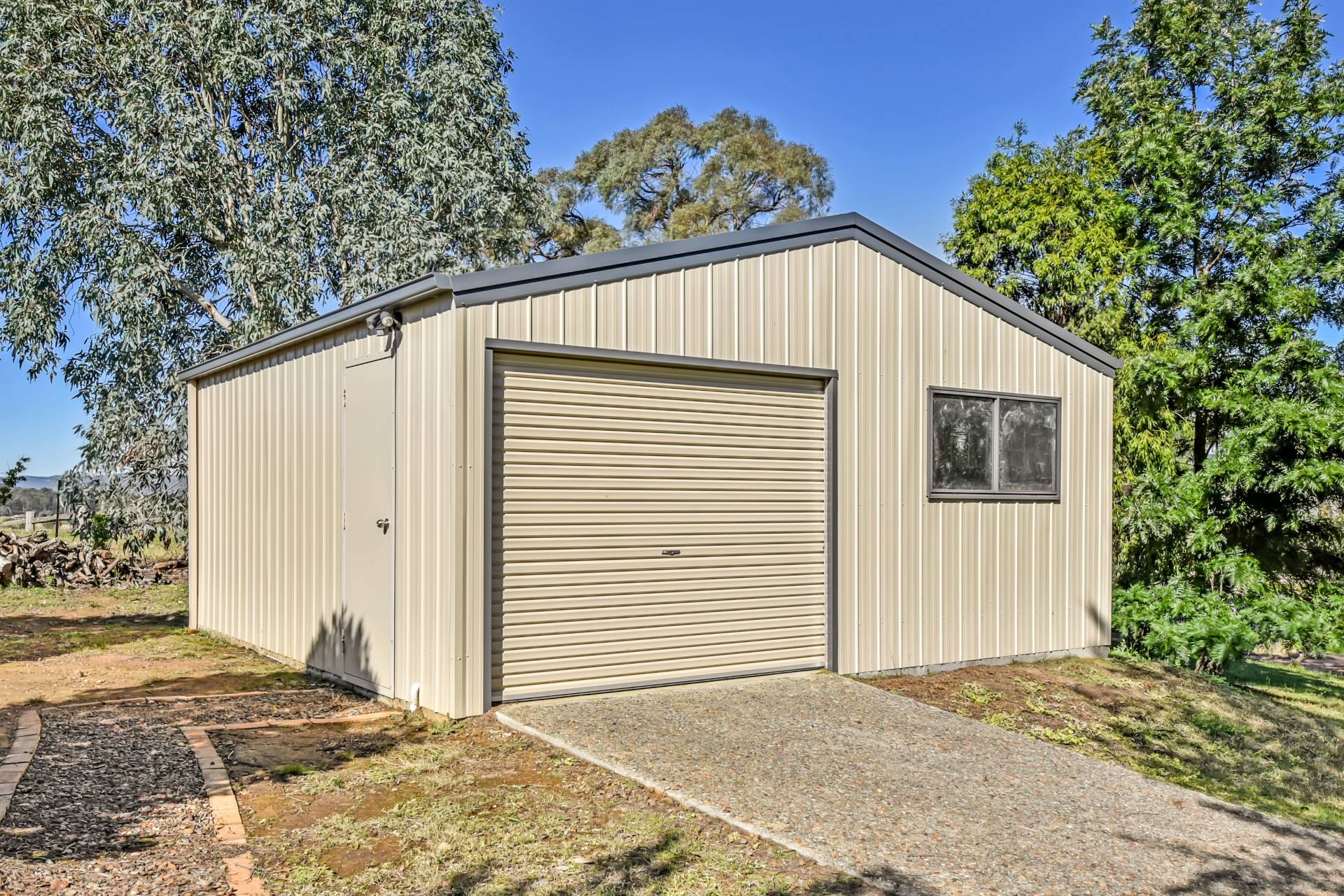 • Double bay lock up farm shed with roof insulation, power connected, work bench and shelving