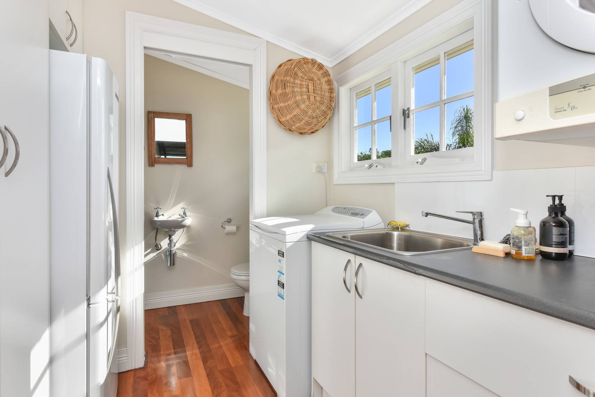 • Well equipped laundry with built in cupboards, and additional toilet facility