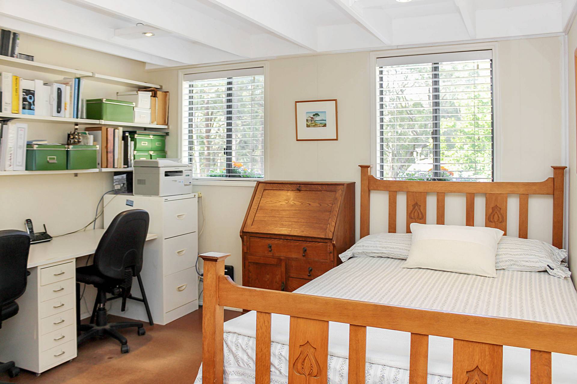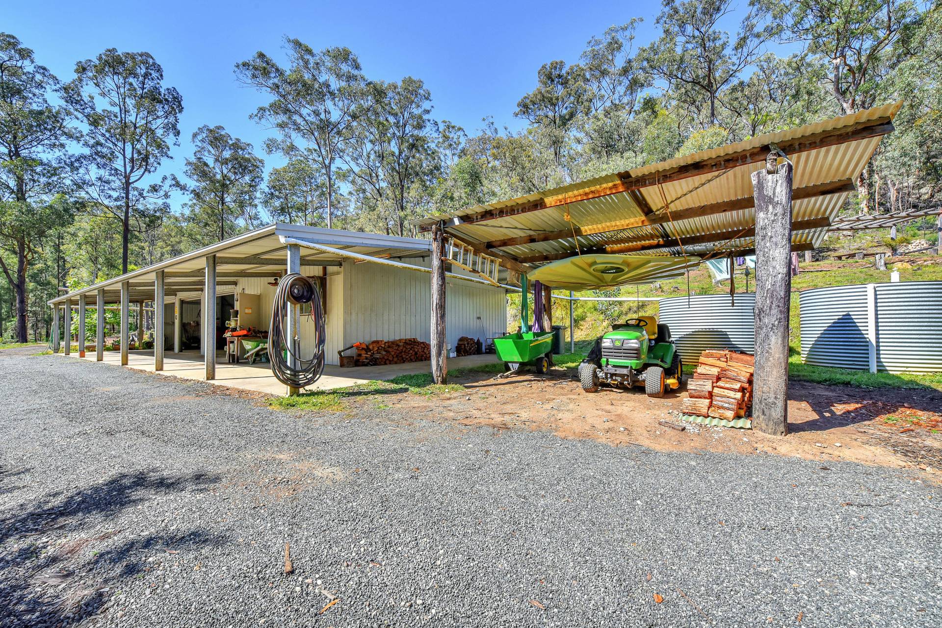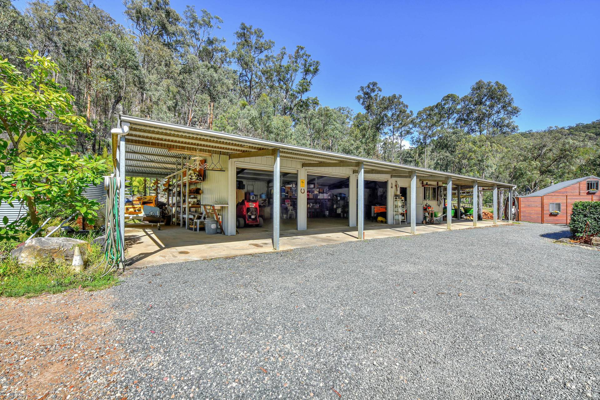 A 7-bay shed (21 x 11 metre), on a concrete slab provides 3 parking bays, plus 2 bays for a workshop and 2 external bays. An additional lean-to also provides undercover parking for another vehicle.