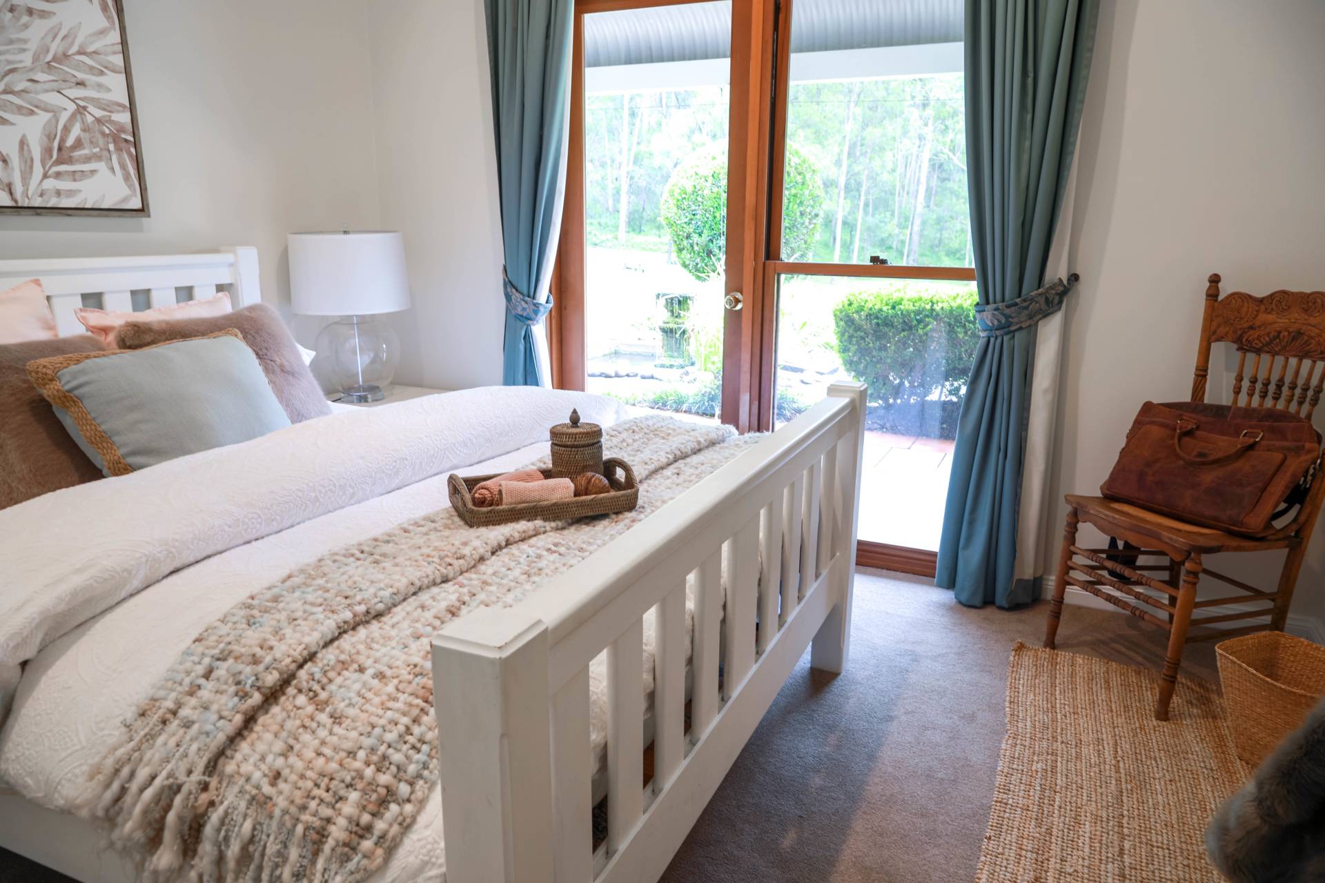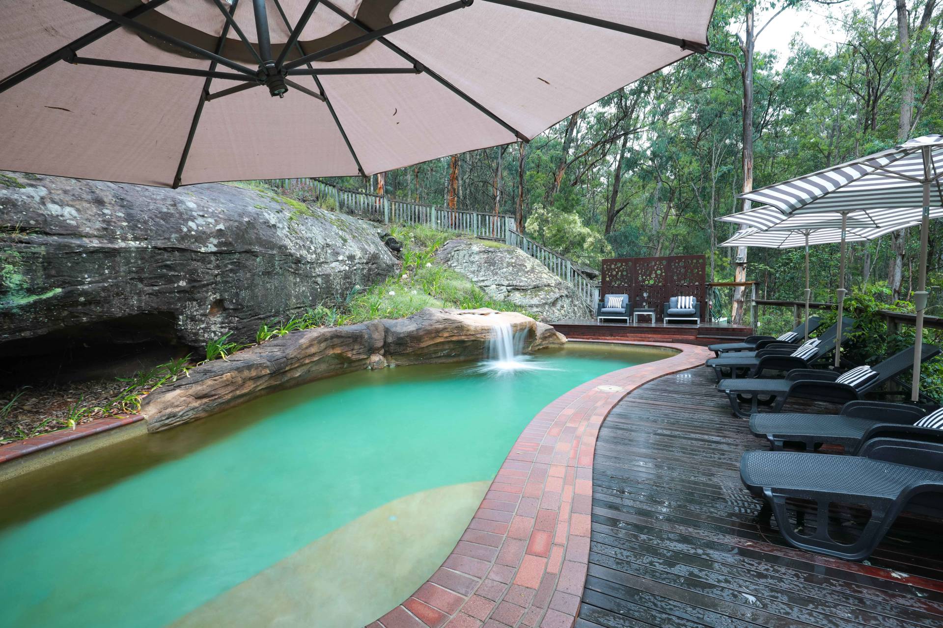 Four luxury guest suites including a wheel chair friendly suite are located privately from the homestead and have been individually styled. Each suite comes complete with under cover BBQ areas, cosy loungeroom/dining rooms fitted with modern open fire places, kitchenette’s, large suite bedroom with ensuite (corner bath and shower) and built-in robes, reverse cycle air conditioning, digital smart T. V’s and stylish décor. Each retreat has fantastic bushland and valley floor views and they are all a stone’s throw away from an exquisite inground saltwater swimming pool that has been melded perfectly into the natural surrounds with amazing rocks and water feature.