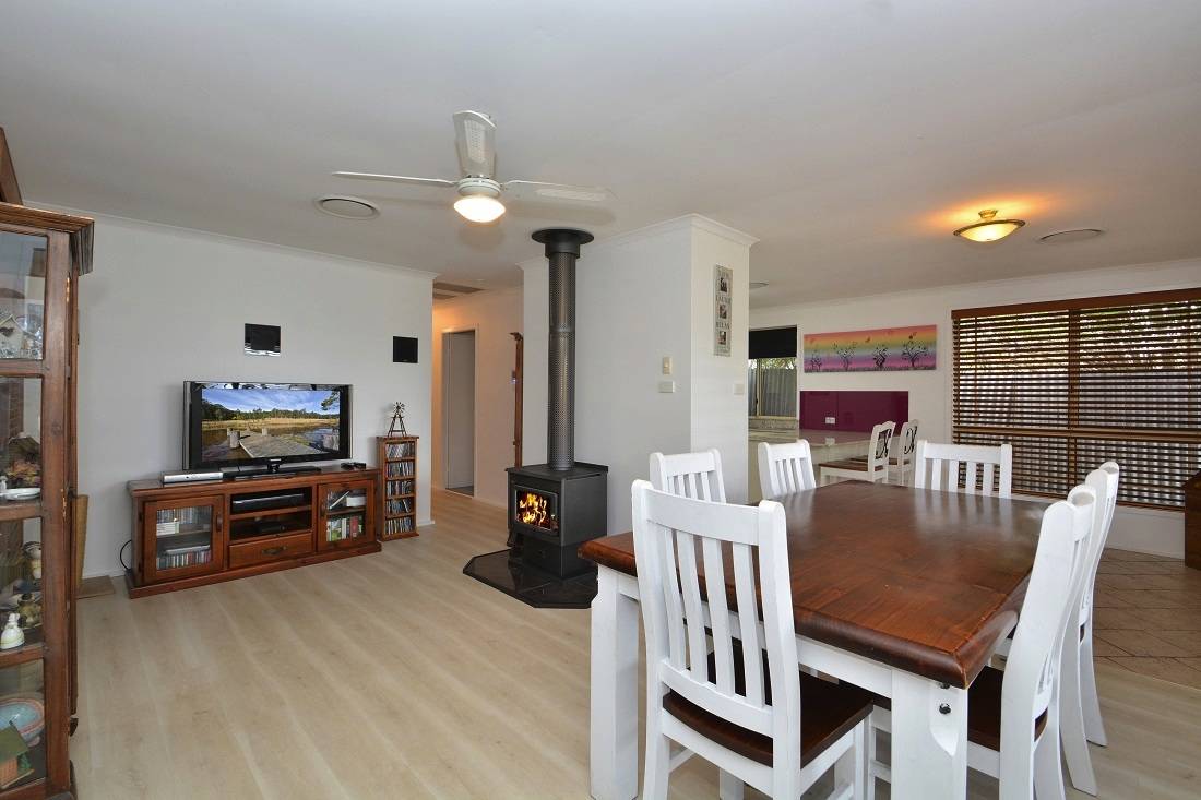 Your heating and cooling needs are taken care of with ducted reverse cycle air conditioning and a slow combustion wood fire place. Gorgeous white wash timber laminate flooring compliments the light and airy feel of the home. Other fine features include wired surround sound speakers, ceiling fans and dish washer.