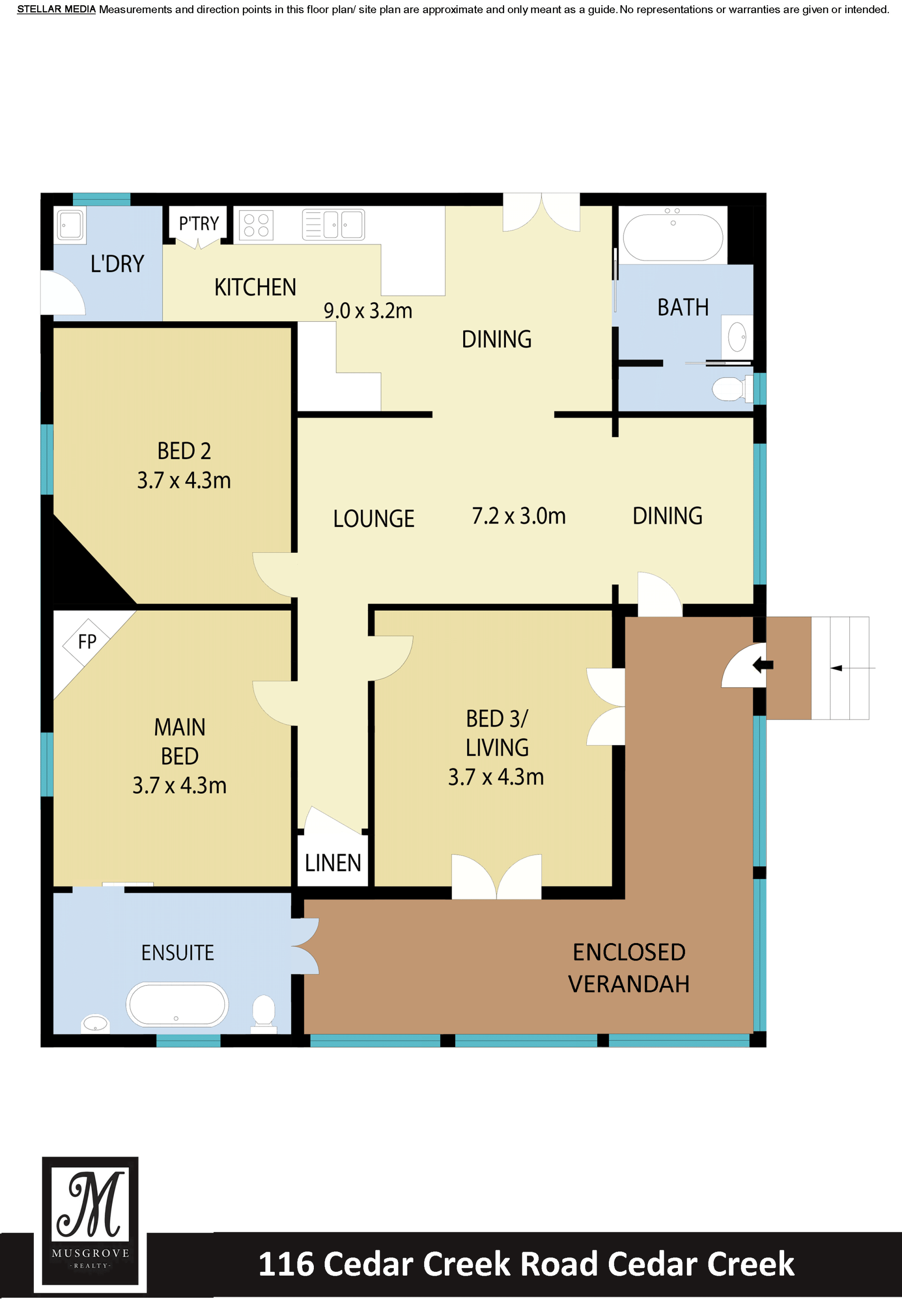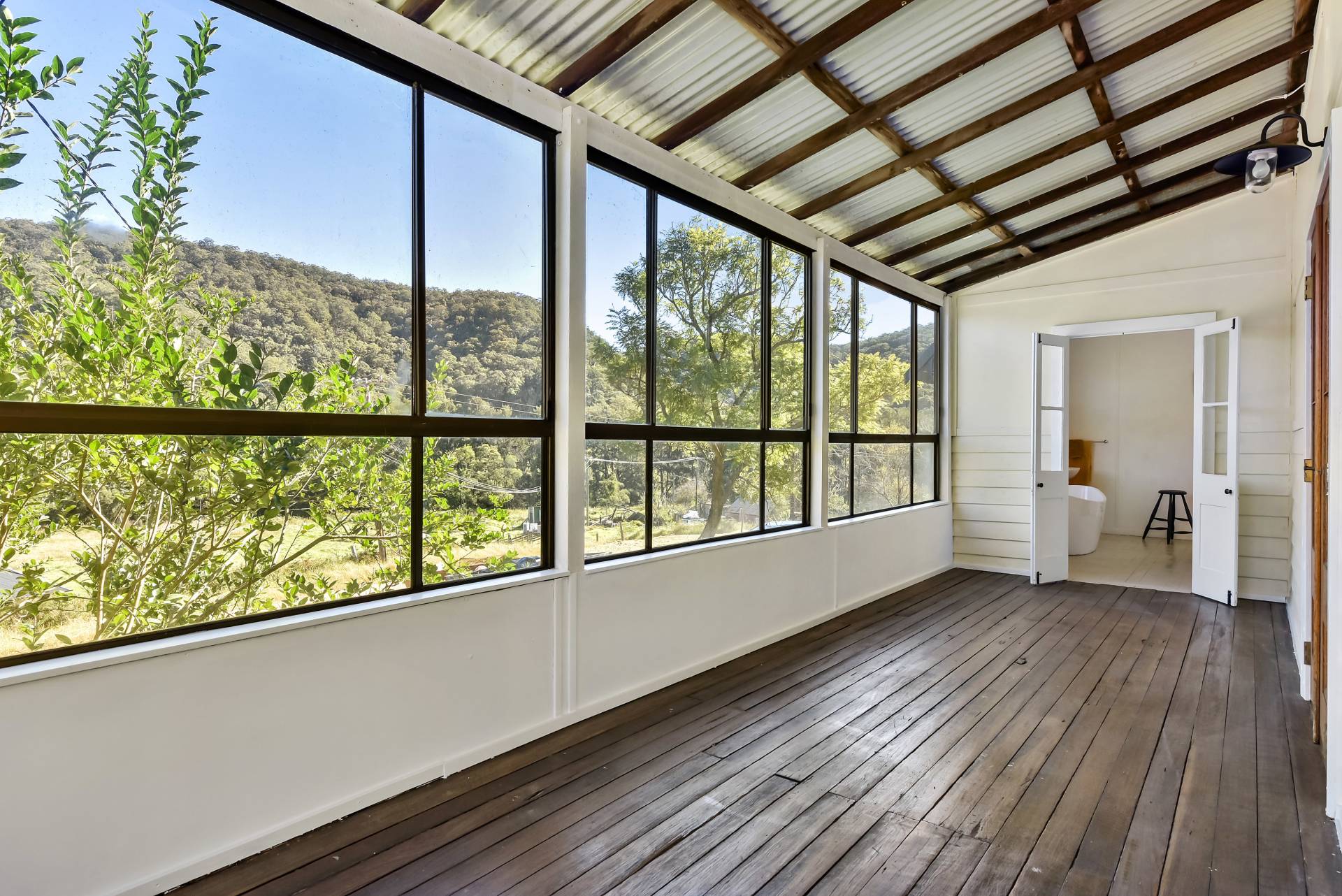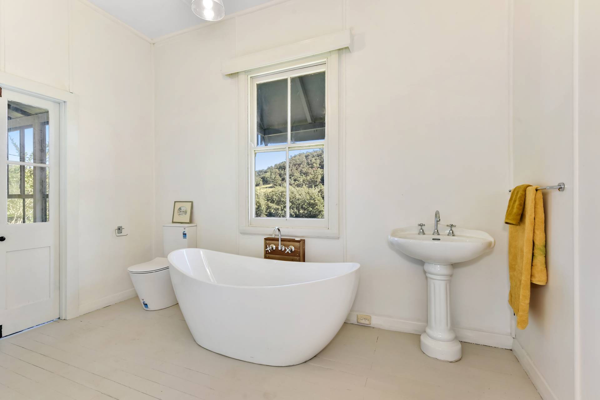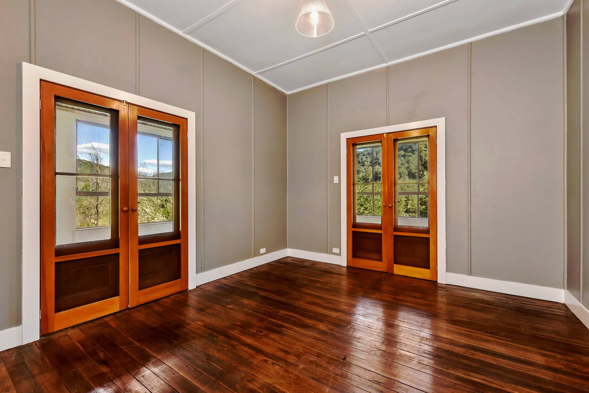 A sizeable timber kitchen comes complete with an electric stove, stainless steel rang hood, space for a dishwasher and ample cupboard storage. A laundry area has been allocated to the northern end of the kitchen. The main bathroom comprises a shower, vanity and separate toilet. The loungeroom adjoins a cosy dining area which looks out a large light filled window, taking in stunning mountain vistas. A large master bedroom featured a fire place and is complimented with a country inspired ensuite, fitted out with a freestanding bathtub and pedestal basin sink. Having access through double French doors onto an enclosed wrap around verandah. Bedroom two is also a good size, bedroom three or an optional living area is very large and has two sets of double french doors opening onto the enclosed verandah. High ceilings, timber floors, downlights and a built in linen press all add to the fine features this character home has to offer.