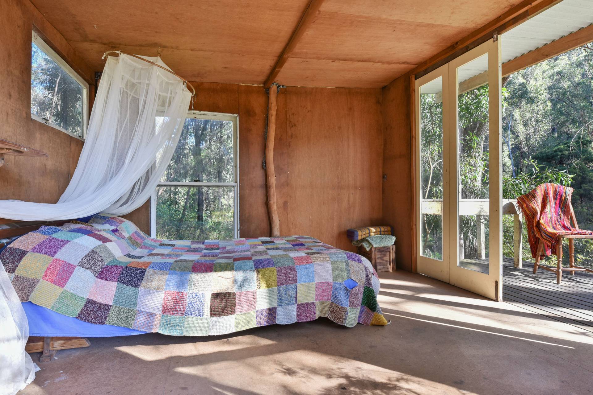 The cosy shed is fully self-sufficient with a small solar power system, wood stove for cooking, slate, timber & concrete floors, a warming slow combustion fireplace and second story loft room with a balcony to enjoy the mountain views. A second studio with timber deck makes another great sleepout.