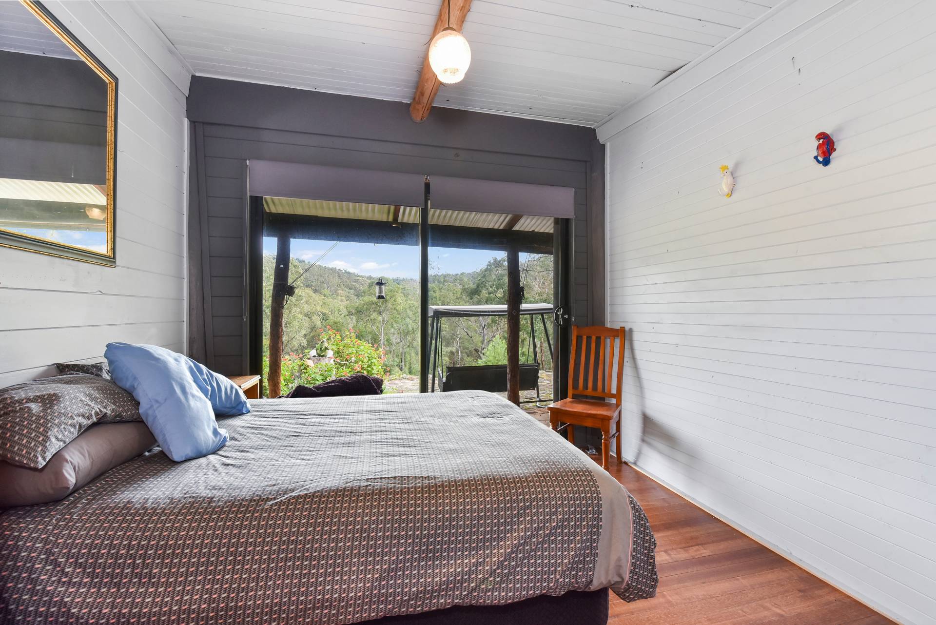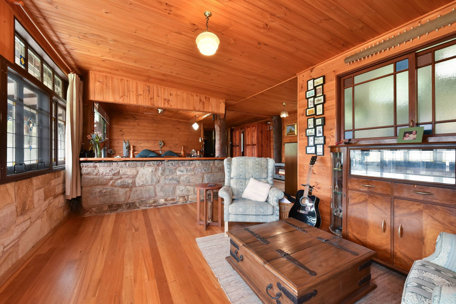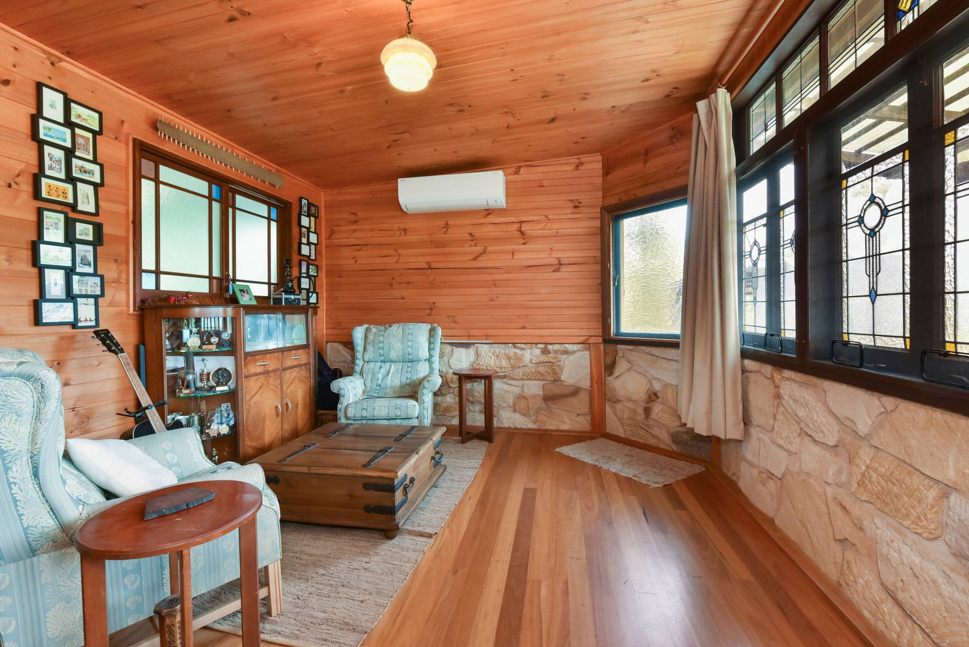 The character filled retreat comprises open plan living spaces, a quaint country-style kitchen, and 3 bedrooms each with a unique style and scenic view. Full of character throughout, the features of the retreat are endless. A stunning, sandstone fireplace is centrally located within the open plan living area, ideal for the winter months, creating a place of warmth to gather with family and friends. Lovely stained-glass windows are another prominent feature throughout. A mix of hardwood timber & slate tile flooring compliment the extraordinary hand-made construction.