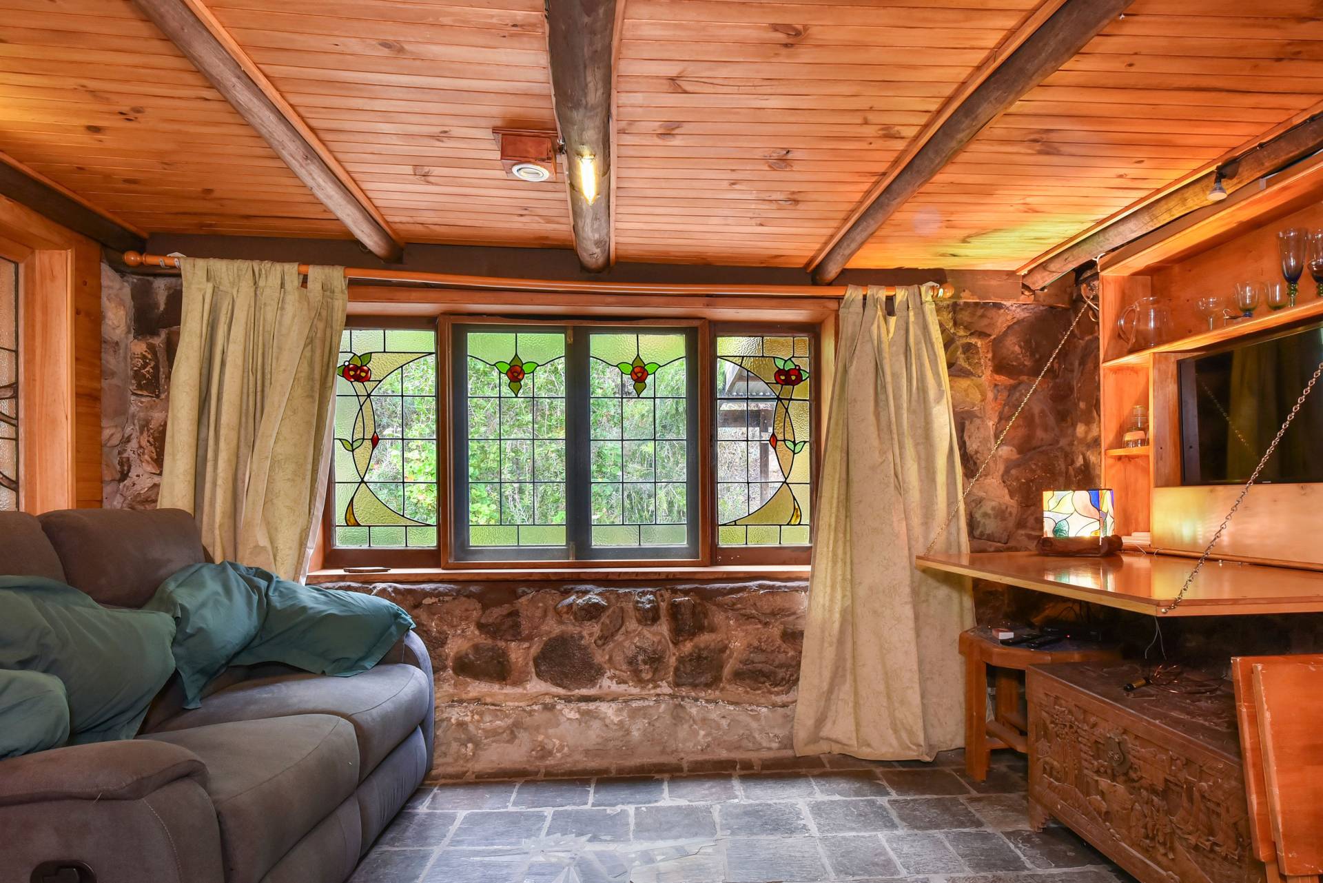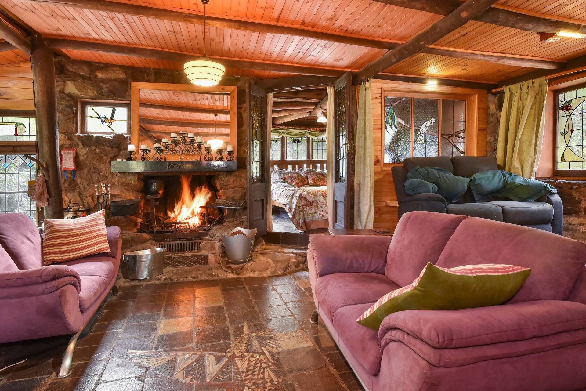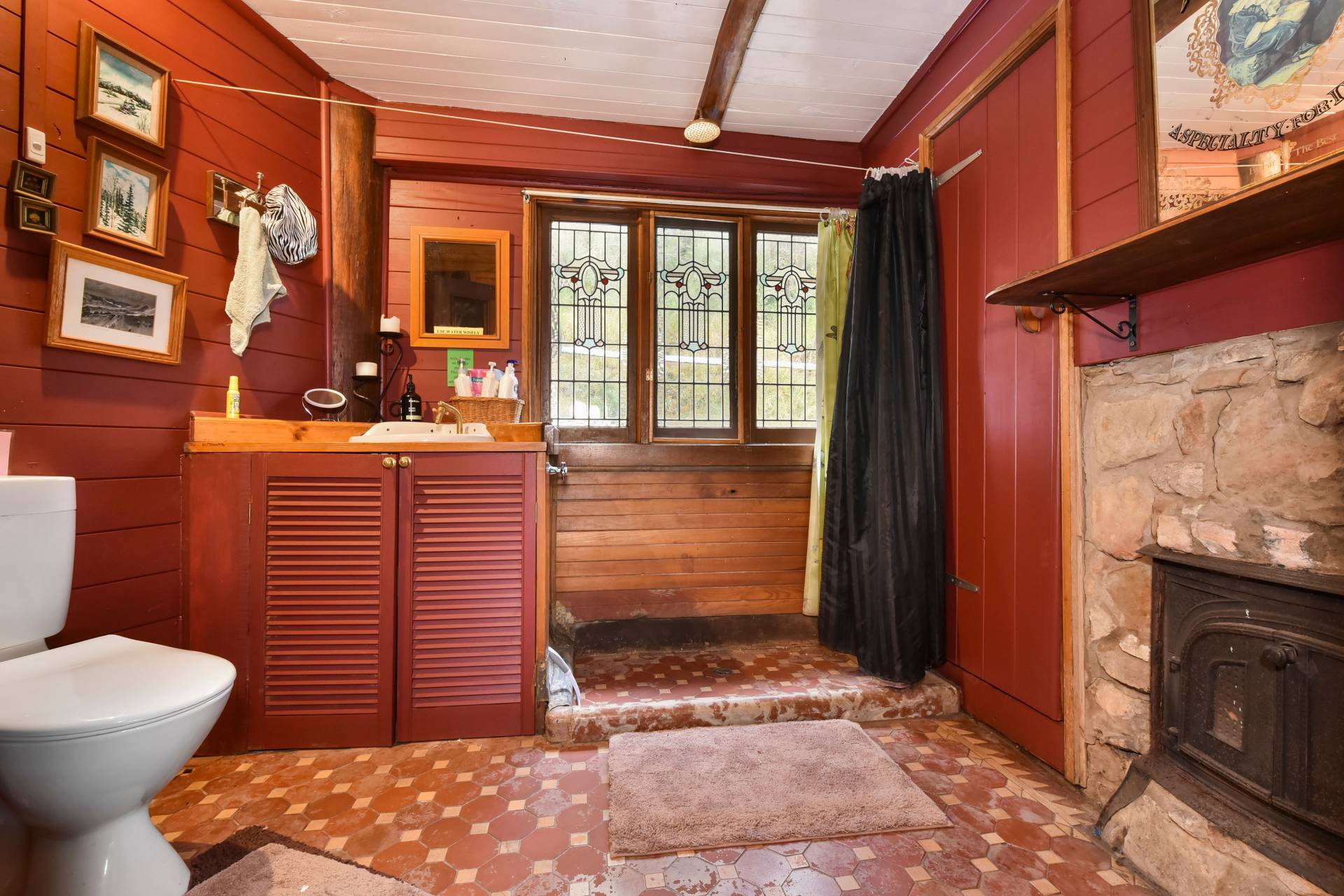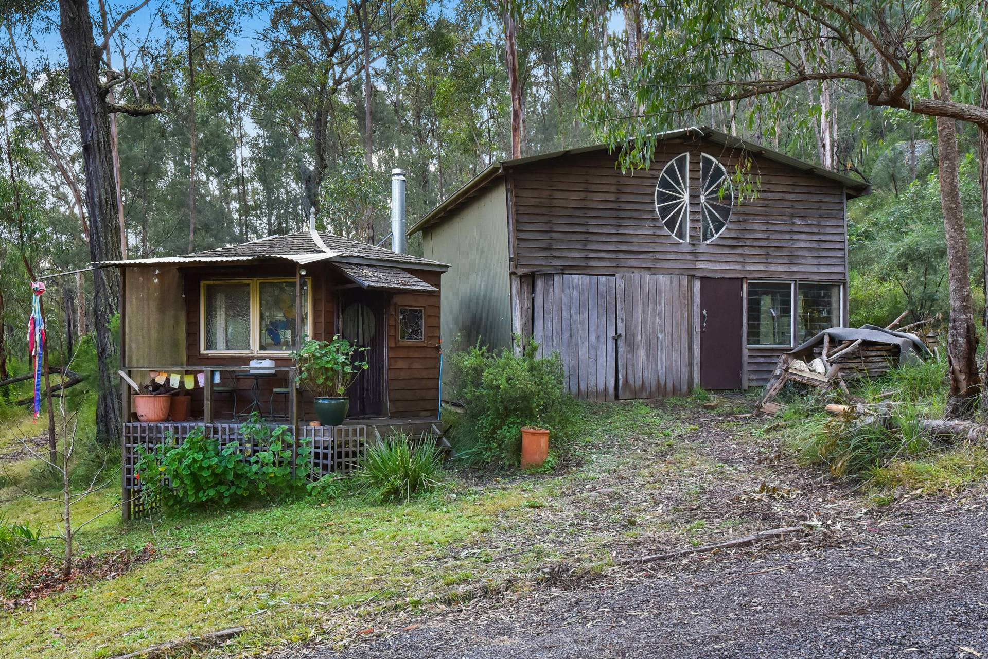The character filled retreat comprises open plan living spaces, a quaint country-style kitchen, and 3 bedrooms each with a unique style and scenic view. Full of character throughout, the features of the retreat are endless. A stunning, sandstone fireplace is centrally located within the open plan living area, ideal for the winter months, creating a place of warmth to gather with family and friends. Lovely stained-glass windows are another prominent feature throughout. A mix of hardwood timber & slate tile flooring compliment the extraordinary hand-made construction.