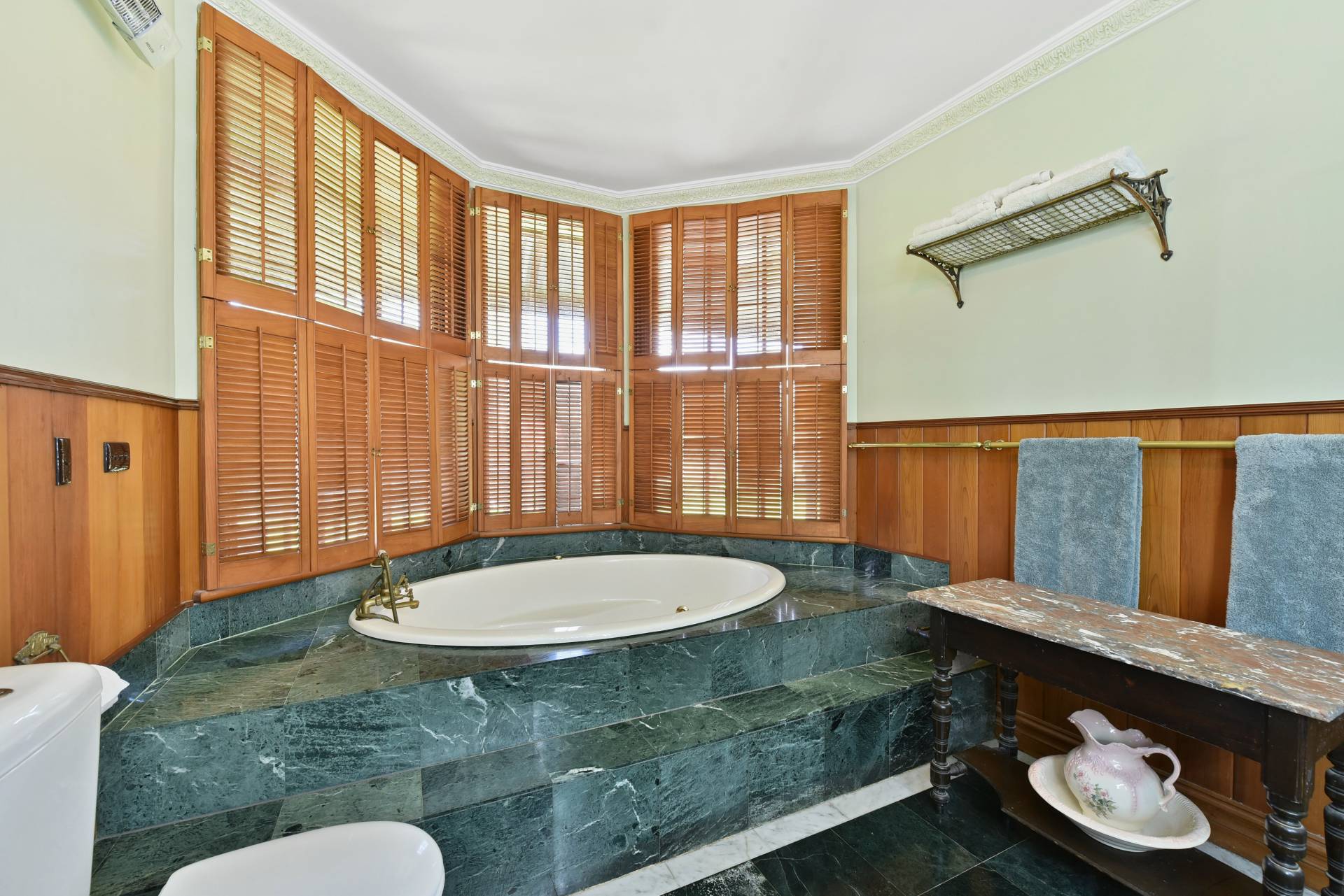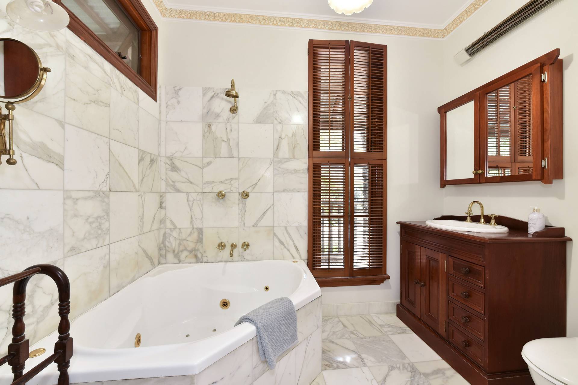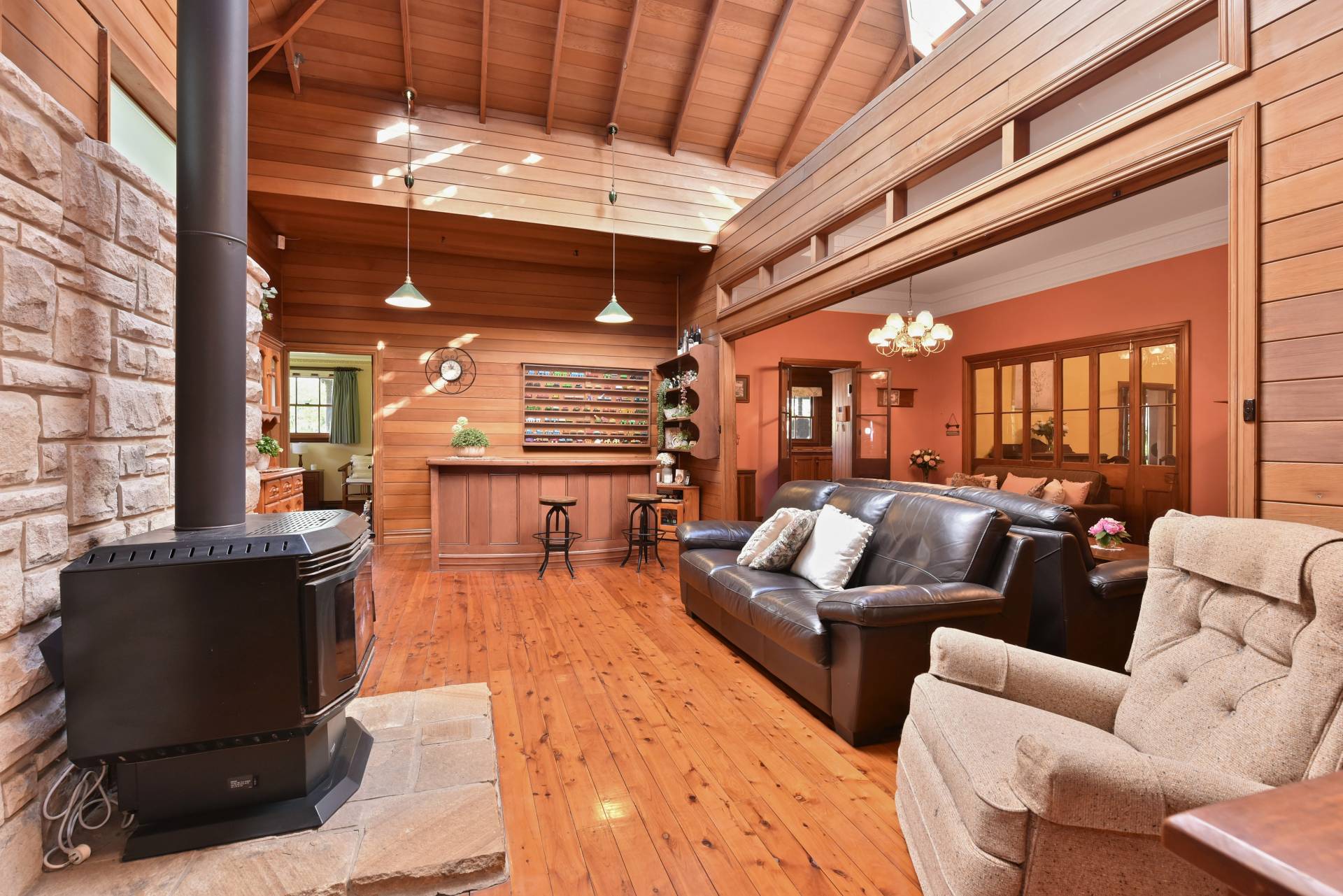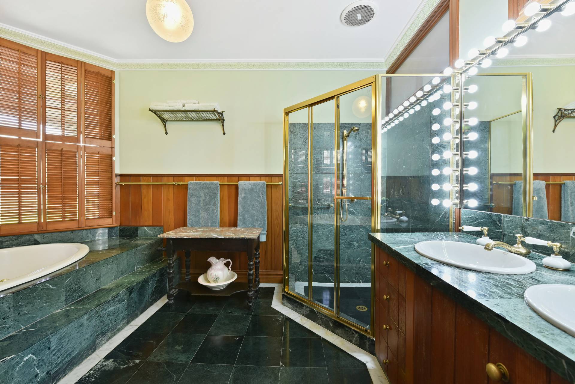 A highlight of the home is the grand living room & observatory that has a cathedral style timber & glass ceiling to enjoy star gazing at night and fill the room with light during the day. A large gourmet timber kitchen features an electric wall oven & stove, an original fuel stove and open plan design adjoining a meals area and living space. There is also a huge formal dining room with a gorgeous open fireplace and beautiful decorative plaster ceiling to enjoy large gatherings with family & friends. The over sized master bedroom includes another open fireplace, built-in-robes and a modern quaity marble ensuite with spa bath & shower. The main bathroom is also marble and features a large spa bath, set in a bay window to enjoy the views over the estate as well as a separate shower & double vanity.