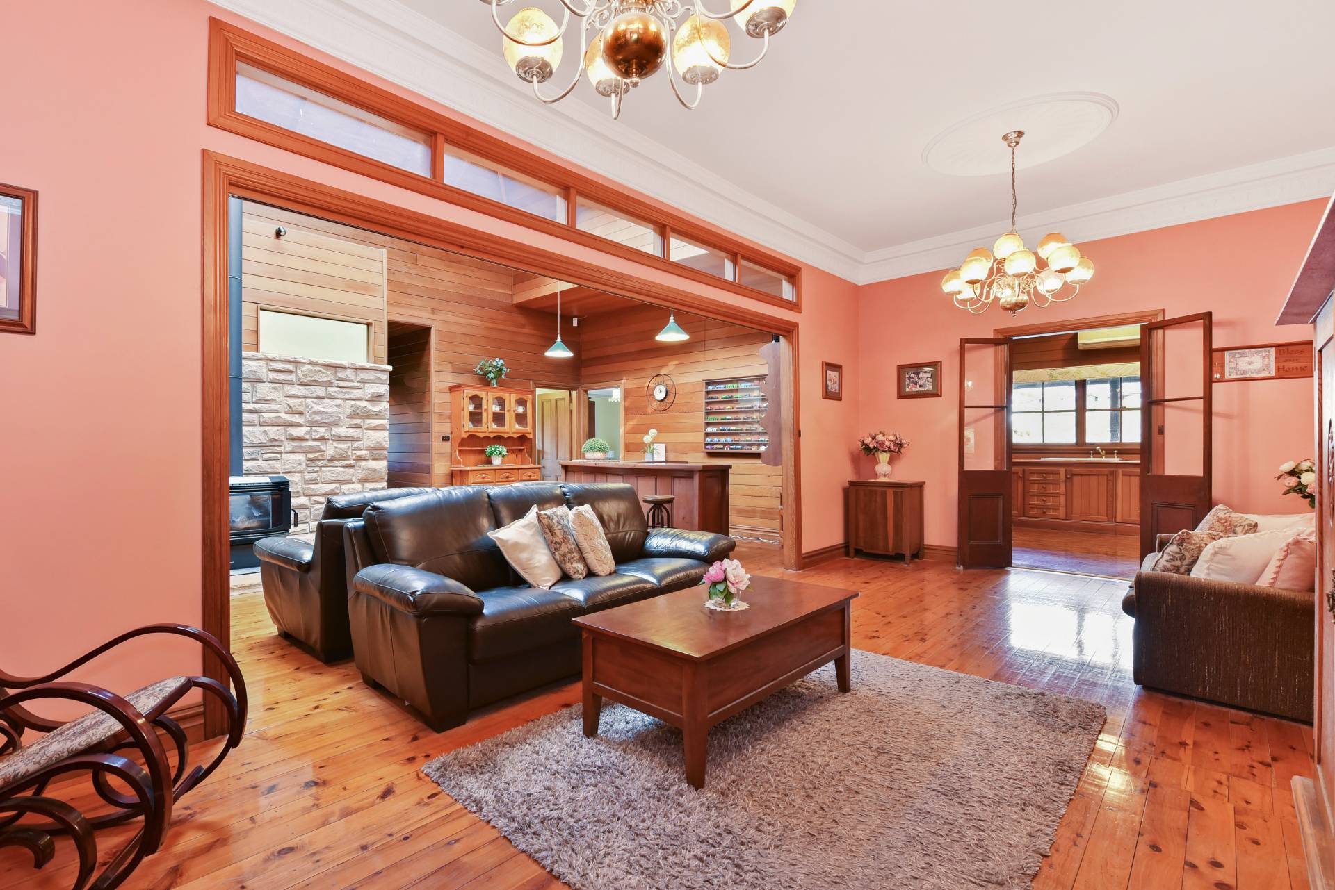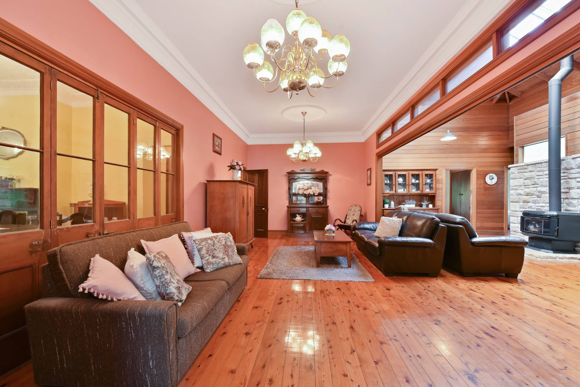 Entering the property straight off the tar sealed road, a winding pebble driveway leads by charming farm sheds & established cottage gardens towards the impressive, grand country homestead, sitting proud surrounded by manicured lawns and gardens. Boasting 5 bedrooms + study and multiple large living areas, the home is everything you could want in a country lifestyle property, perfect for all generations of family to enjoy with a timeless design. Dating back to the 1800's, the home has many beautiful ornate features such as high ceilings, period chandeliers with fancy rosette ceiling plasterwork, French doors, timber floors & a wraparound bull nose verandah.