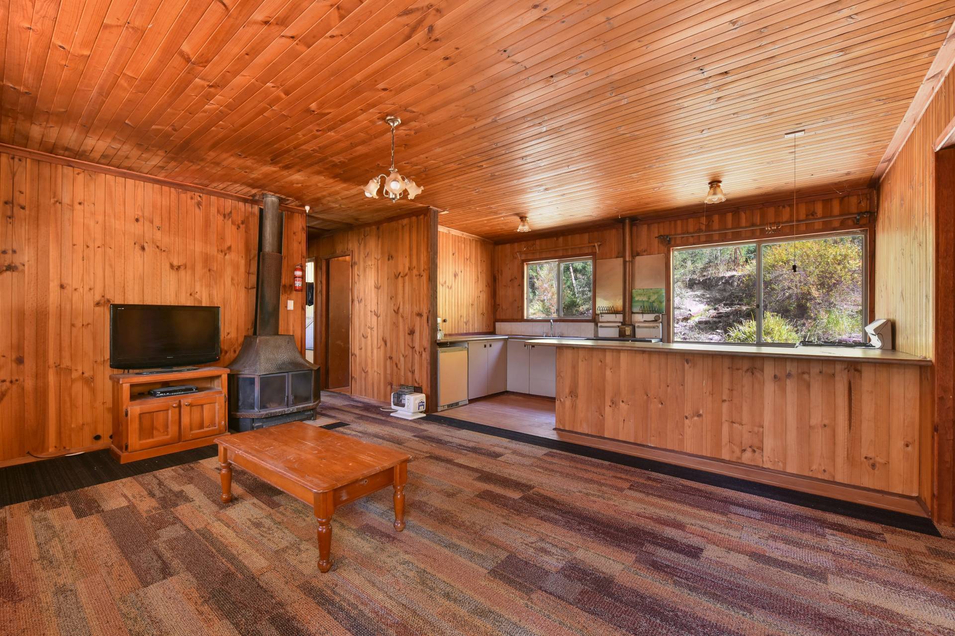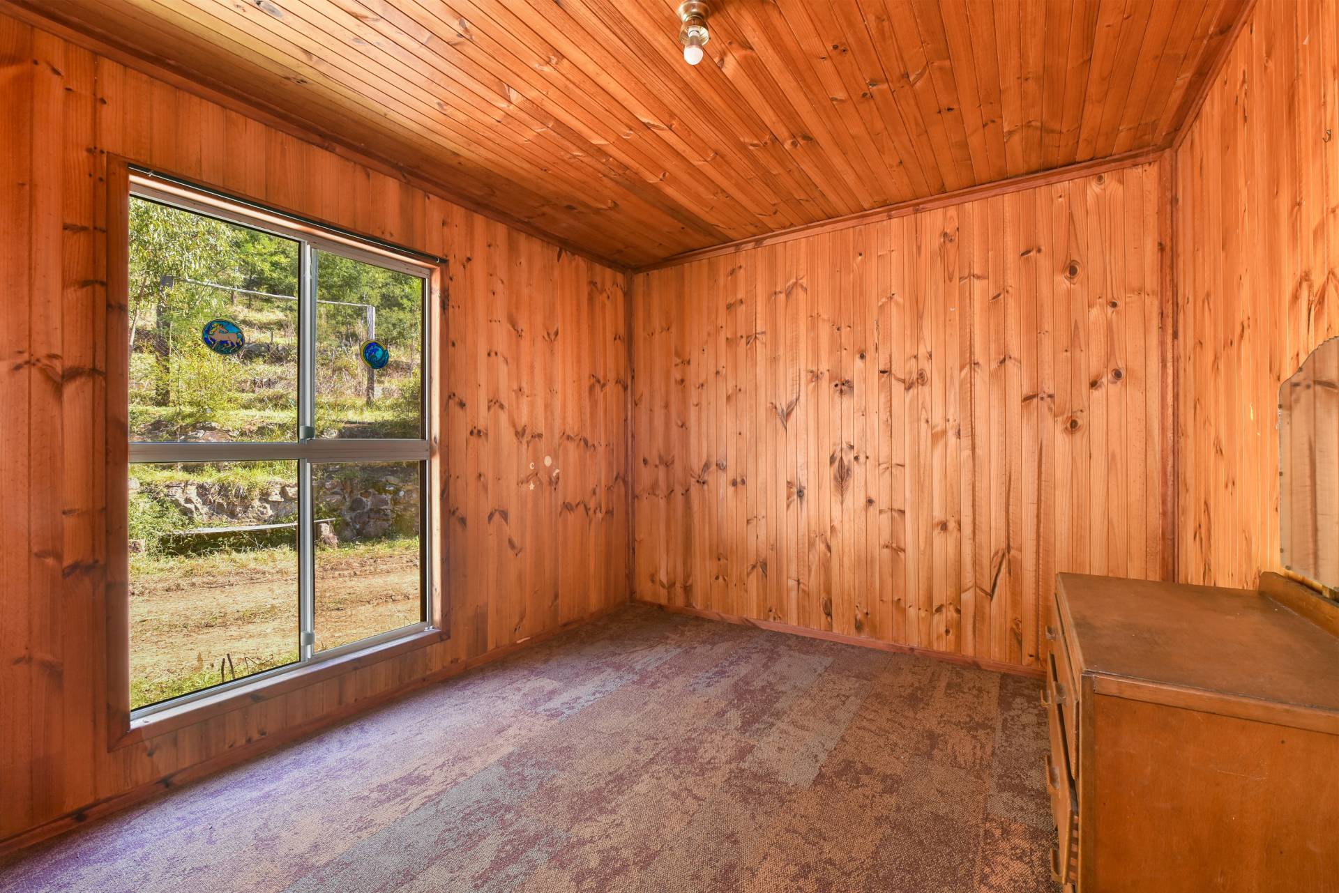 The eco-friendly house is fully self-sufficient with solar power, gas cooking & gas hot water. The open plan kitchen is fitted with a gas stove and adjoins a spacious living area featuring a slow combustion fireplace (The Vendor has advised the fireplace may need a chimney sweep & some repairs as it has not been used for some time). The home comprises three generous bedrooms, one bathroom and has plenty of potential to expand if needed. Stepping onto the north facing verandah gives you the feeling of a real bush retreat ambience, ideal as a weekender or permanent lifestyle property.