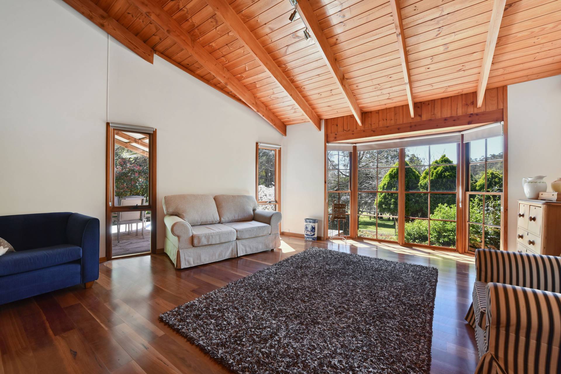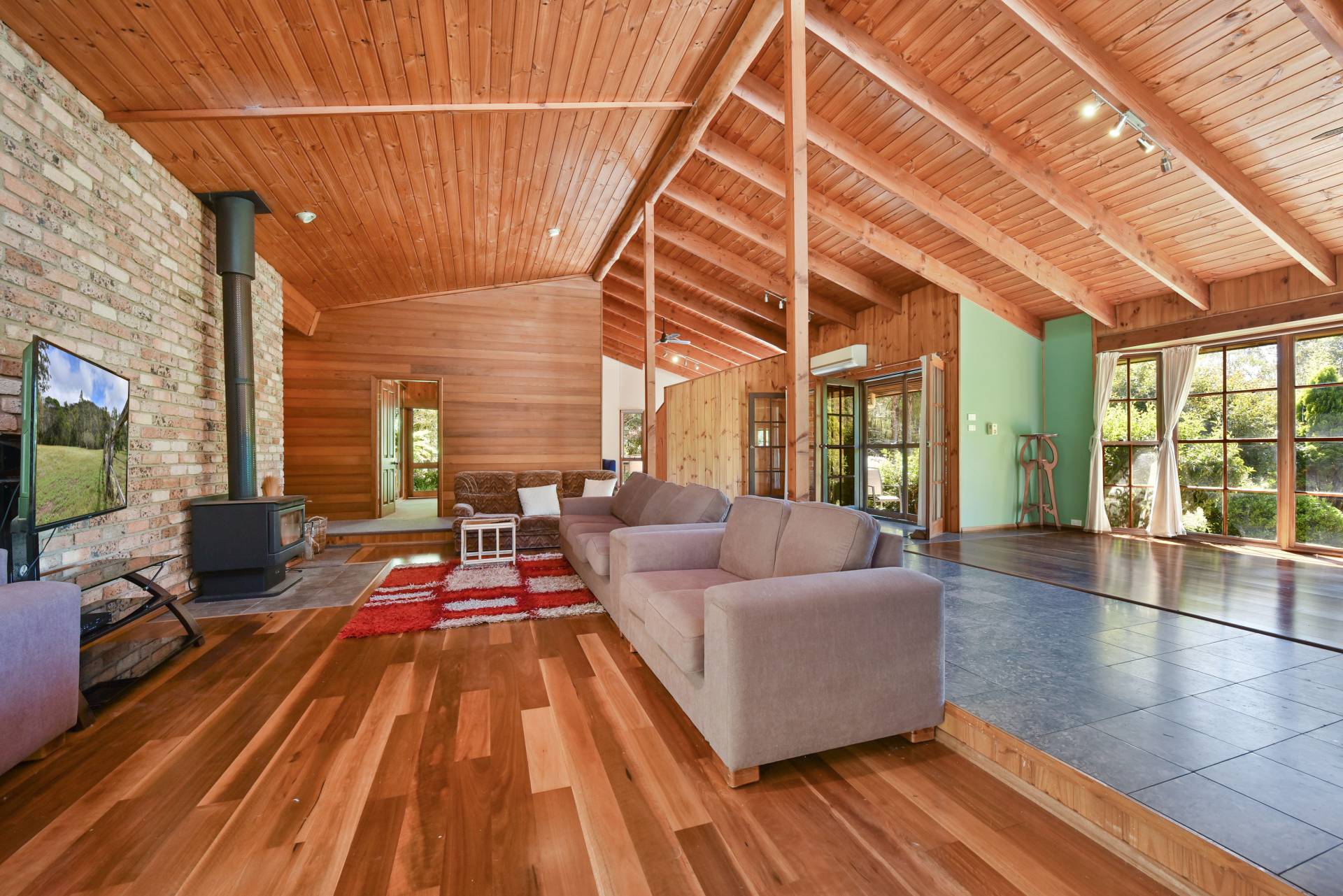 The quality custom built homestead has four generous size bedrooms with the master having a modern ensuite and walk-in-robe. The secondary bedrooms have built-in-robes and each is light filled with views over the gardens and bush surrounds. A large central living space with grand high ceilings is the heart of the home, a spacious open plan living area with a slow combustion fireplace, timber country kitchen & dining room. The kitchen features a gas cook top, dishwasher, electric oven and breakfast bar. A large undercover outdoor entertaining area adjoins a secondary living room and enjoys gorgeous views over the paddocks where you will often see wallabies, wombats and prolific bird life.