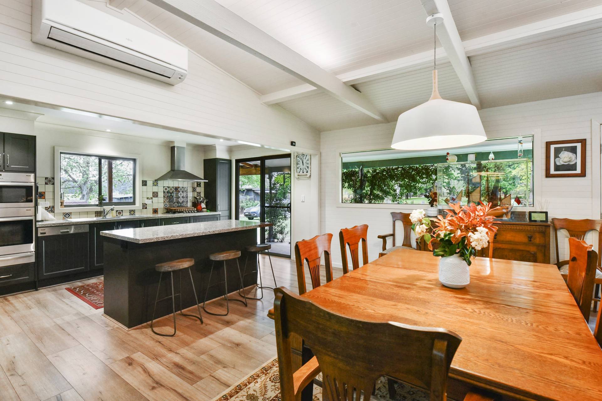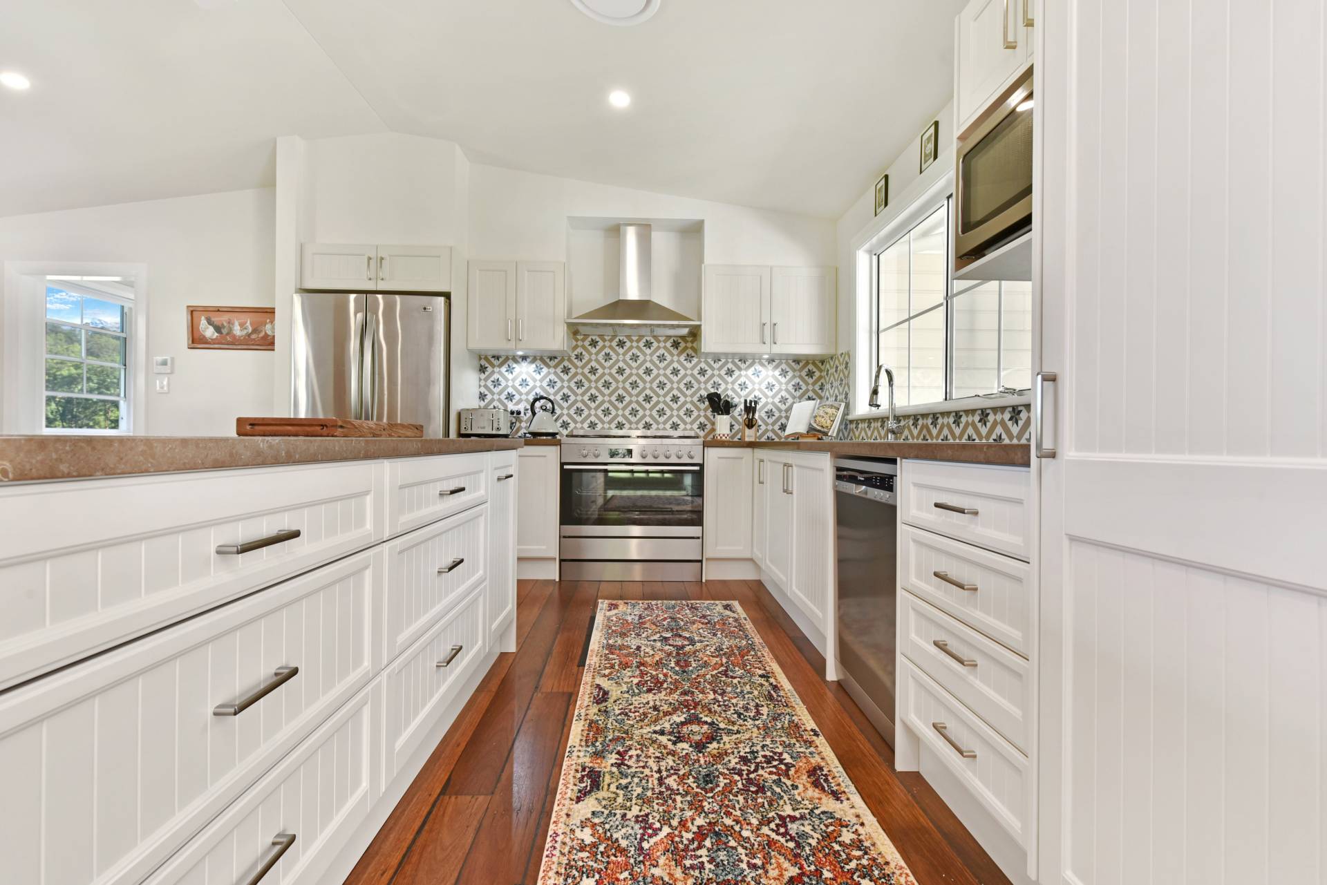 The 3-bedroom homestead comprises open plan living spaces, complimented by wax polished hardwood timber floors. Adjoining the lounge and dining areas is a stunning kitchen with Caesar stone bench tops, soft closing cupboards and draws, a freestanding gas/electric stove and dishwasher. The master bedroom has a gorgeous ensuite and all the bedrooms have built in robes, ceiling fans and there is ducted air conditioning to all. The main bathroom has been tastefully fitted out with a country elegance, a theme that resonates throughout the entire home. A large outdoor entertaining area takes full advantage of the superb rural views and delightful garden setting which includes 50 rose bushes, many varieties of established trees and shrubs. To top it off there is also a fully insulated wine cellar and dry store area located beneath the house.