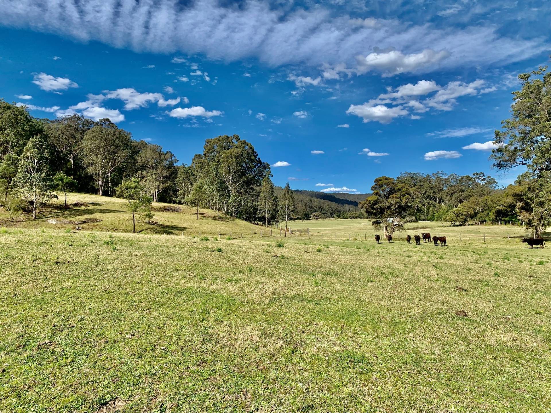 Externally the property provides self sufficiency in many ways! A generous undercover vegetable patch, a very large chicken run, mini orchards with stone fruit, citrus, apple and olive plantings. A three-bay shed with tack room is attached to the house paddock. There are functional cattle yards with loading a ramp and cattle crush, a single garage and carport in the house paddock and there is a bridge and weir over the creek. The property has approximately 20 to 30 arable hectares (65 -70 acres) and is suitable to run cattle, horses and livestock alike! The paddocks are simply stunning and there are many trails leading the way to the mountain top where there are extensive cleared paddock areas, boasting elevated views. Wind your way down into the next valley where you will be greeted by another valley floor of semi cleared areas fringed with natural Australiana bushland surrounds. Water supply is plentiful with a large semi inground water tank (approx. 80,000 – 100,000 litres) plus an additional 18,000 litre water tank, five dams, a water bore and an 11 meg water licence from the permanent creek.