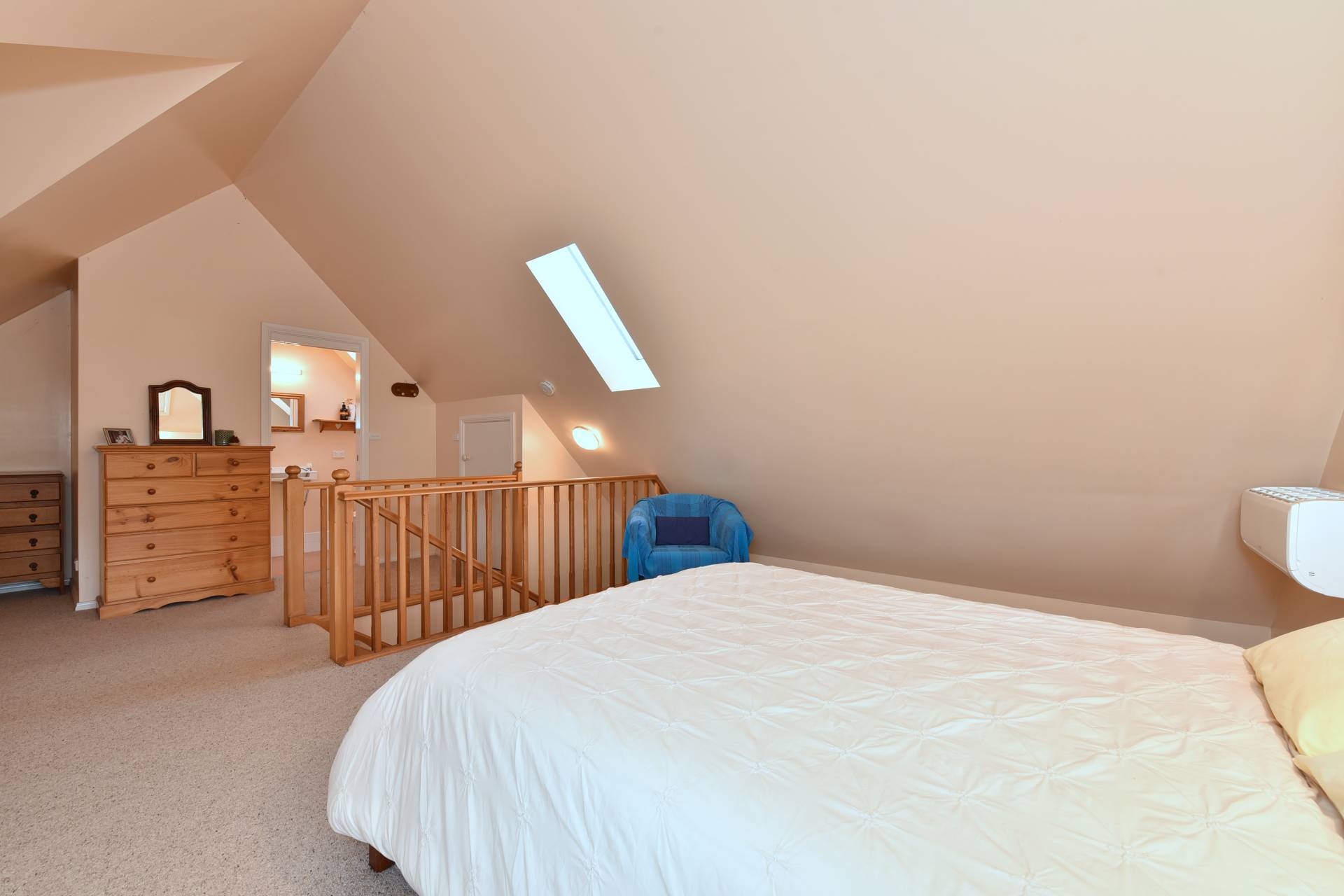 The homestead has a country log cabin façade with wide sweeping under cover verndahs that take in the picturesque paddock and garden surrounds. Step inside and explore the spacious floor plan, comprising a large open plan loungeroom living area with high gabled ceilings, a warming slow combustion fire place and beautiful timber French doors, opening out onto the verandah. A stairwell leads the way to a loft bedroom area, having dormer windows looking out over the manicured acres. The second bedroom offers an ensuite and comes complete with a split system reverse cycle air conditioning unit. The master bedroom, positioned privately upstairs is very spacious and also features an ensuite plus split system reverse cycle air conditioning and built-in cupboards for storage/robe needs.