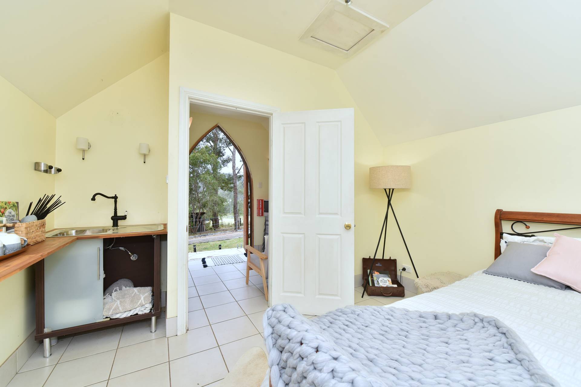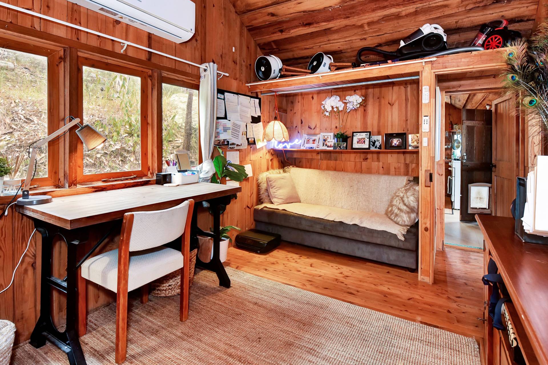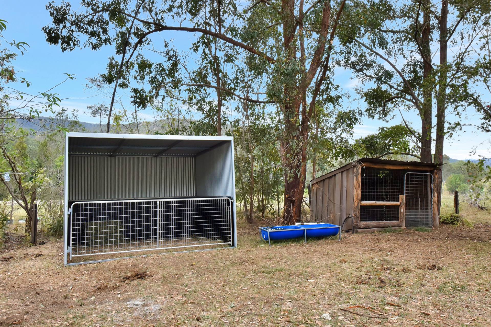 A feature dam is located in a valley situation and adjoins a magical Myrtle Forest, a great place to kick back and relax! The fenced paddocks could be ideal for Alpaca’s or smaller livestock farm animals. Several stables and out buildings are situated throughout the grounds. Meandering up the hill you make your way up to the retreat which has elevated views to the east and filtered views to the valley below.