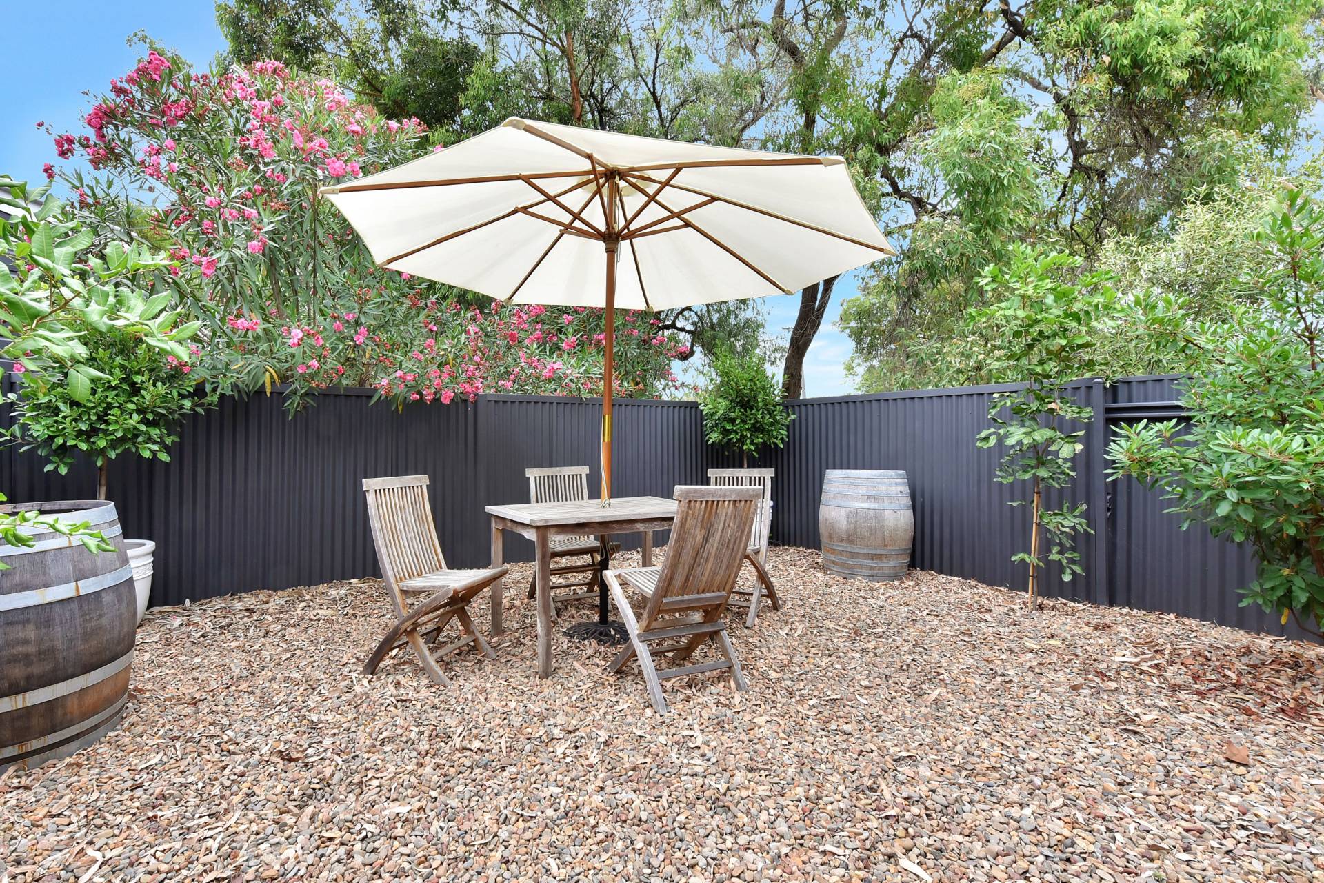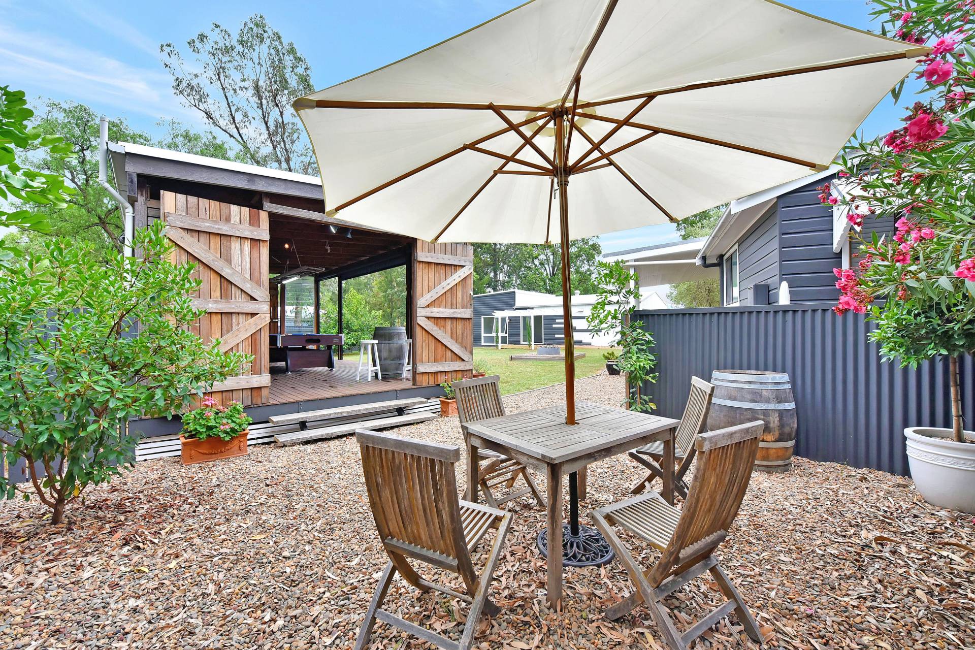 A colorbond double lock up garage will look after vehicles and equipment while there is also plenty of parking space within the fenced yard. A large separate 50m2 studio/teenagers retreat has its own bathroom and plenty of space for extra guests, a home office or kids hangout.