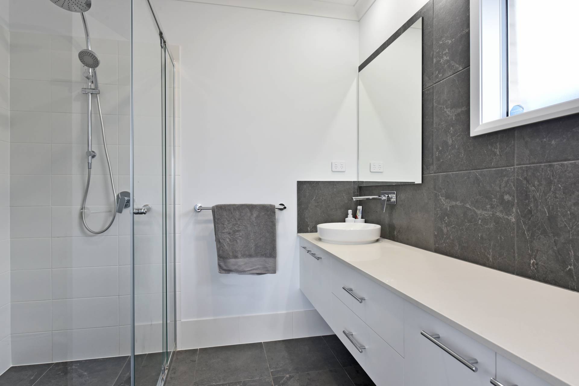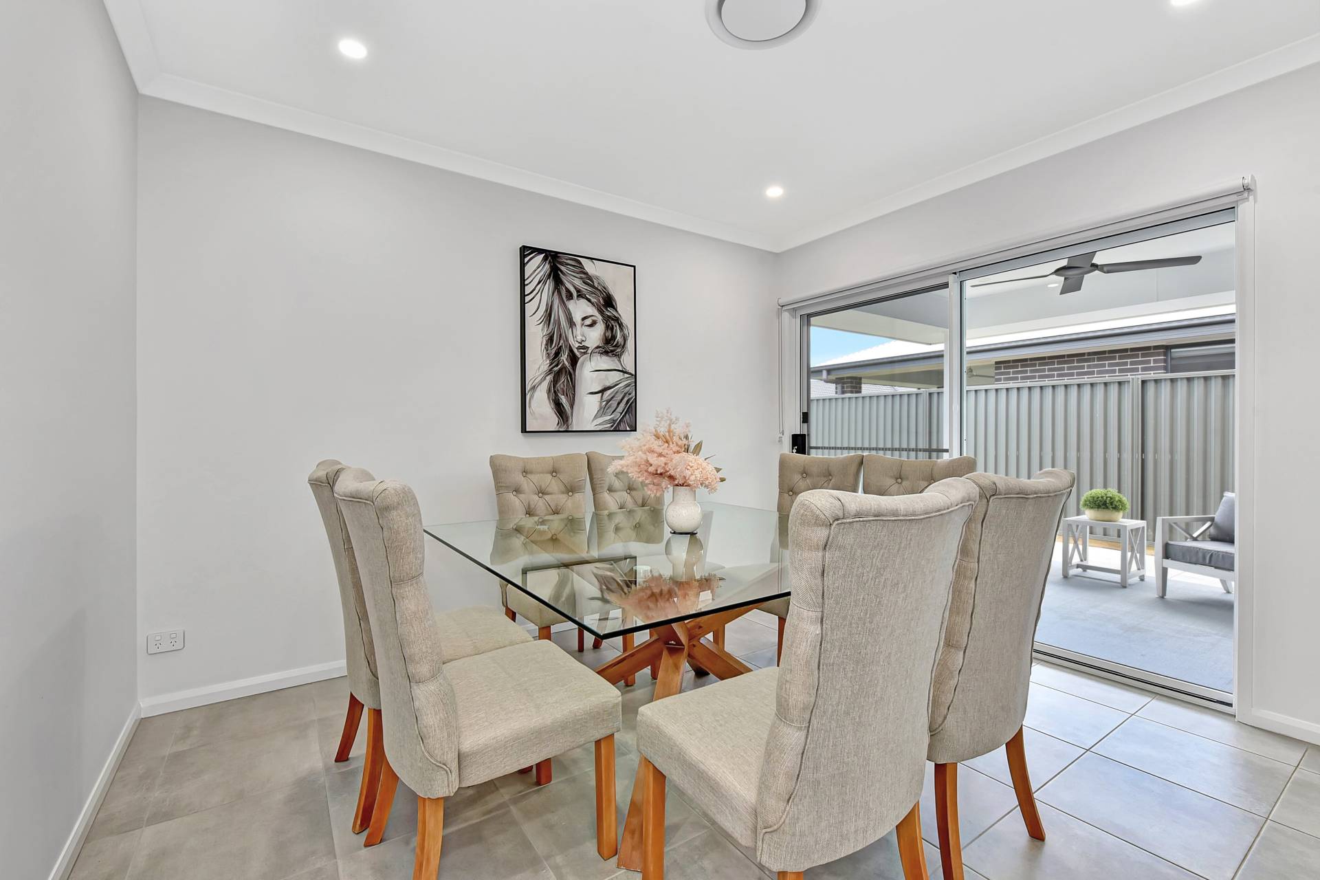 The home has been well designed with a light and open Hamptons feel. An attractive front façade features a combination of brick and paneling with a large double garage. Entering the home through an oversized front door and wide hallway you will appreciate the high 9ft ceilings, downlights and ducted air throughout.