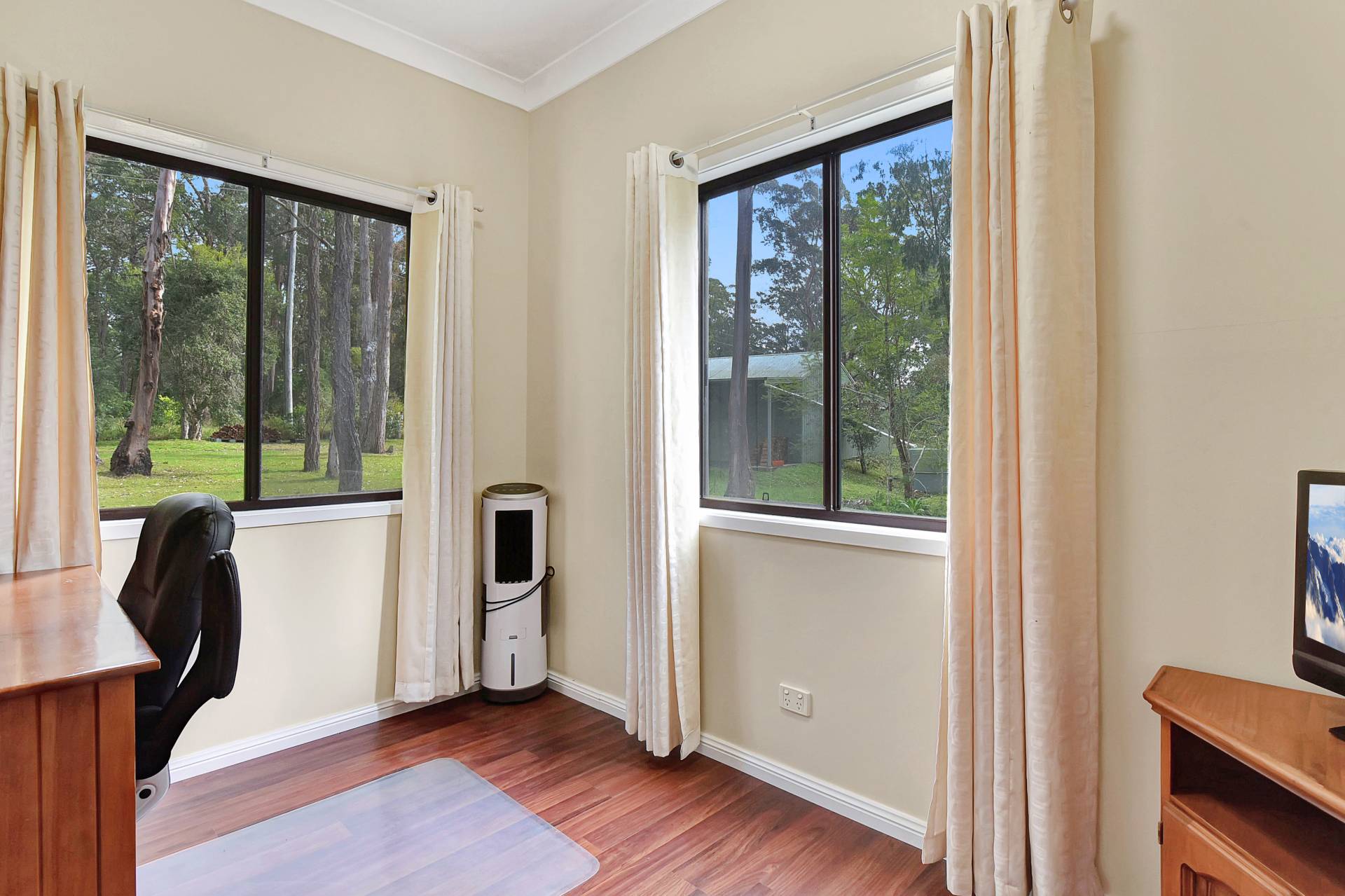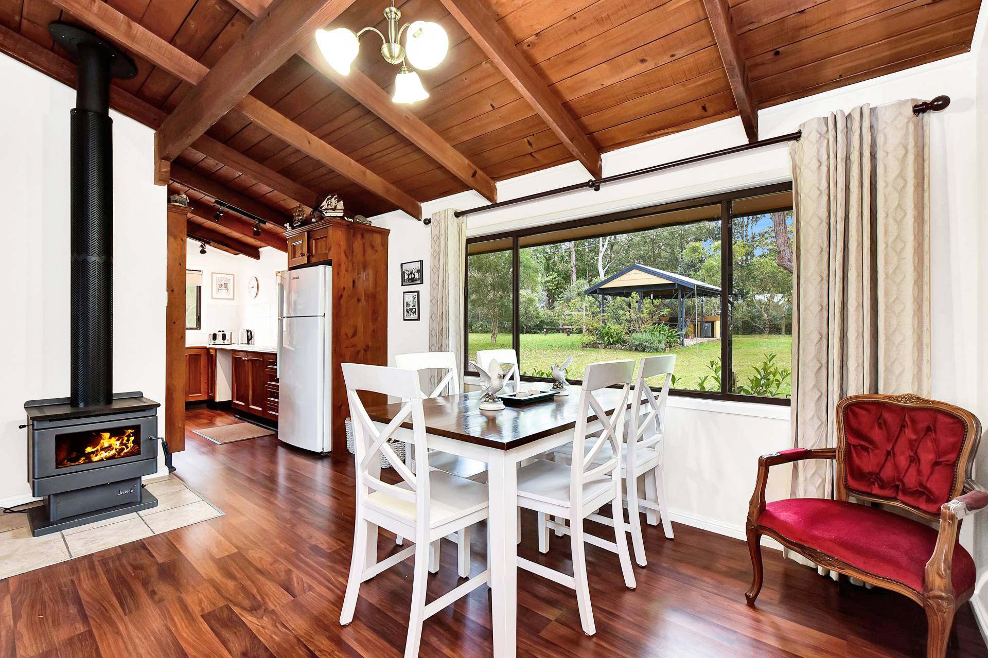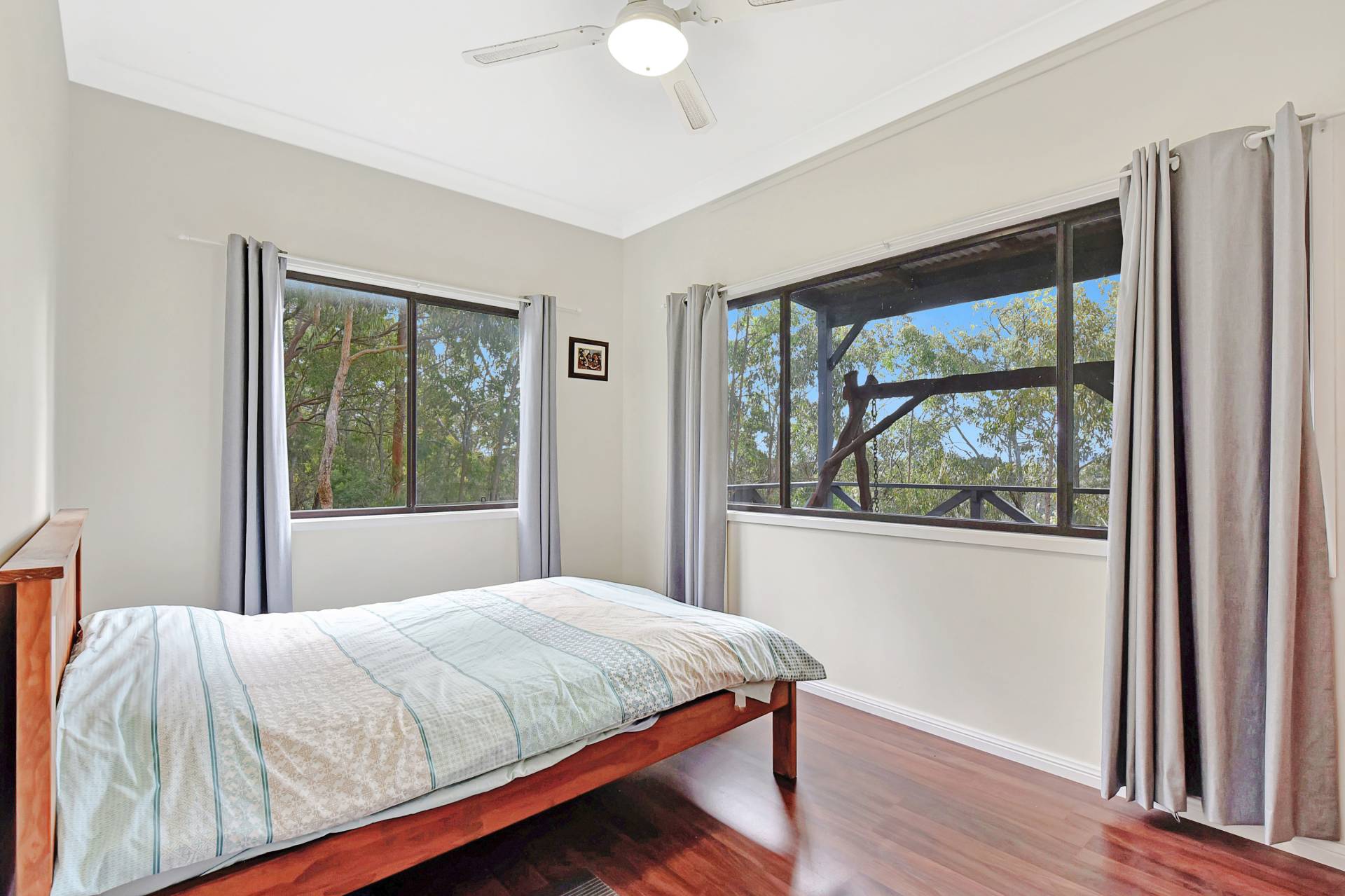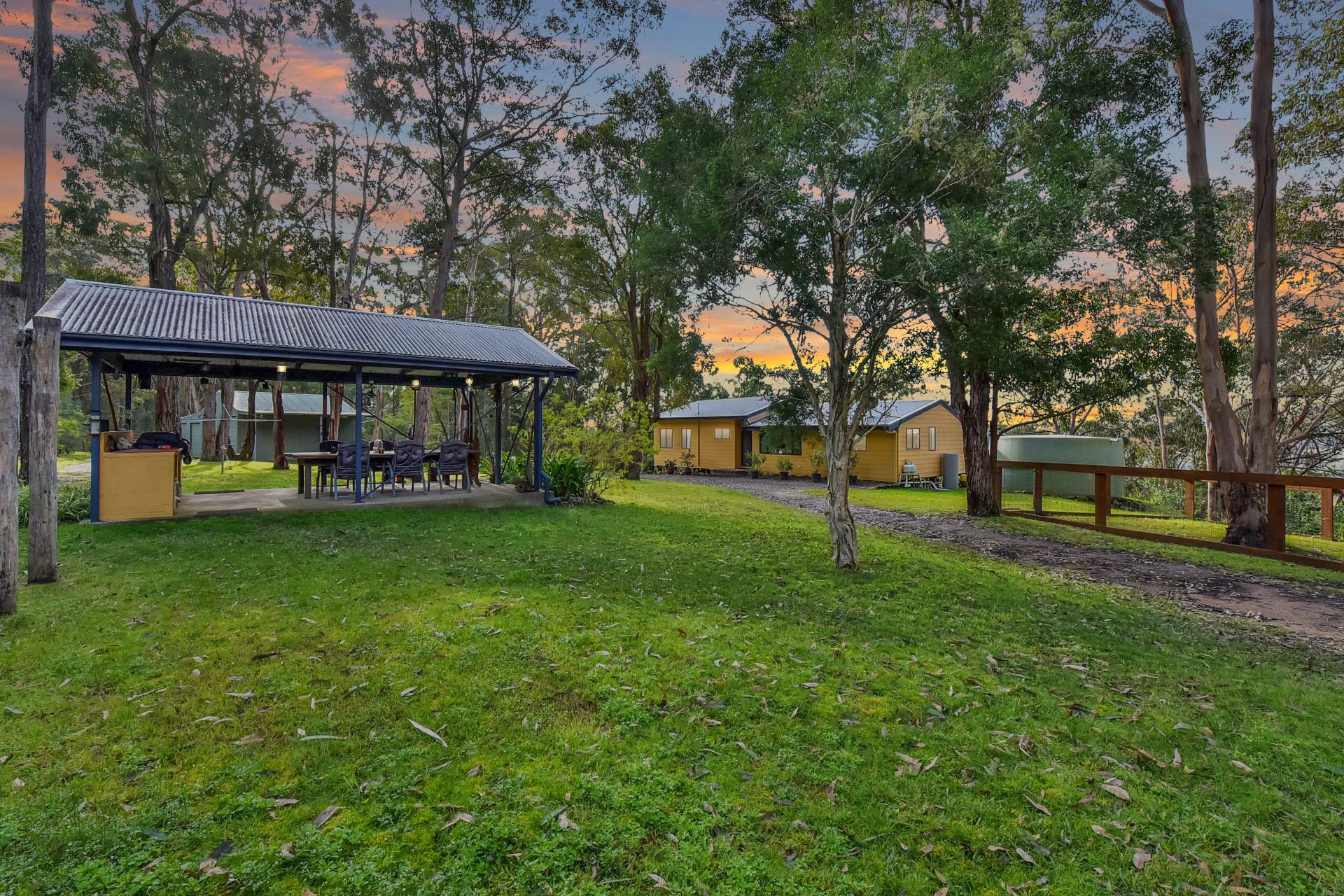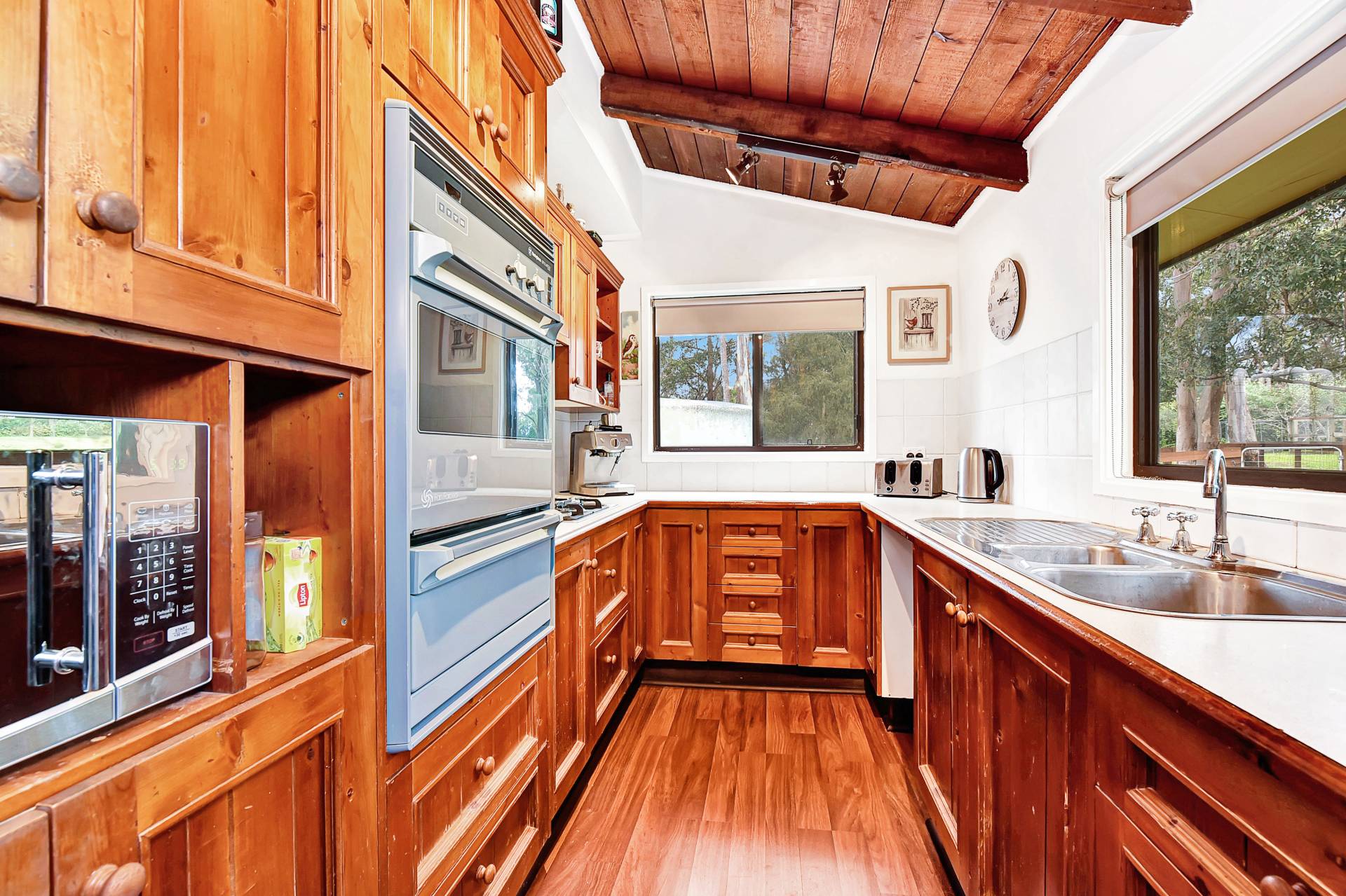 High raked timber ceilings compliment the fresh look timber floors. A cozy wood burner is featured in the living area and there are ceiling fans throughout the home. The home exudes a colonial country charm that fits in perfectly to this Australiana bush community. The grounds are very usable with a good few acres of flat level ground. There are trails leading throughout the property with bushwalking an absolute must, discovering this stunning bushland oasis all the way down to the valley floor. Two dams feed the property with an outdoor water supply and there is ample domestic water storage with various water storage tanks. A large 4 bay lockable farm shed with attached carport provides the perfect work shop & equipment storage needs plus providing garaging for your cars.