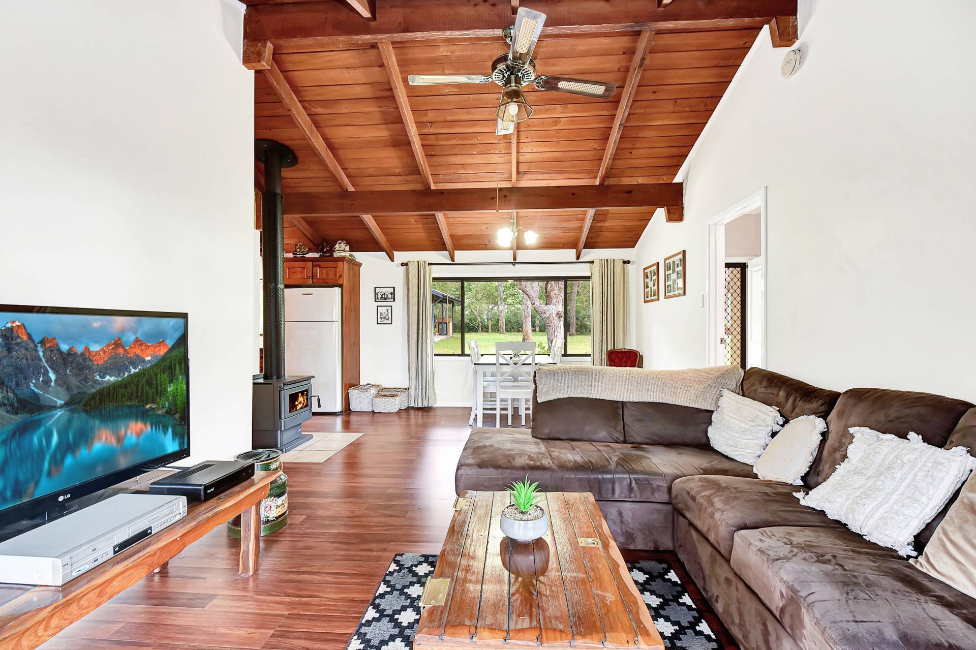 Nestled on the side of a scenic mountain with elevated views above a picturesque valley, this 4-bedroom homestead has all the makings of the perfect country retreat or permanent rural lifestyle property! The 4-bedroom home comprises a central living & dining area adjoining a galley style country kitchen which looks over the grassy grounds surrounding. An extensive deck stretches along the length of the home and enjoys the beautiful bushland surrounds and gorgeous sunlit north easterly aspect where Koala’s are known to hang out. The natural environment that streams through the windows could only be described as 'Bushland Dreaming'.