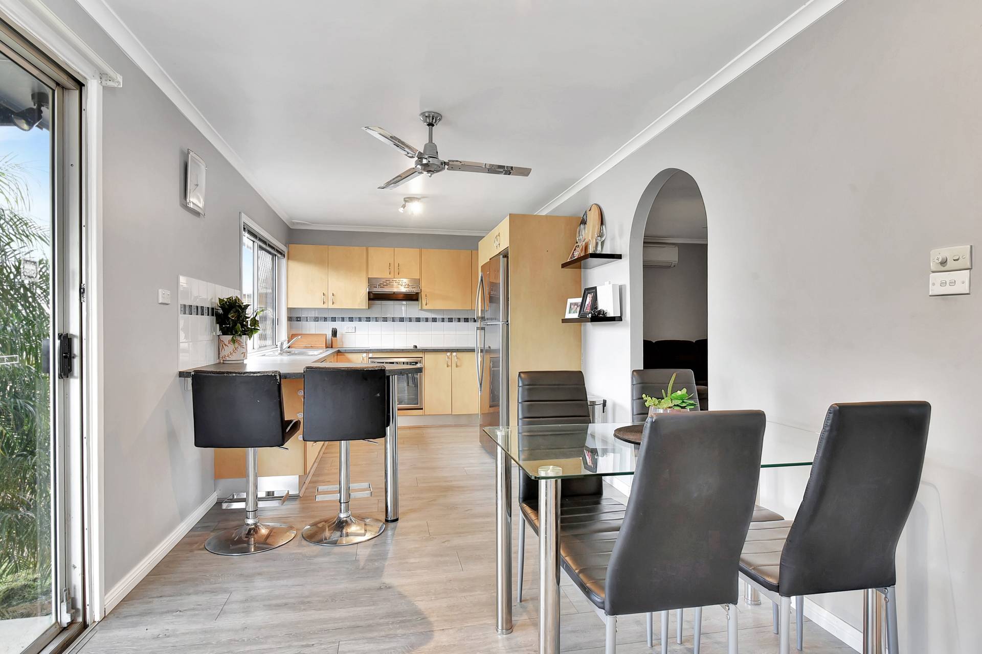 The home comprises a modern designed floor plan with a loungeroom living area, separate dining room, fully equipped modern kitchen with breakfast bar, dishwasher and electric stove. An internal laundry has direct access outside and a three-way bathroom with double vanity is centrally located to the bedrooms. A linen press is located in the hallway for your storage needs and two of the three bedrooms have built in robes.