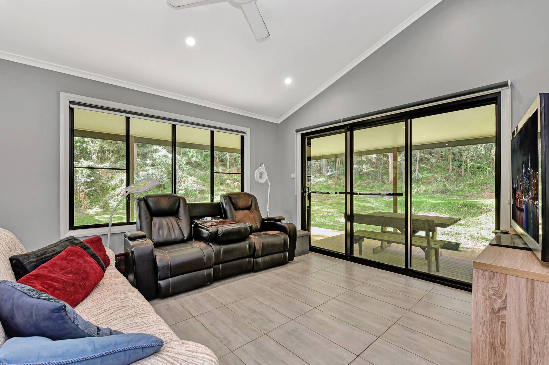 The master bedroom includes a large walk-in-robe and ensuite while the  two secondary bedrooms have built-in-robes and each enjoy nice views looking onto the bush land surrounds. The main bathroom includes a bath and separate shower while an internal laundry has built in benches and direct access outside.