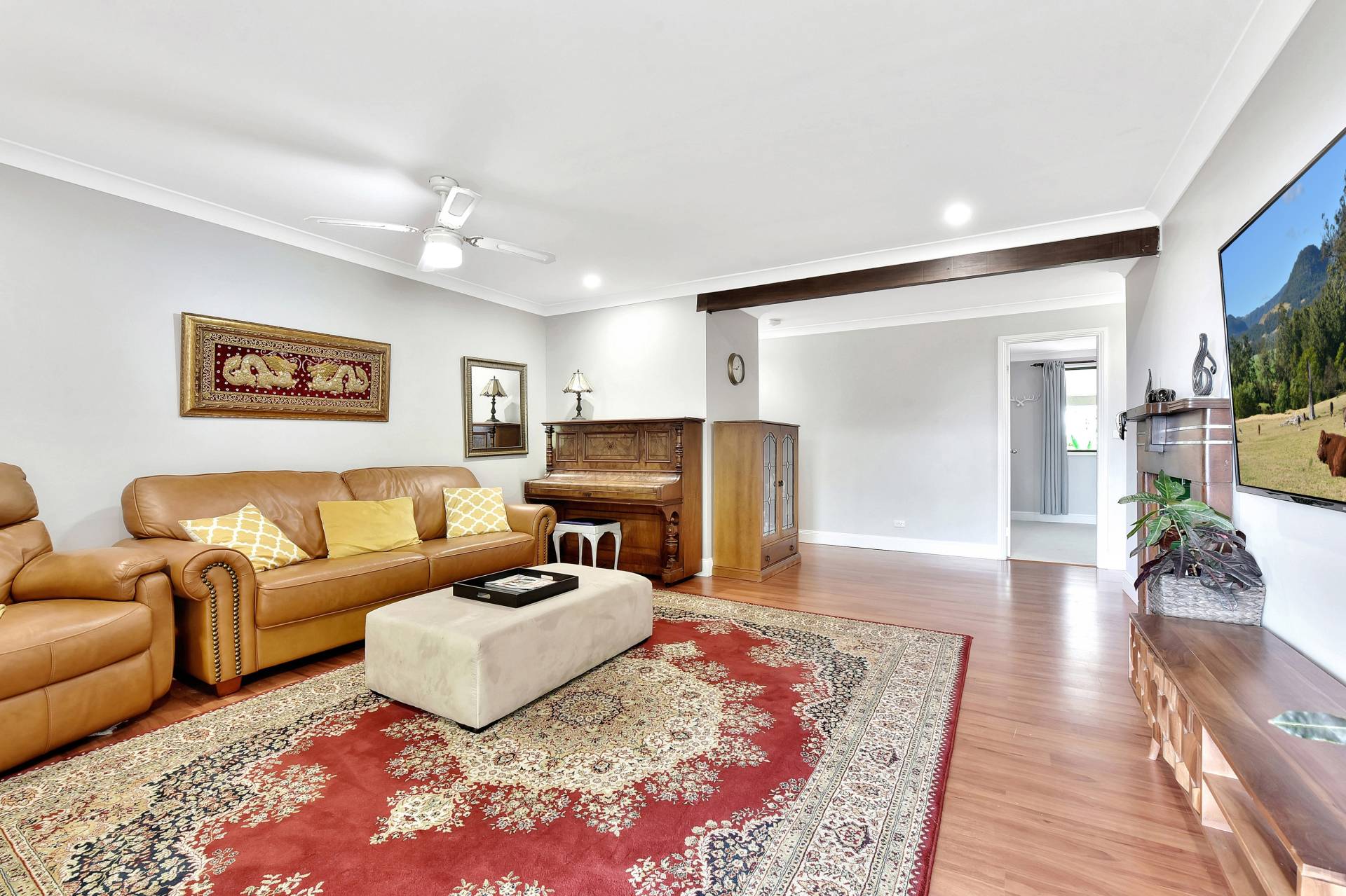 Freshly renovated, the quality brick home features a brand-new gourmet kitchen with caser stone bench tops, an island bench, walk-in pantry and stainless-steel appliances including a dishwasher and 900mm oven with gas cooktop. Adjoining the kitchen is an open plan family/living room and dining area. A central hallway leads to the 5 bedrooms, main bathroom, internal laundry and main living room. The living room incorporates a slow-combustion fireplace and opens onto a huge undercover alfresco where you will appreciate the stunning views while entertaining or enjoying Summer BBQ’s.