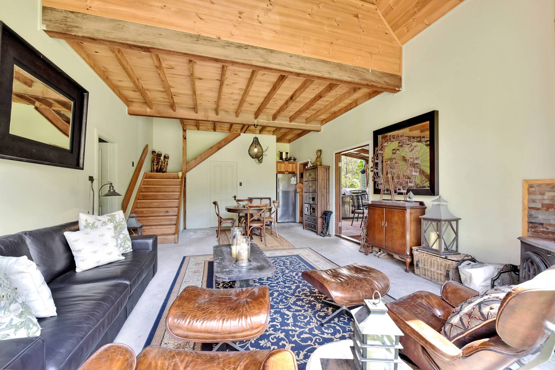 The barn style building consists of an open plan space with a high gabled roof line. Amazing double timber doors open outwards, allowing the picturesque surrounds to come inside & allow you to breath in the fresh air. There is a separate downstairs room with a built-in cupboard space and a spacious upstairs mezzanine level to cater for all your weekender needs! A wet room facility with a shower & sink plus an external storage room with a toilet & additional sink add to the many weekender features.