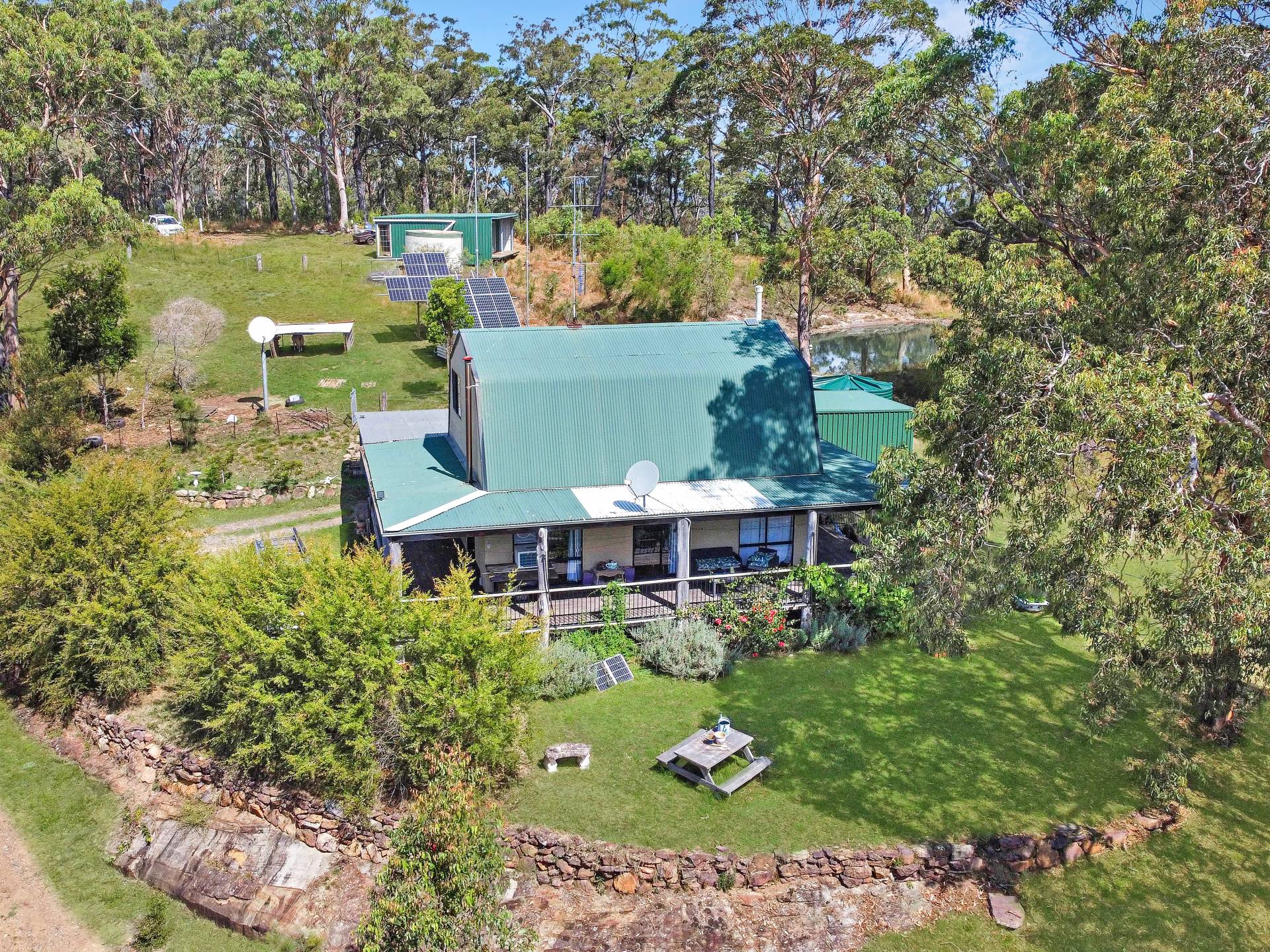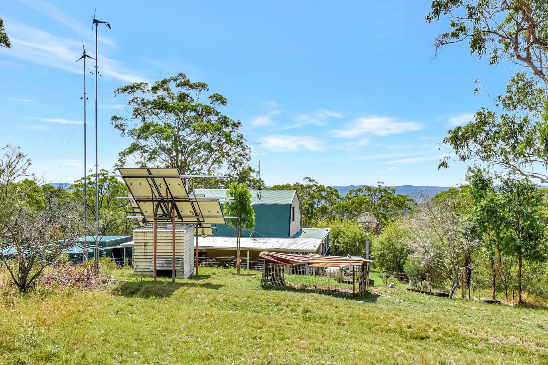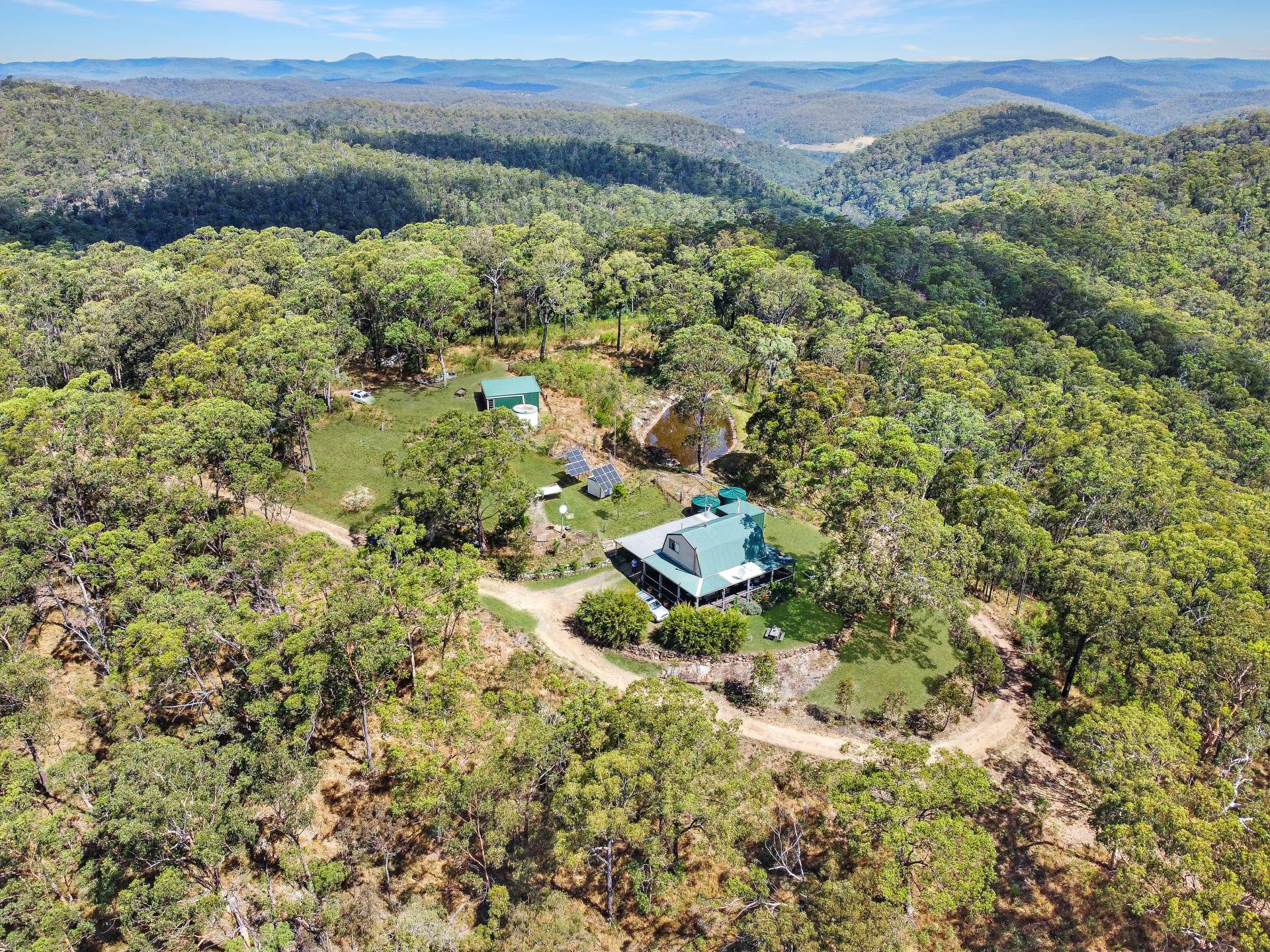 The two-Storey retreat is nicely positioned on a north facing mountain top with elevated views over the bush land surrounds. Completely off the grid, the home runs on a 5kw solar system with 22kw of battery storage, tank water and bottled gas for cooking and hot water. The lower level comprises a timber country style kitchen, living and dining room with a slow-combustion fireplace and combined bathroom & laundry. Upstairs two large bedrooms and a study take advantage of the peaceful bushland views. Undercover wrap around verandahs encompasses the home, perfect for year-round enjoyment.