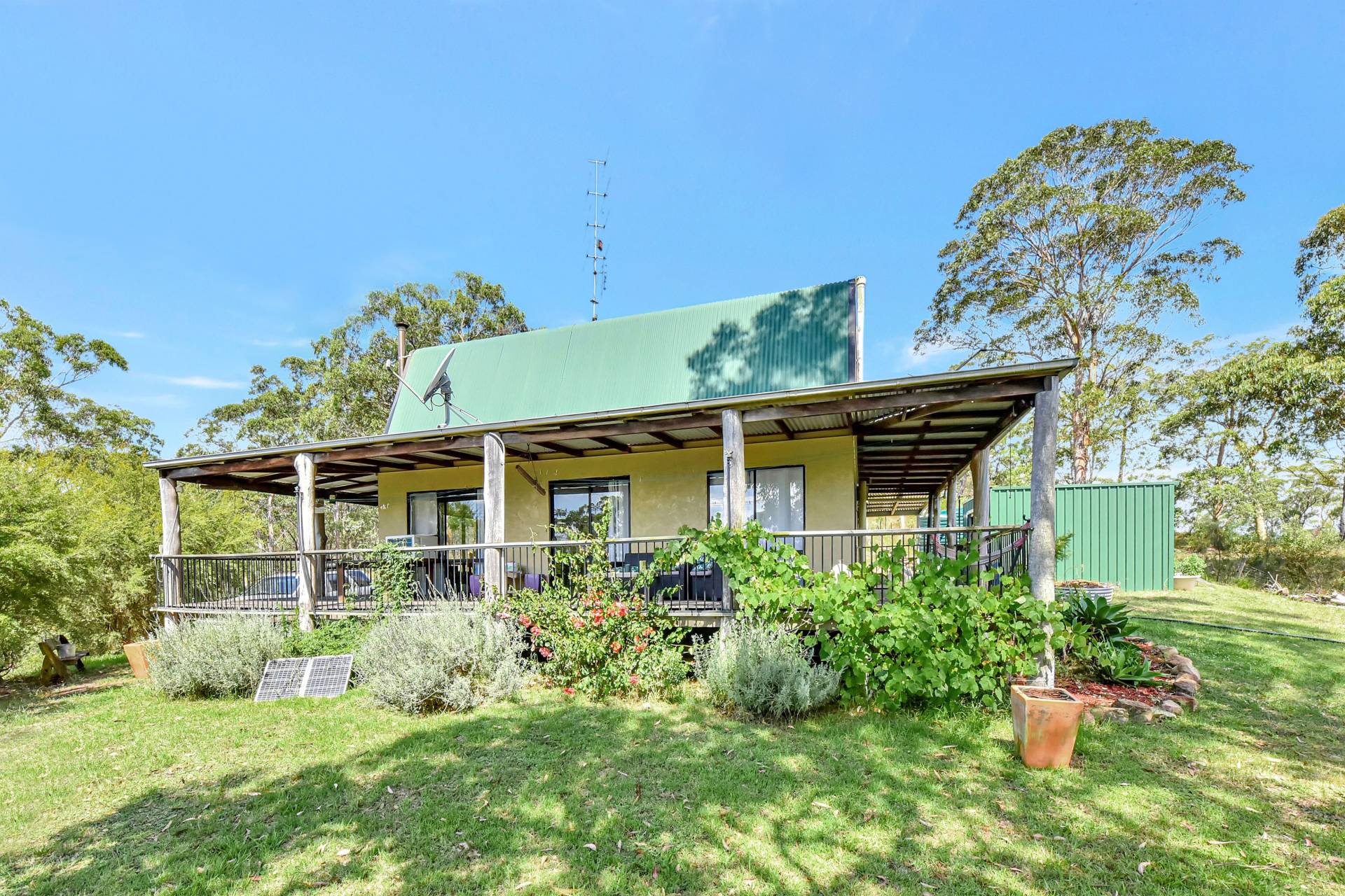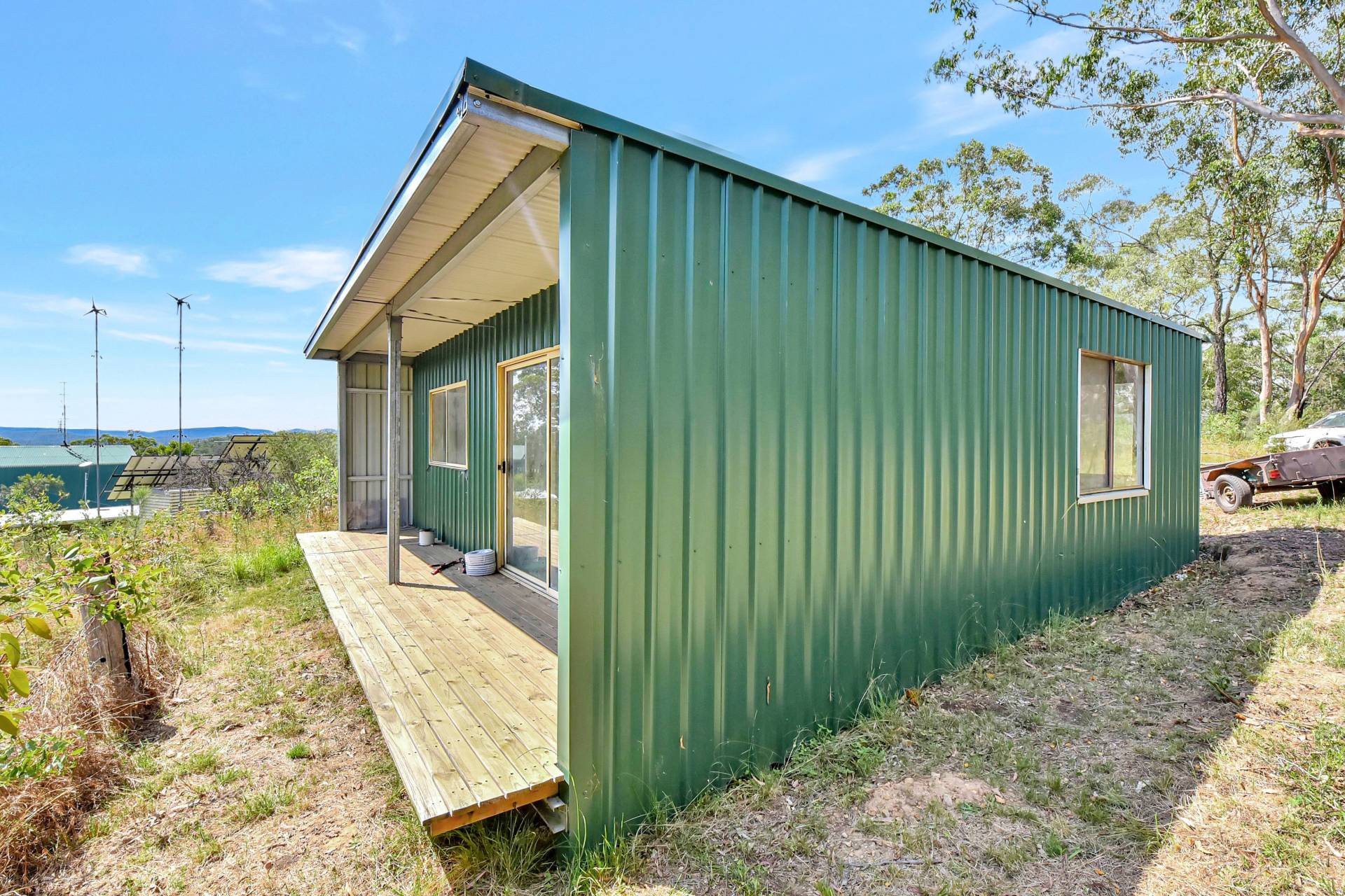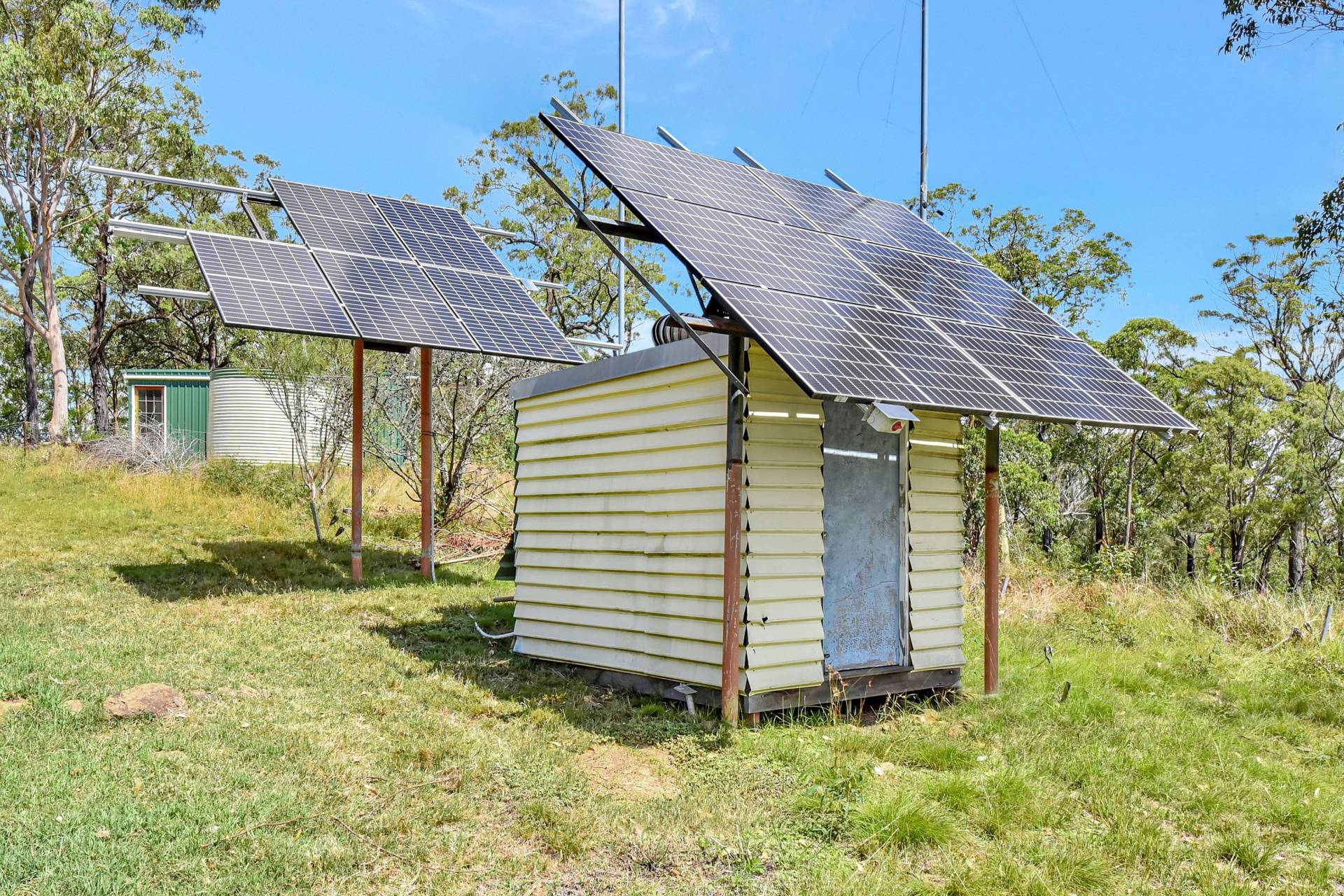 The two-Storey retreat is nicely positioned on a north facing mountain top with elevated views over the bush land surrounds. Completely off the grid, the home runs on a 5kw solar system with 22kw of battery storage, tank water and bottled gas for cooking and hot water. The lower level comprises a timber country style kitchen, living and dining room with a slow-combustion fireplace and combined bathroom & laundry. Upstairs two large bedrooms and a study take advantage of the peaceful bushland views. Undercover wrap around verandahs encompasses the home, perfect for year-round enjoyment.