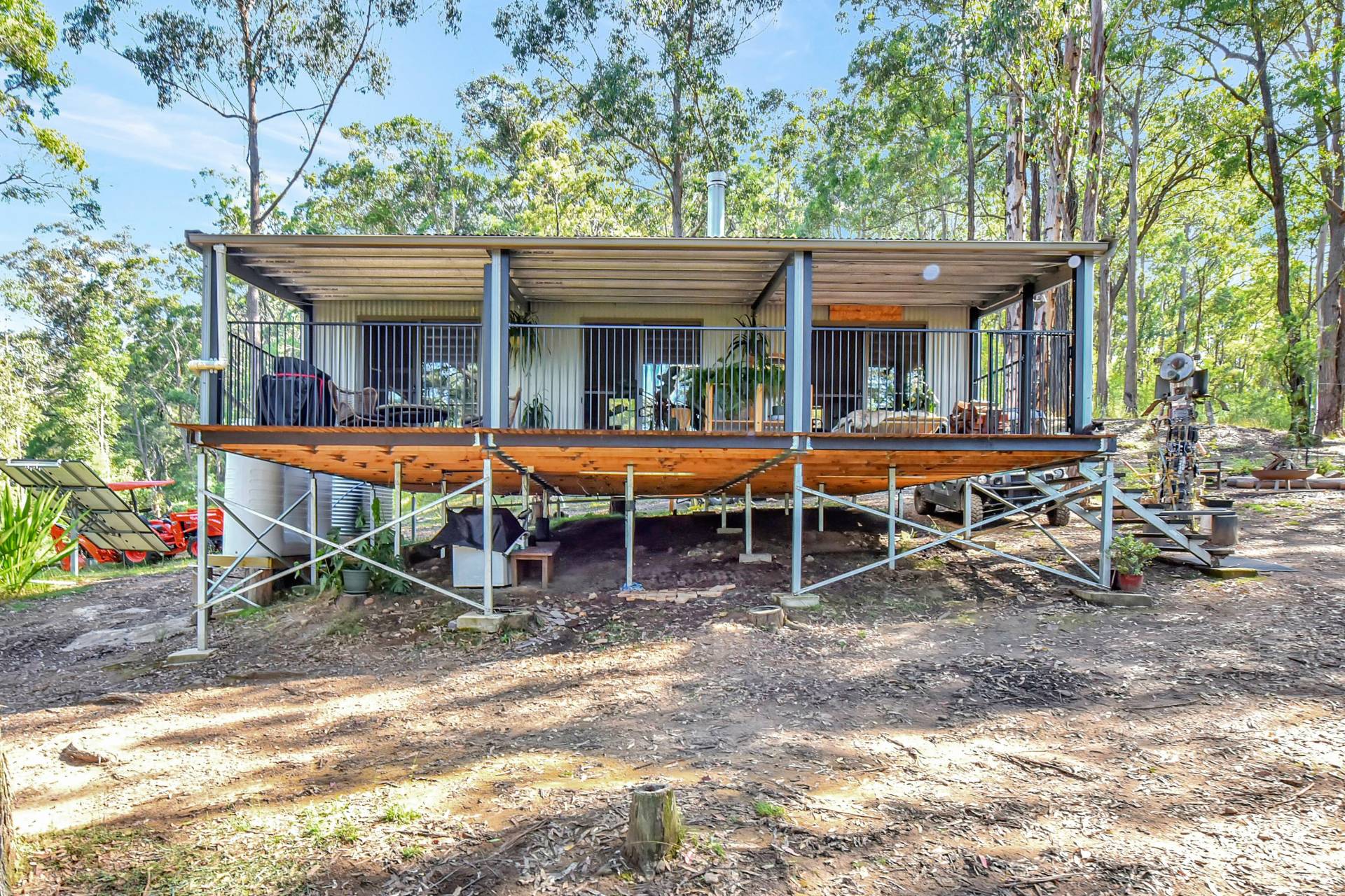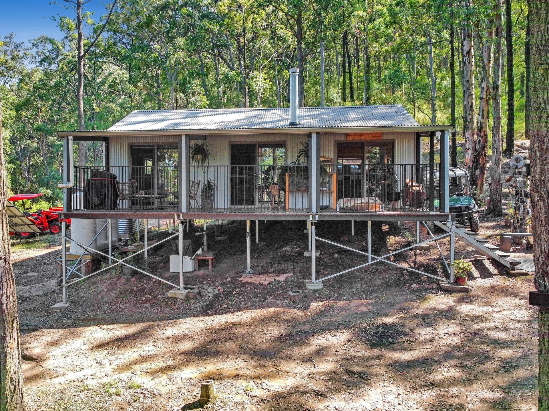A quality solar system has been newly connected which runs 240v normal electric appliances with the ability to use a backup generator when needed. Starlink satellite internet is connected and works well for anyone working from home, streaming and using wifi calling with ease. Multiple water tanks totalling around 25,000L supply plenty of rainwater to the buildings while a decent size dam is positioned high above the buildings and can gravity feed down for gardens.