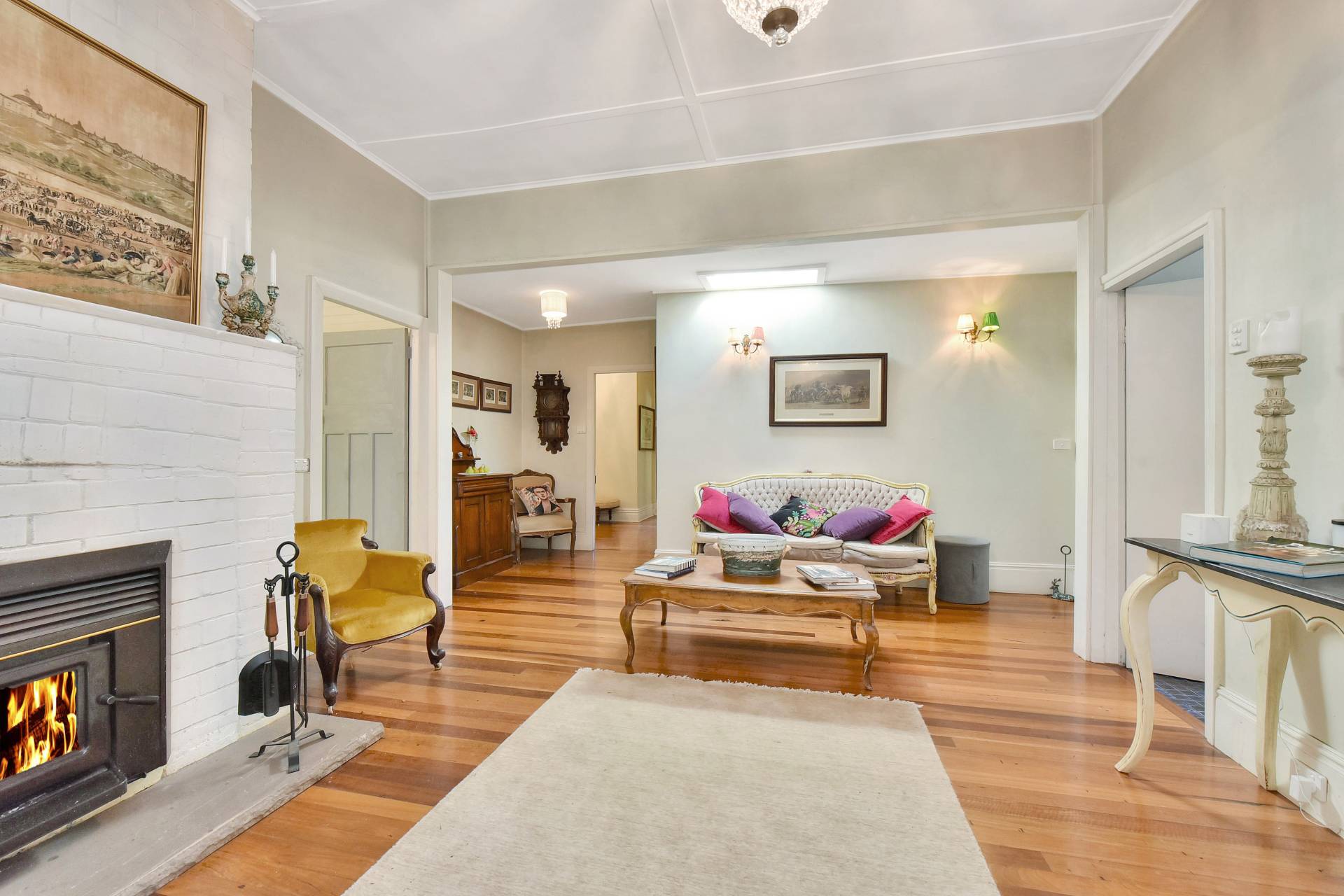 Full of character throughout, a traditional kitchen with marble bench tops has been fitted out with quality appliances including an Ilve gas/electric stove, dishwasher and a large walk-in pantry, adjoining a garden setting dining room with light filled windows, having direct access onto the verandah. A spacious loungeroom, featuring a built-in slow combustion fire in the original fireplace has access to the northern side of the house. A central hall leads to the three generous sized bedrooms. Two of the bedrooms have ensuite bathroom facilities and there is a bathroom combined laundry room located off the loungeroom which has direct access to outside, handy to the pool area.