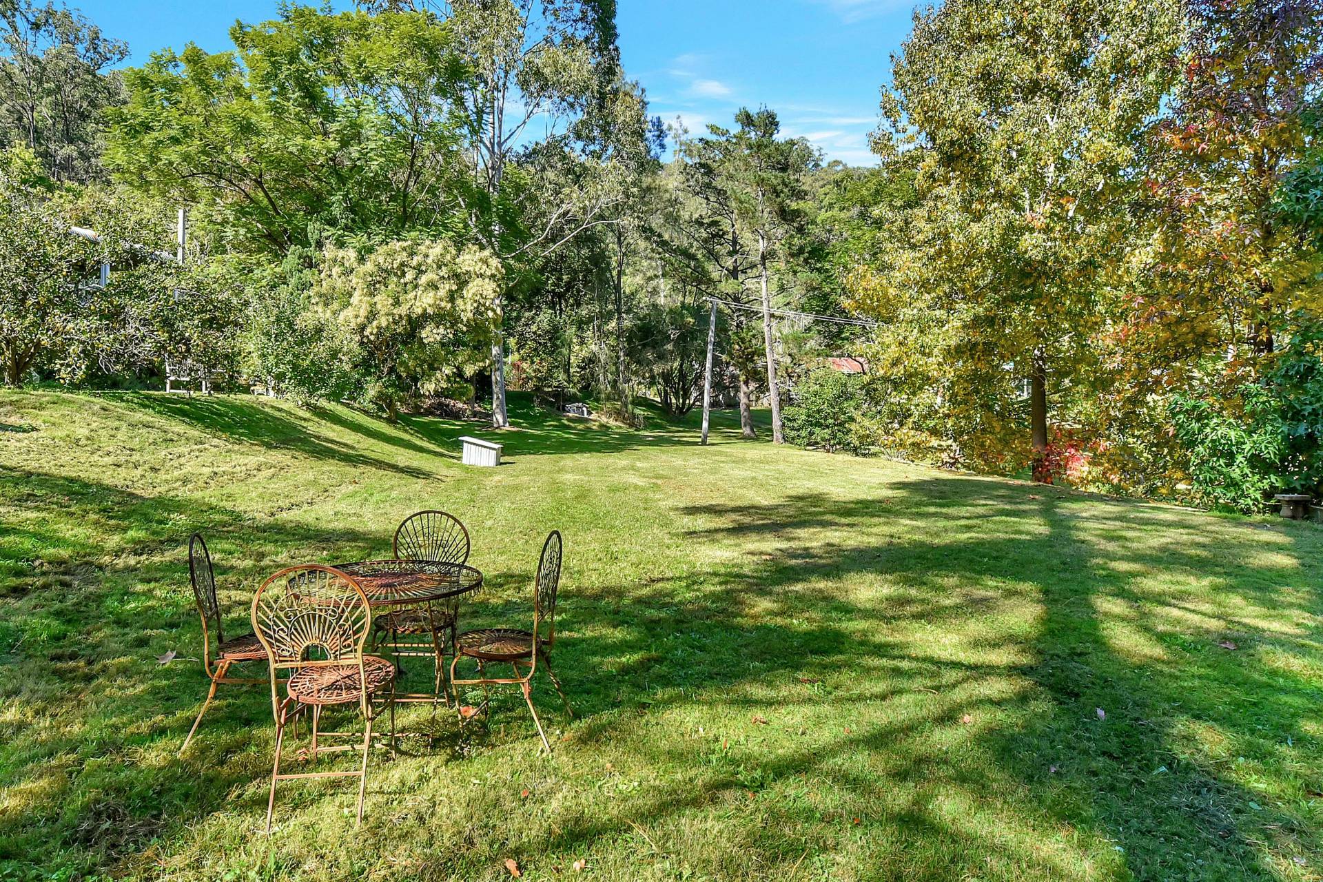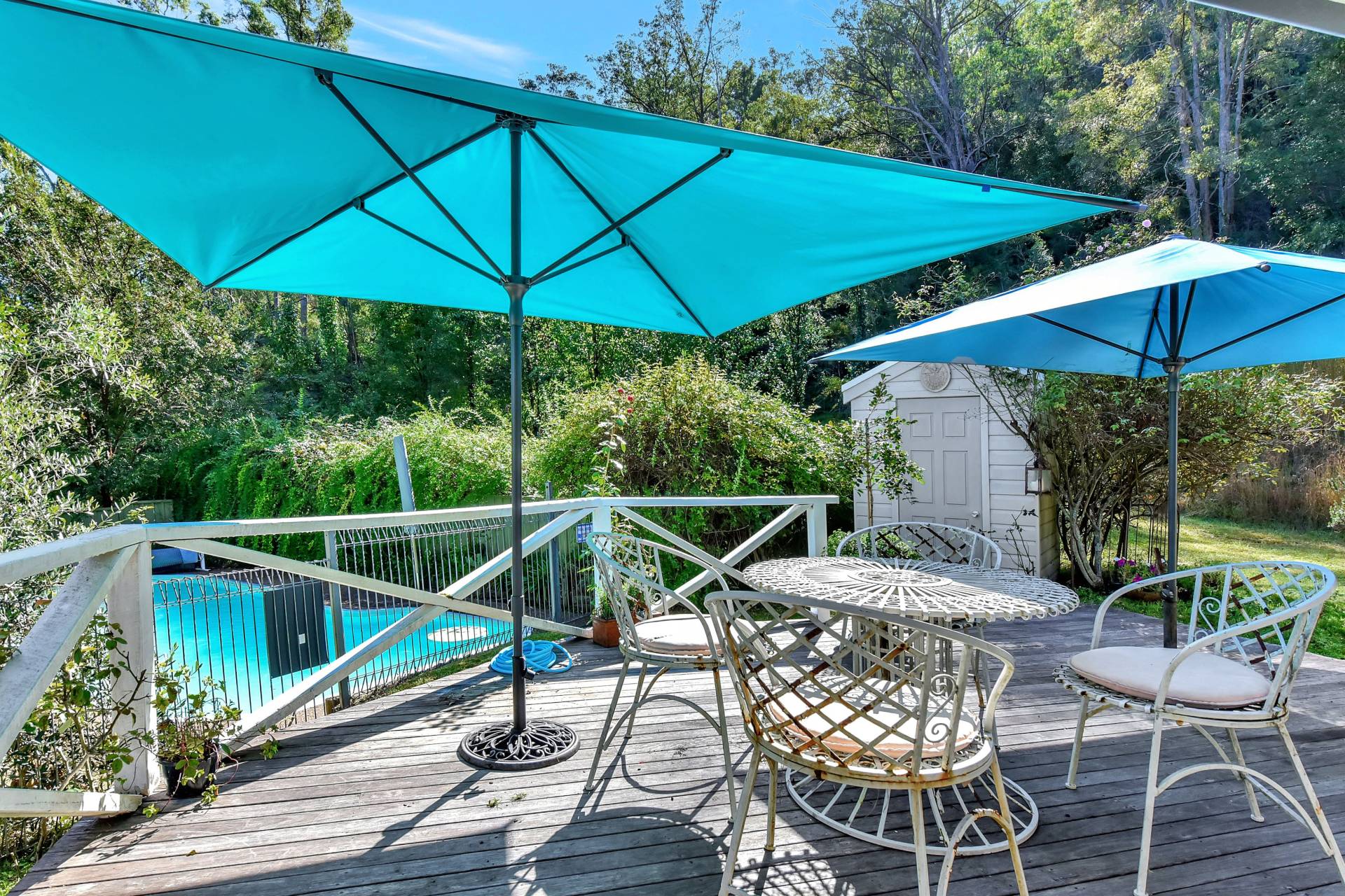 A north facing deck looks over an inground swimming pool, privately landscaped into the gardens.