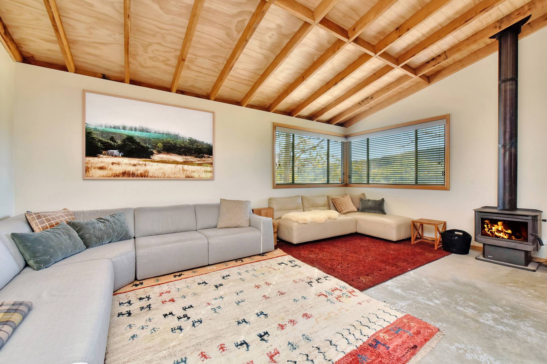 A stylish barn shed is perched perfectly on the knoll of a hill with a stunning North aspect taking advantage of gorgeous mountain views encompassing the property. Internally the shed is light and cosy with a slow combustion fireplace and timber features. A modern kitchenette and brand-new bathroom with heated flooring & rain head shower will provide a luxurious and comfortable space to spend your weekends. A spacious upstairs loft room has reverse cycle air-conditioning and an outdoor balcony to enjoy the view, the perfect place to watch the sunset over the mountains with a glass of wine in hand.