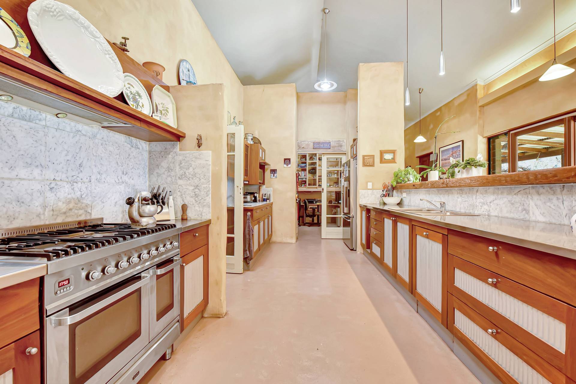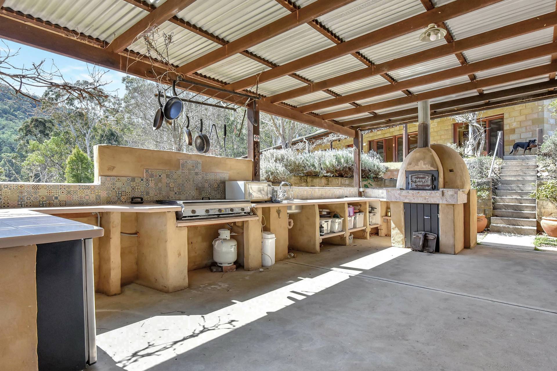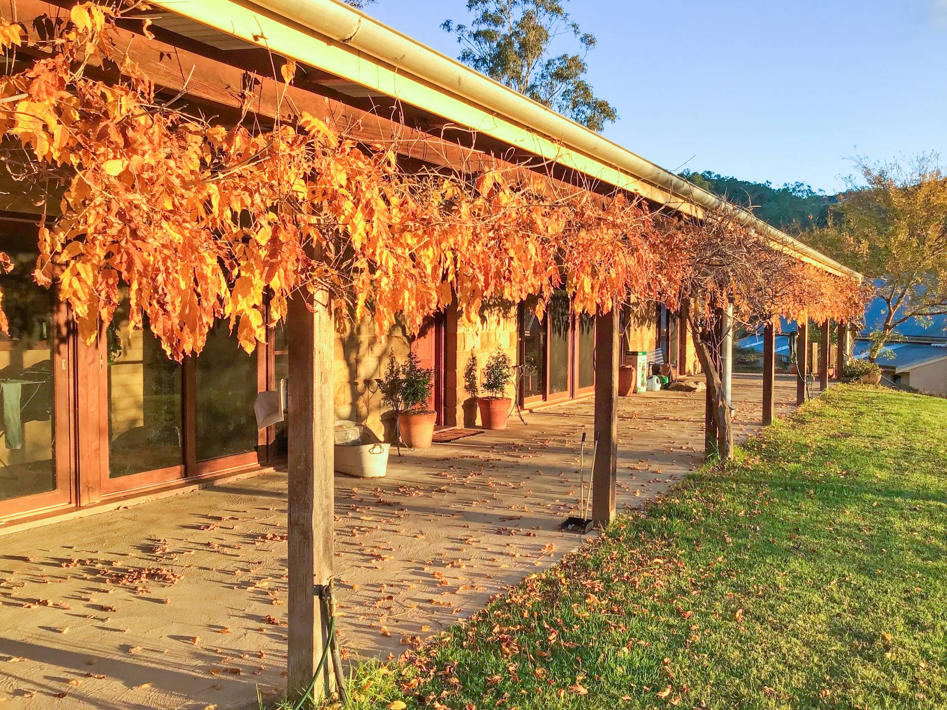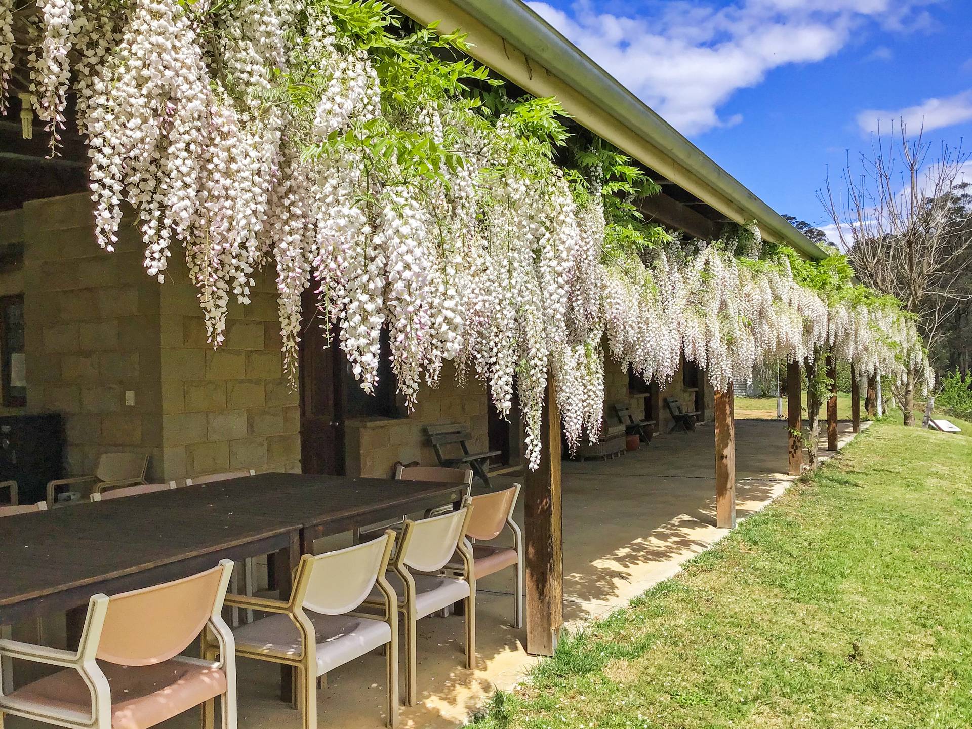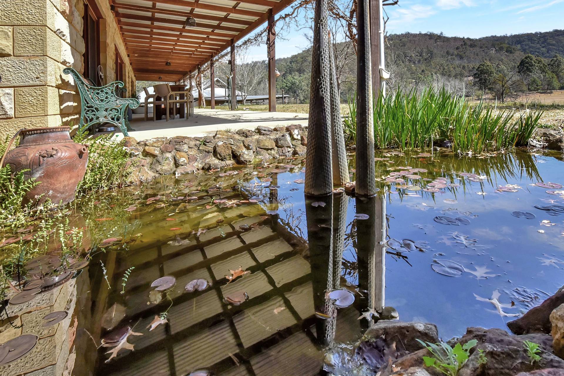 Uniquely designed, the property consists of a main homestead and separate guest pavilion nearby. Extra wide undercover verandahs are a highlight of both buildings providing ample space to entertain all year round and enjoy the stunning view with aromatic wisteria vines lining the eaves to provide shade in Summer and plenty of sun in Winter.