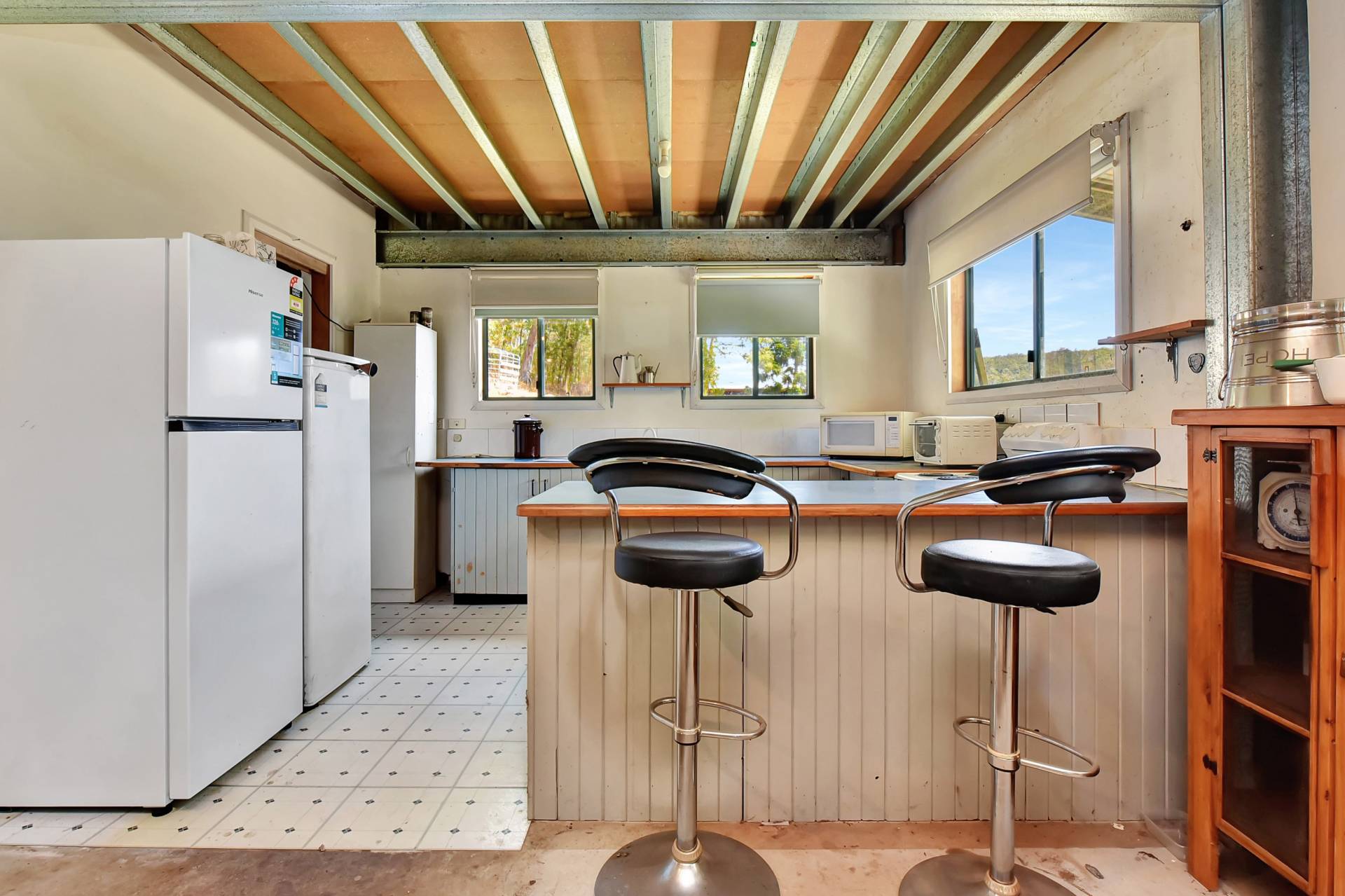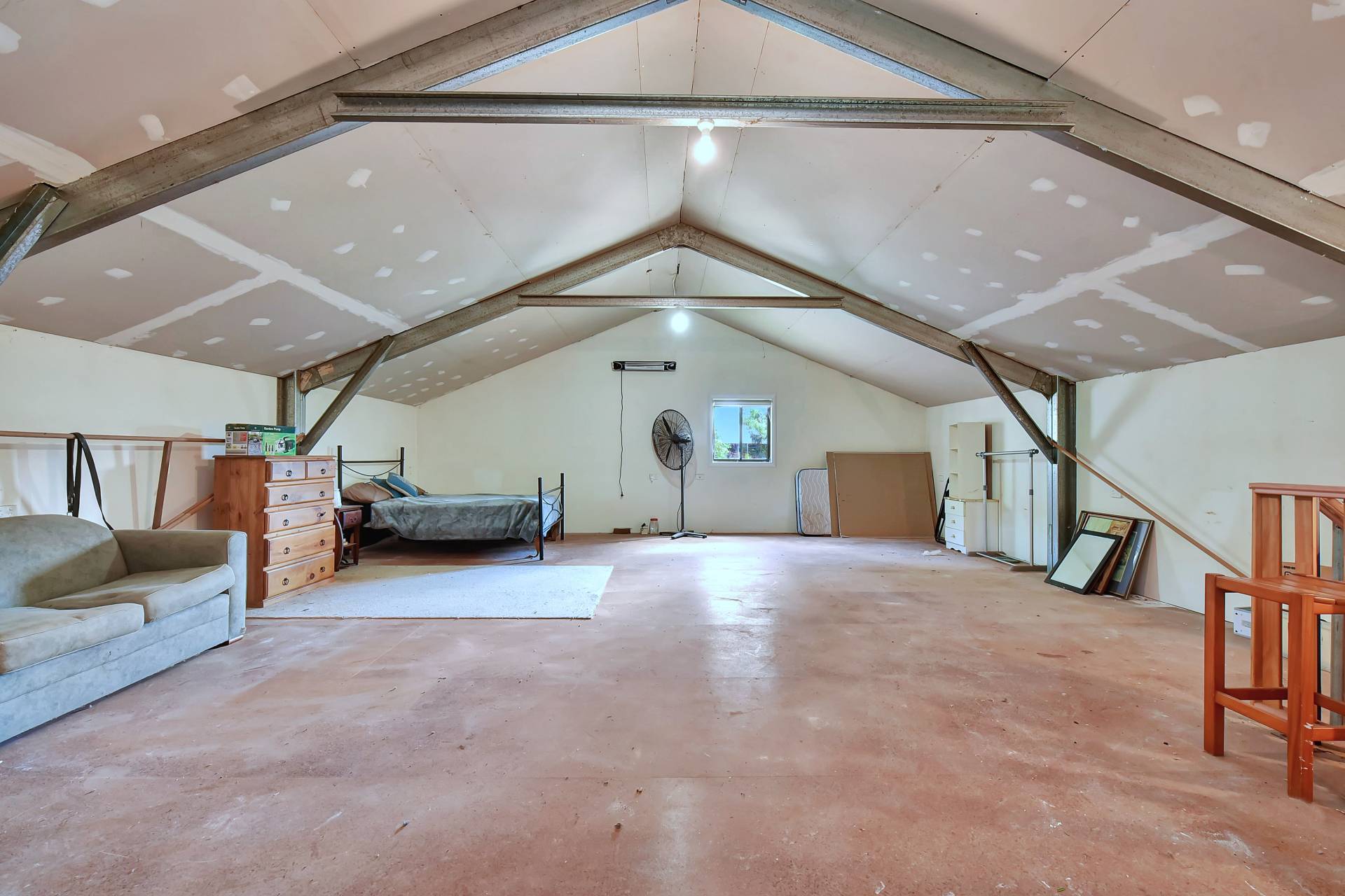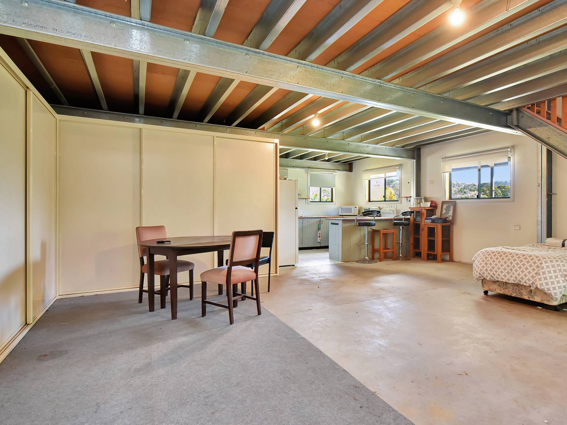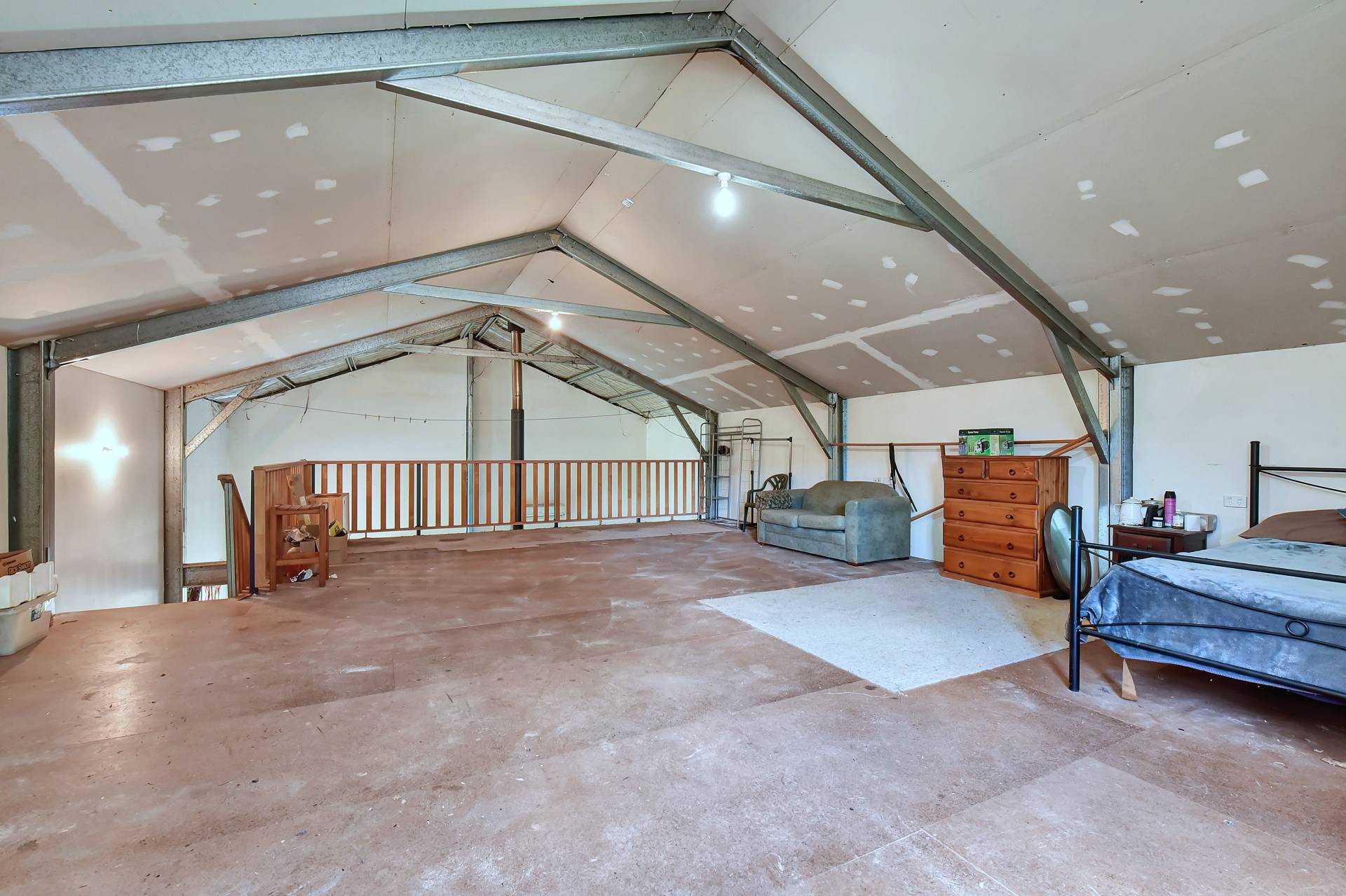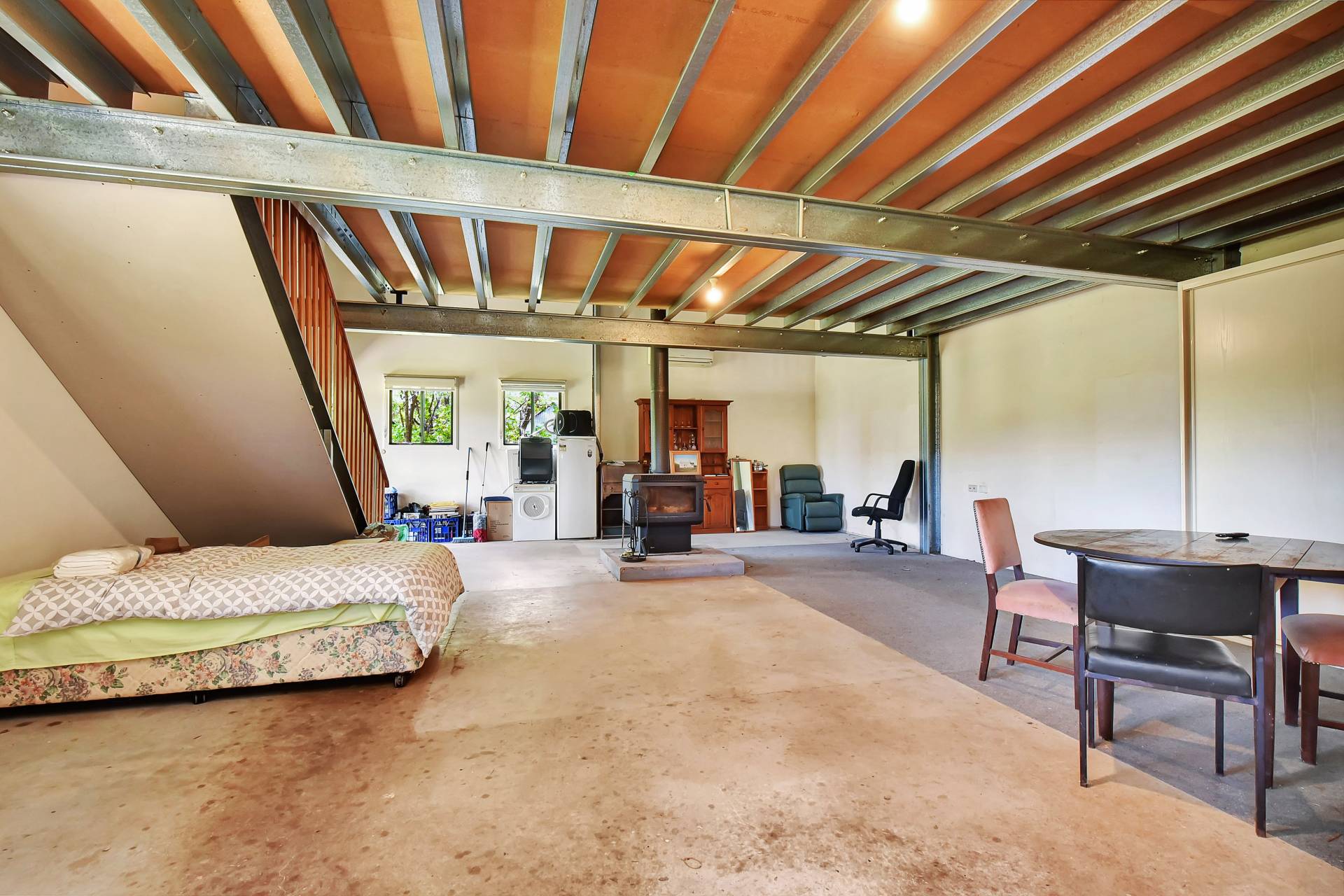 The large shed is DA approved with a bathroom, kitchenette, huge mezzanine/loft and a slow combustion fireplace downstairs as well as reverse cycle air-conditioning. 10 solar panels will also help keep the electricity bills down. A large undercover verandah has great views over the property and to the mountains in the North-West where you can enjoy many glorious sunsets.