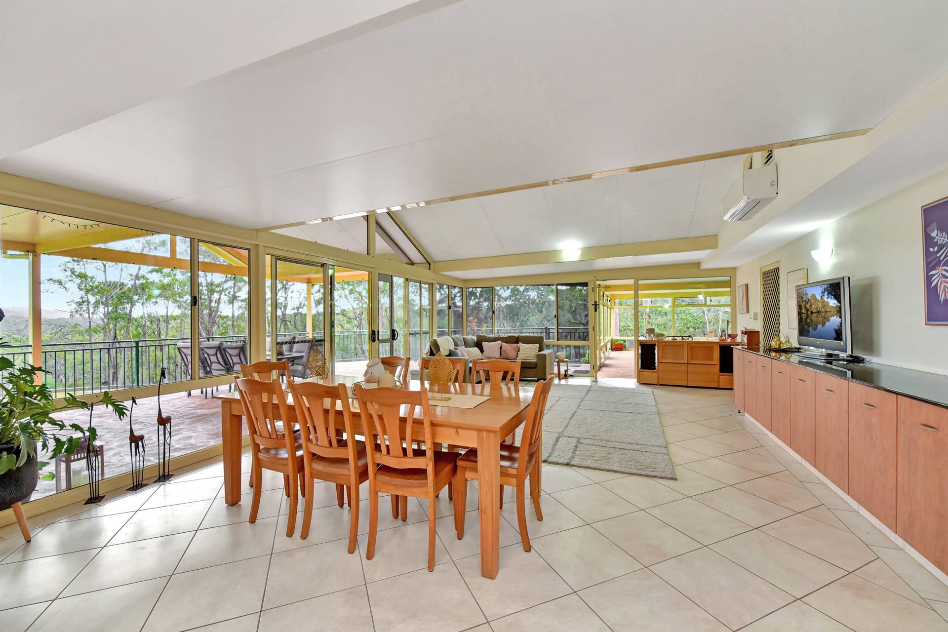 Well designed, the house is built in the ideal position set back from the road in its very own private sanctuary with no neighbours in sight. Boasting multiple living spaces and a fantastic undercover outdoor entertaining area with superb views to the North-East, the house is ideal for entertaining. Recently renovated, the gourmet kitchen features stone bench tops, loads of storage and quality appliances including a dishwasher, integrated wall oven and microwave. Conveniently, the kitchen has a servery window servicing a huge family room which also flows onto the outdoor entertaining and pool area. There is also a living/dining space adjoining the kitchen with a cosy slow combustion fireplace perfect for the Winter months, while ducted air-conditioning will keep you comfortable all year round.
