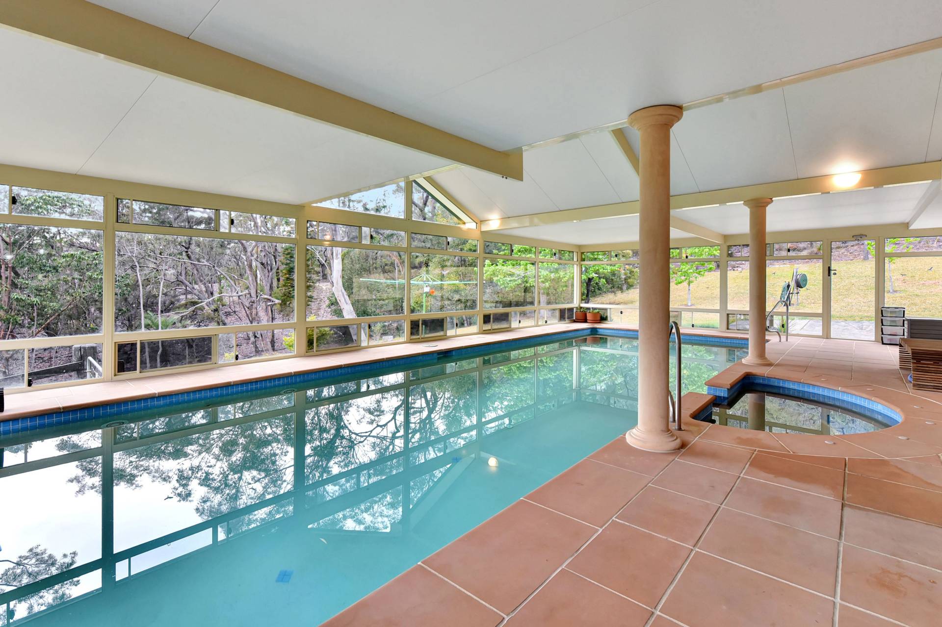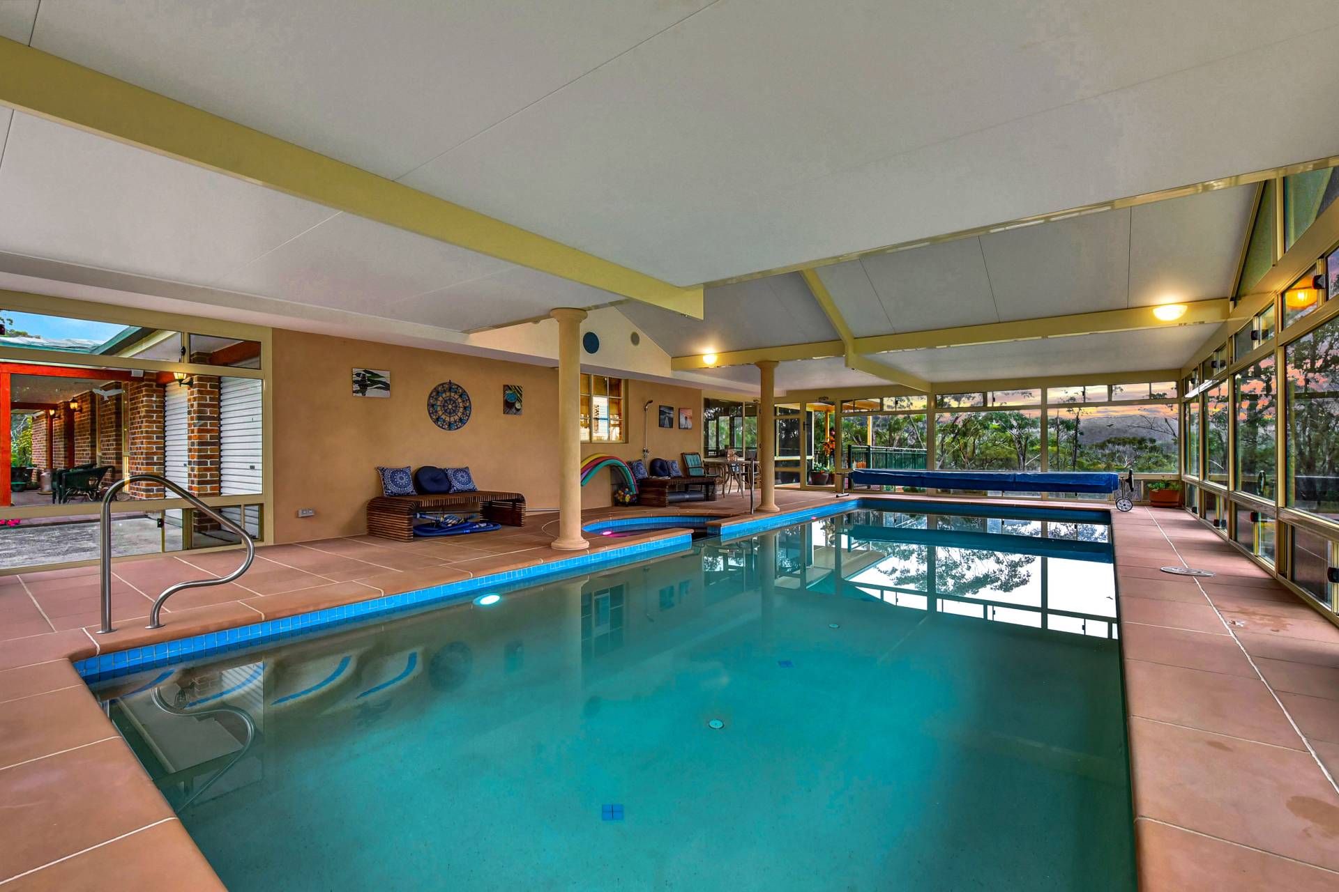 One of the many great features of the property is a large indoor solar heated swimming pool and spa that you can use all-year-round while enjoying the elevated views over the property and mountains in the distance.